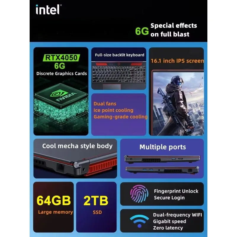 New 16.1 12900H gamer computer RTX4050 6g graphics card 12th generation 64gb 2TB business gaming laptop