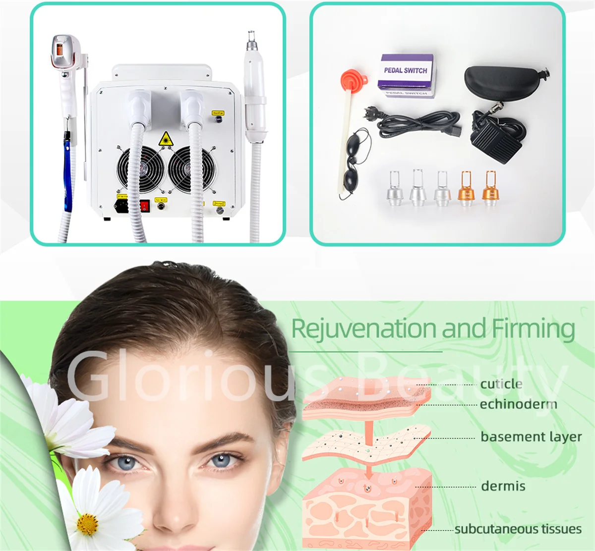 - Function:Â Skin Rejuvenation,Skin Tightening,Blemish Removal,Anti Wrinkle