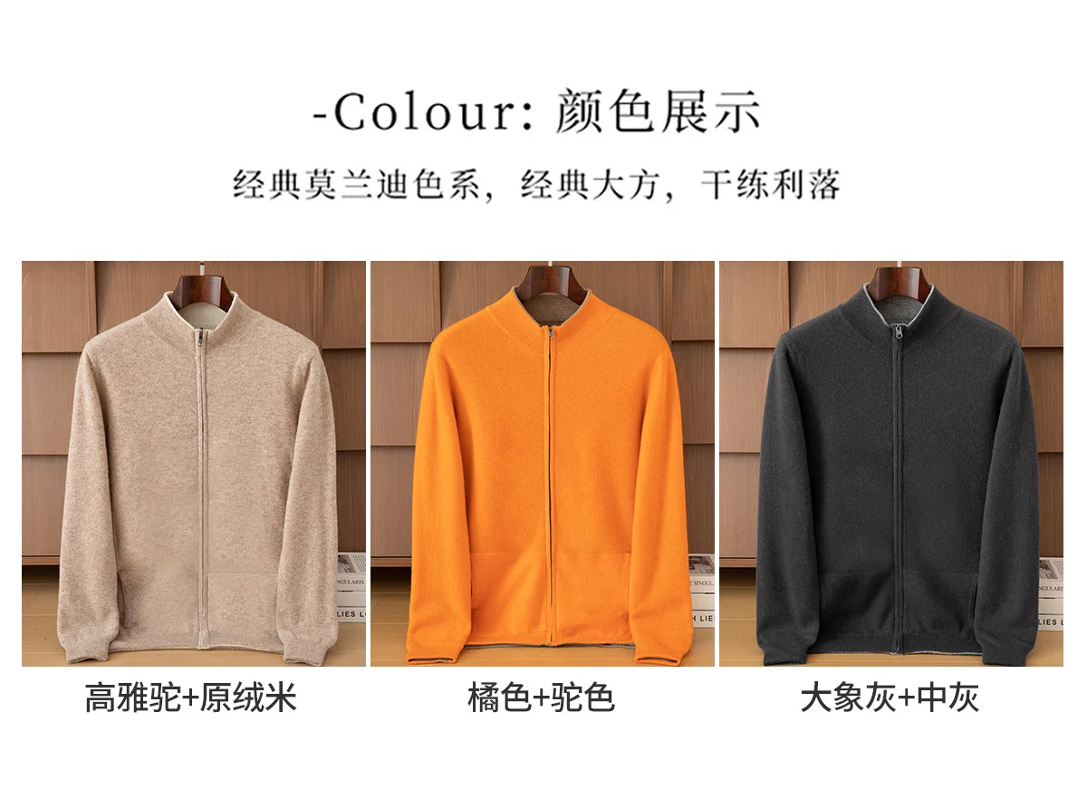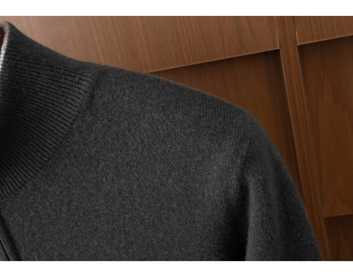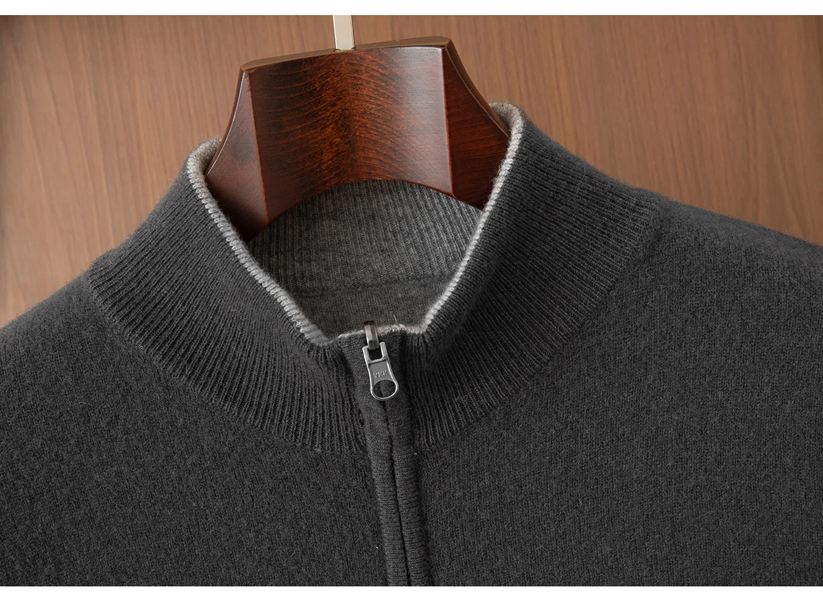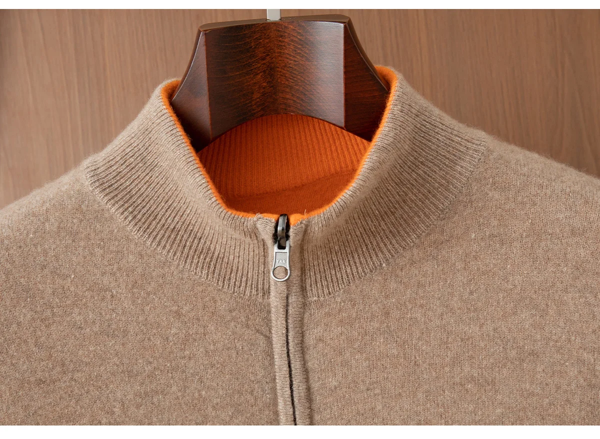 New Product Men’s Double Sided Half High Neck Zipper Cardigan Autumn Winter 100% Merino Wool Knit Sweater Casual Men’s Clothing