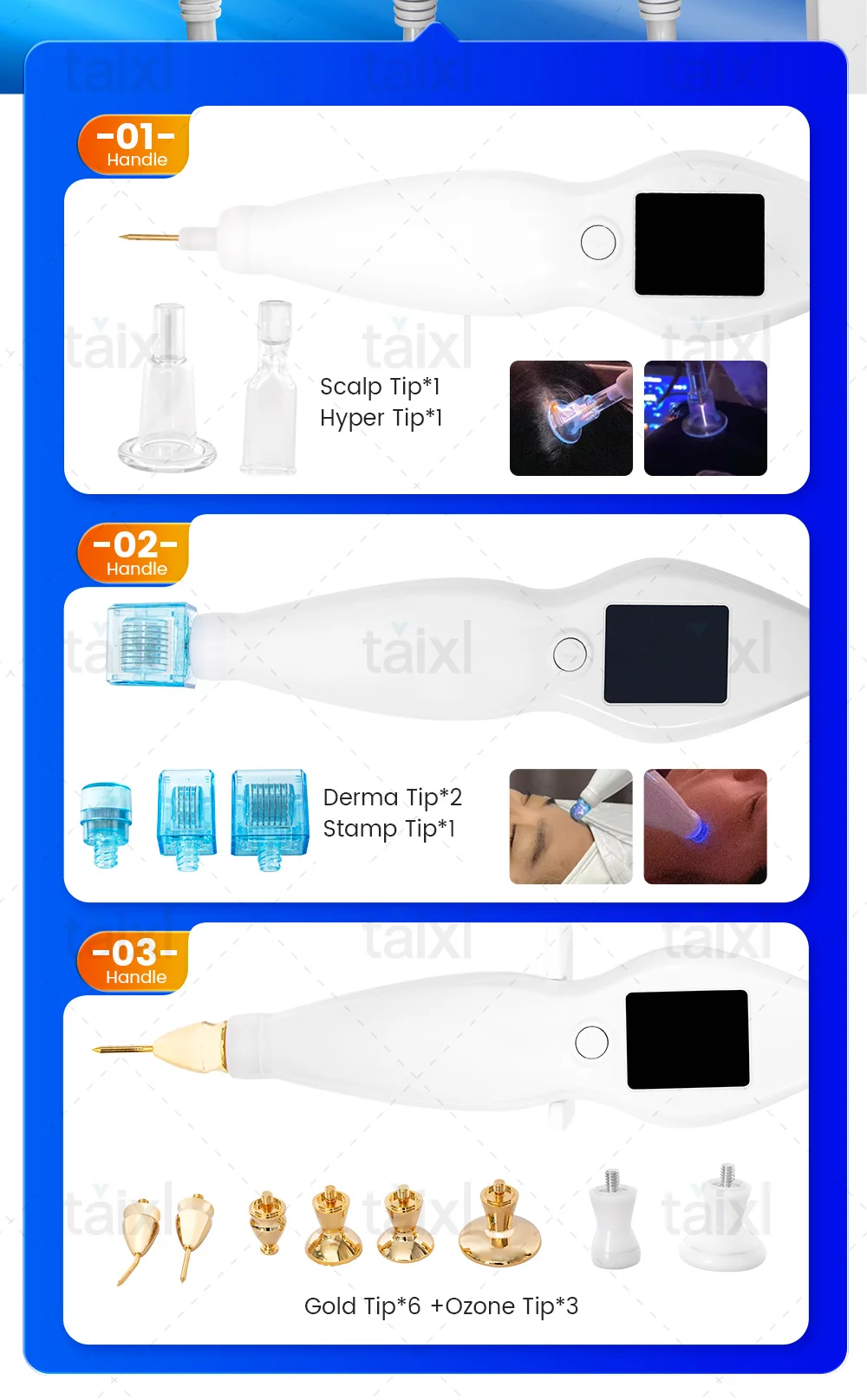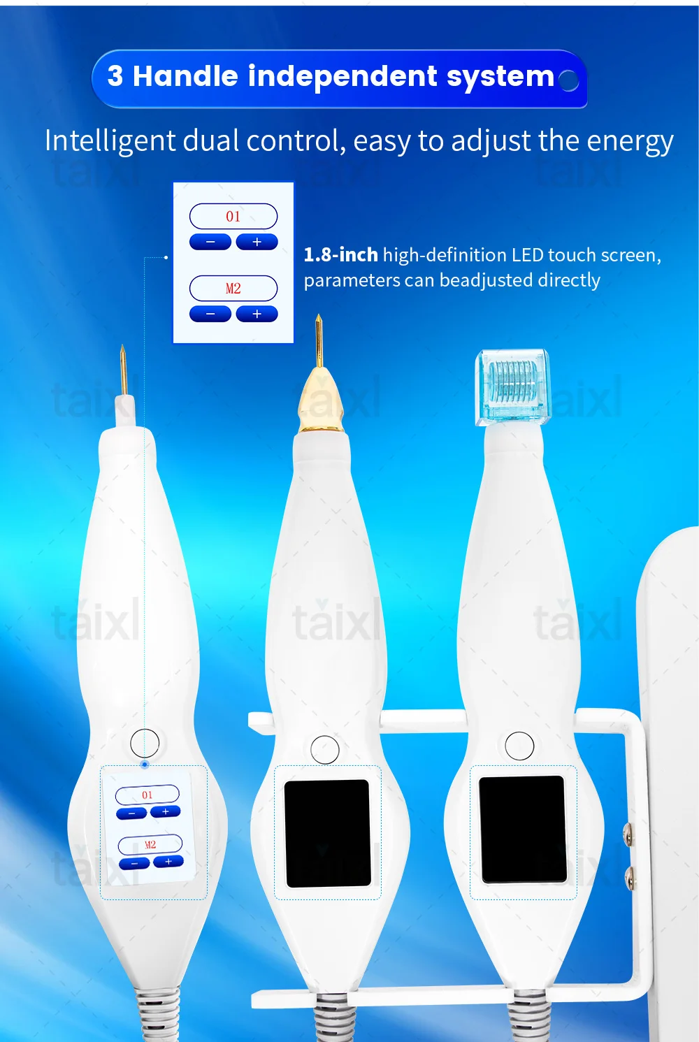 - Handle 2:Â 1.8-inch screen, comes with 1 hyper head and l scalp head