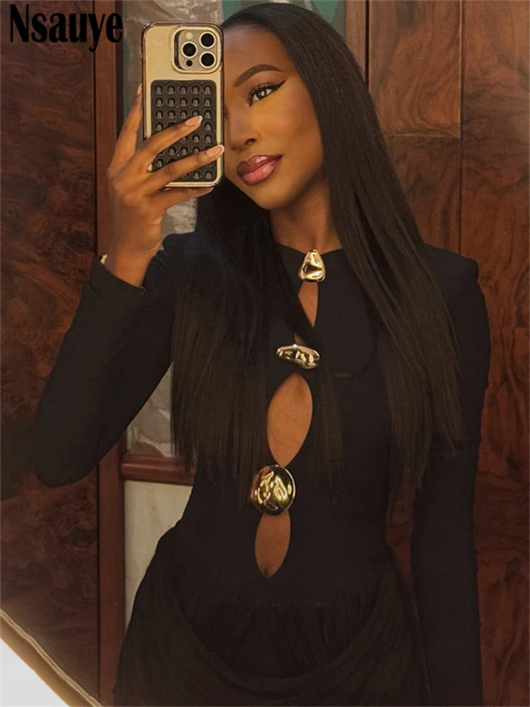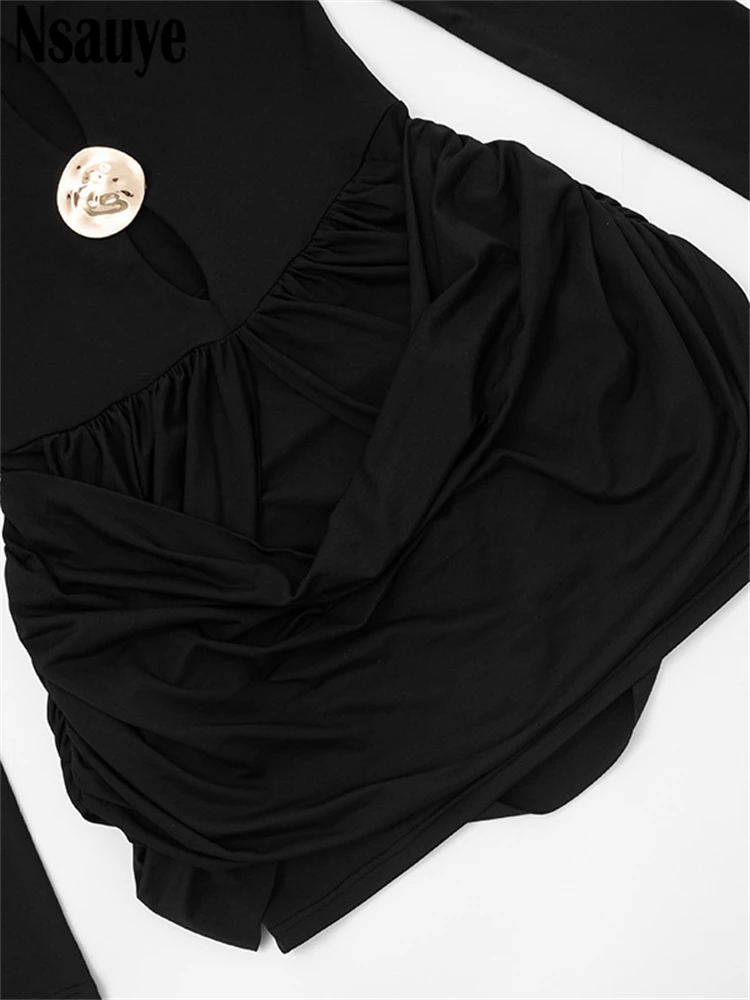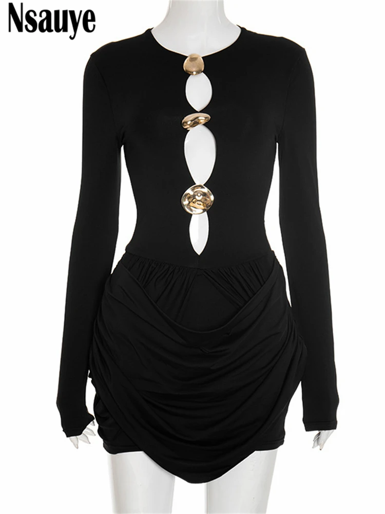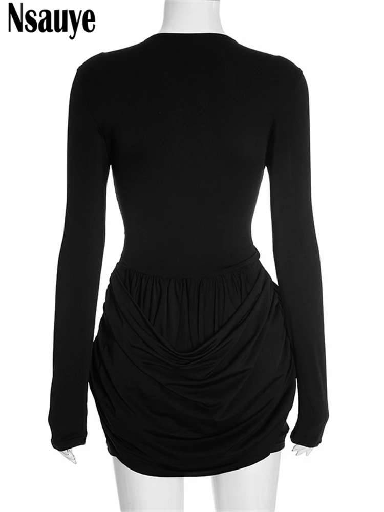 Nsauye Autumn Winter Women 2025 Sexy Night Club Mini Wrap Hollow Out Party Dress Fashion Elegant Evening Short Dress Long Sleeve