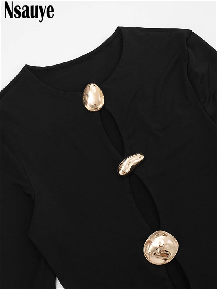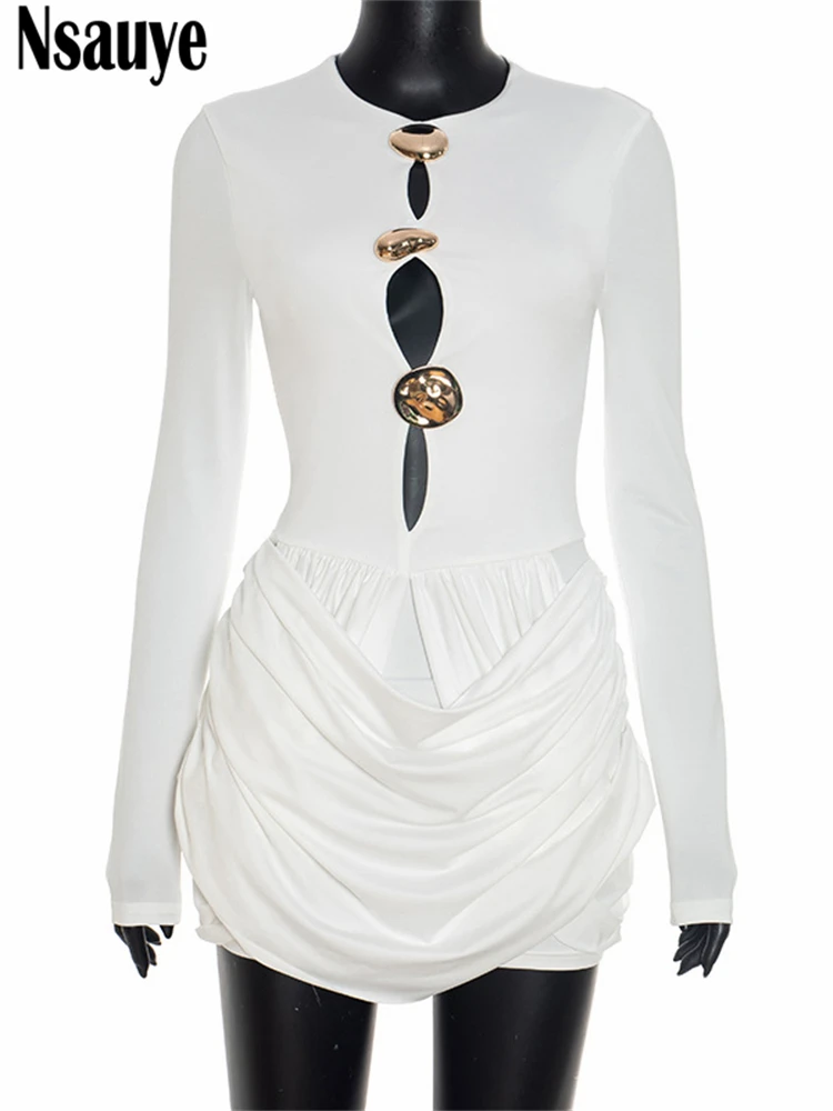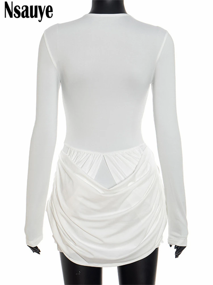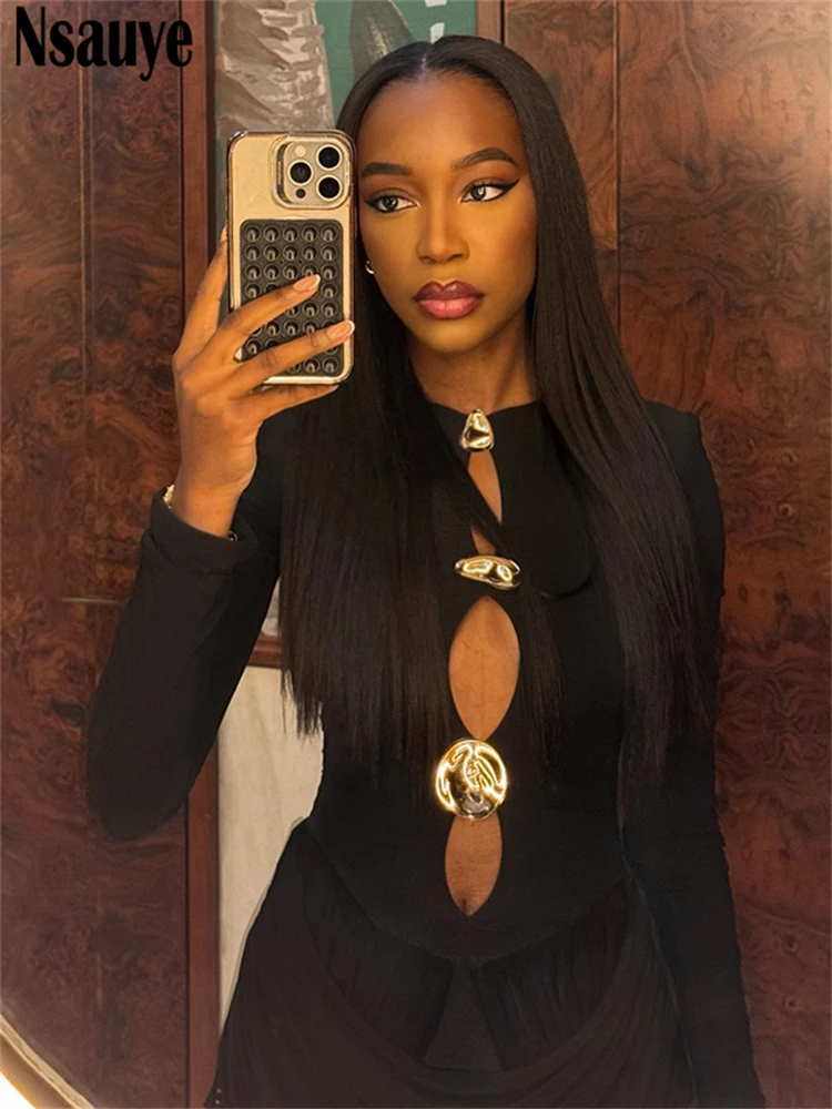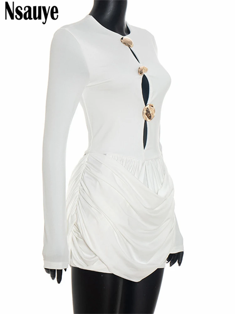 Nsauye Autumn Winter Women 2025 Sexy Night Club Mini Wrap Hollow Out Party Dress Fashion Elegant Evening Short Dress Long Sleeve