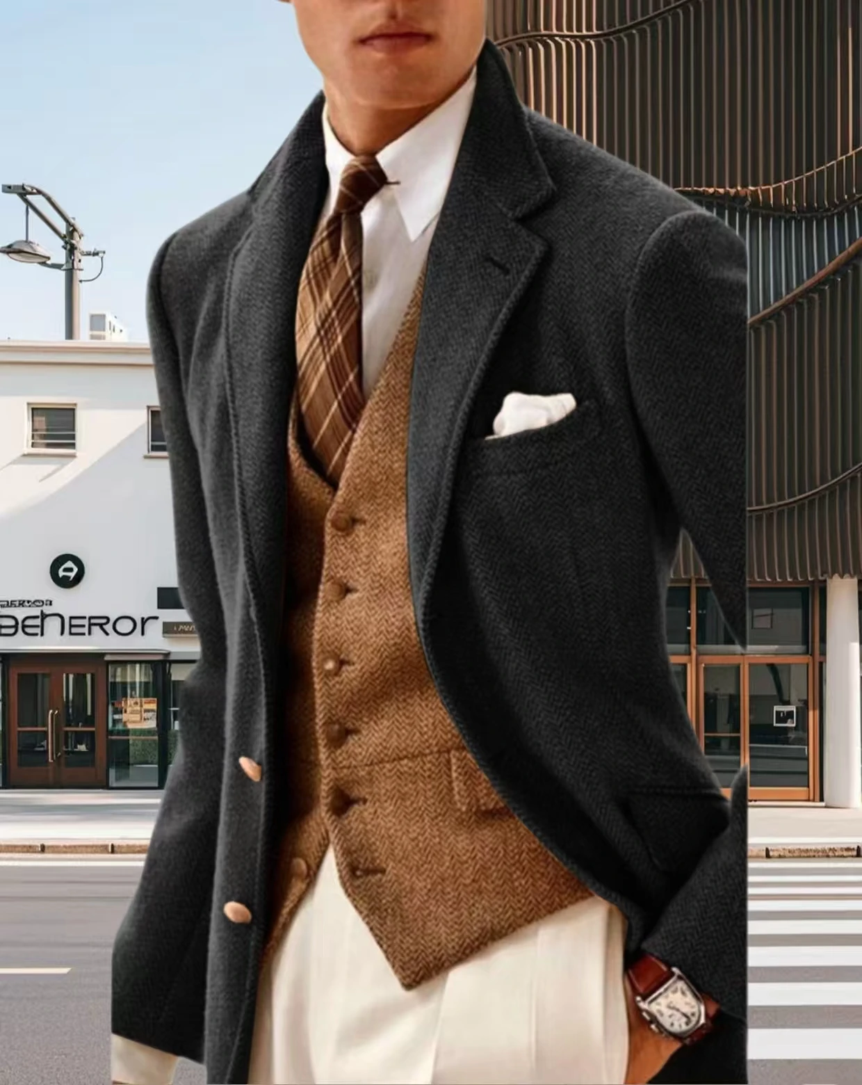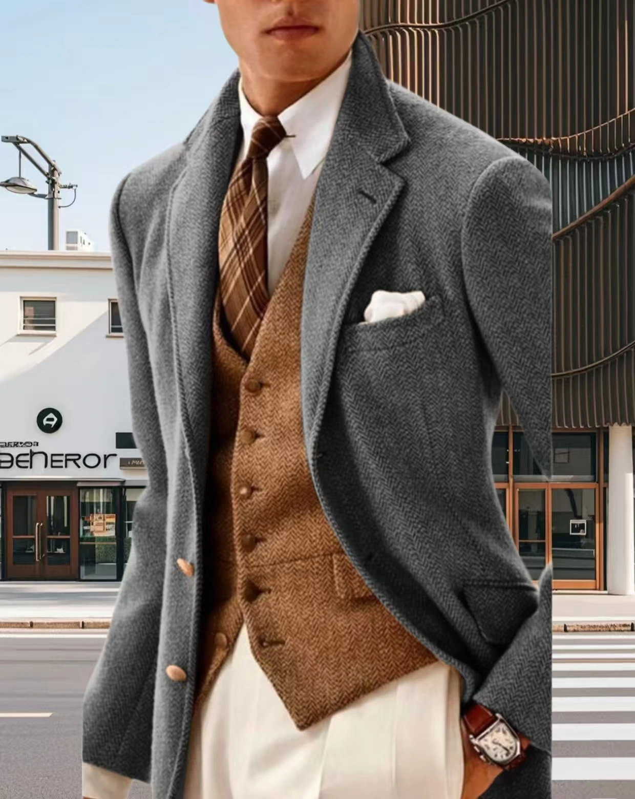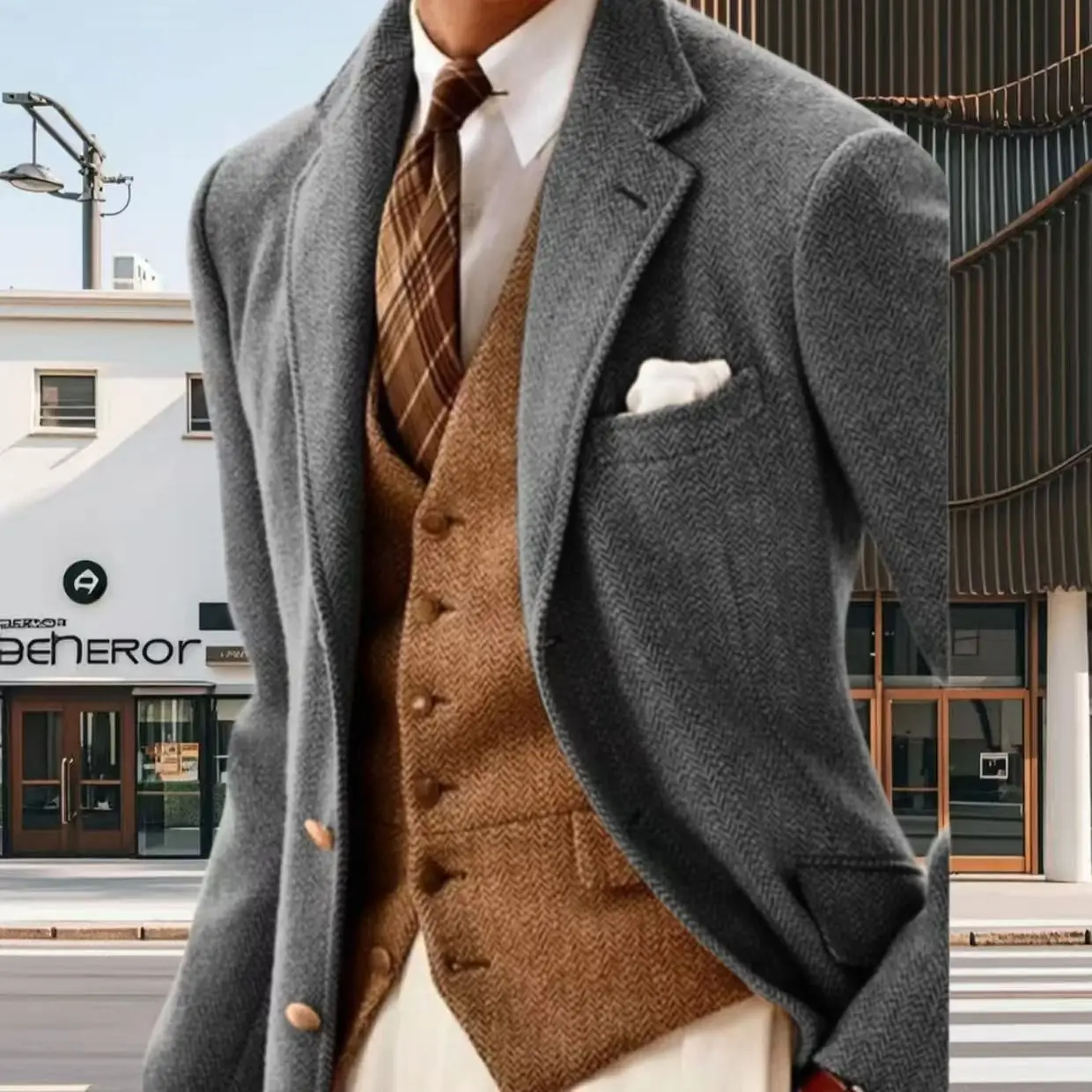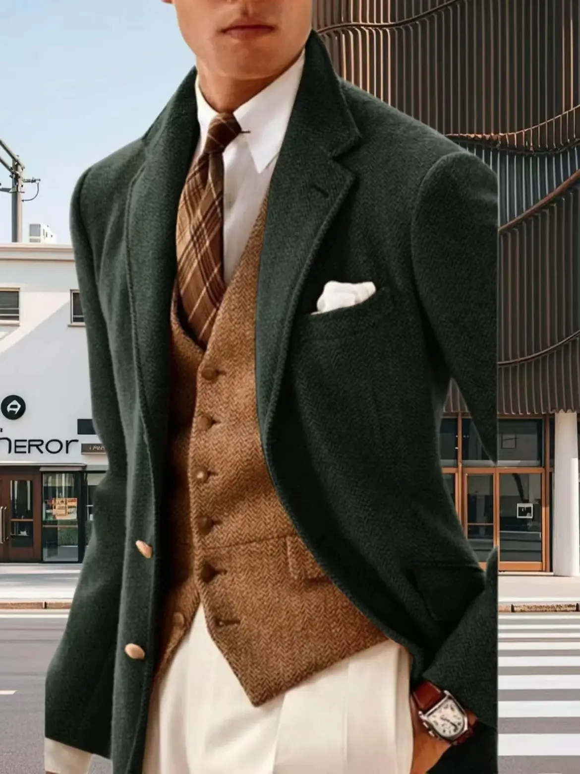 Only Jacket 1 PCS Long Coat Men Formal Coat Mens Herringbone Suit Jacket Party Business Attire Formal Wear