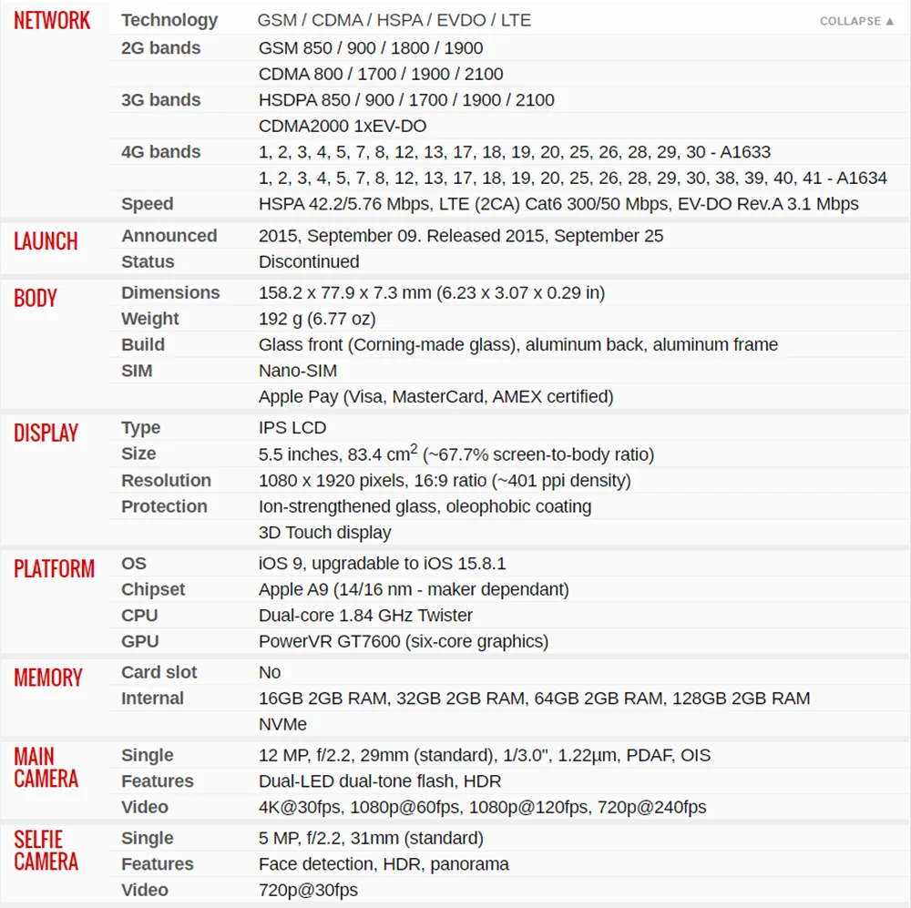 - Apple Model:Â iPhone 6s Plus