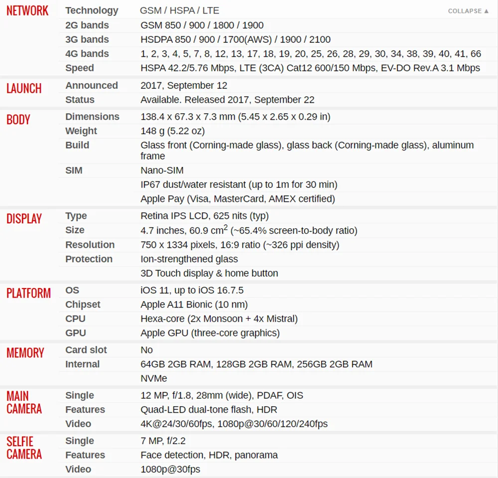 - Apple Model:Â iPhone 8