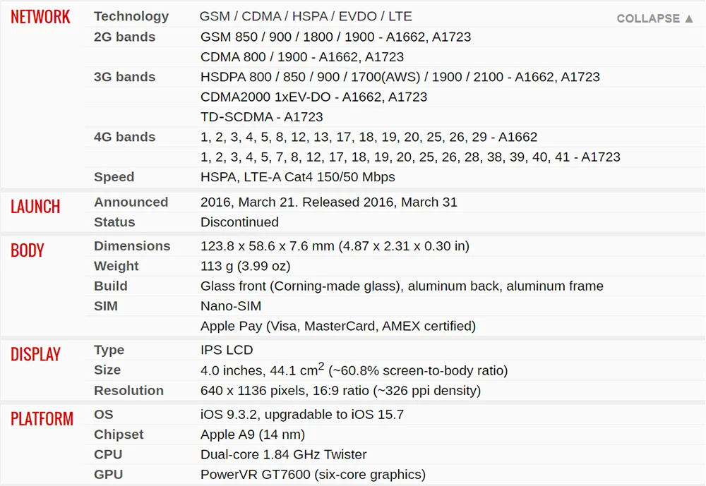 - Apple Model:Â iPhone SE