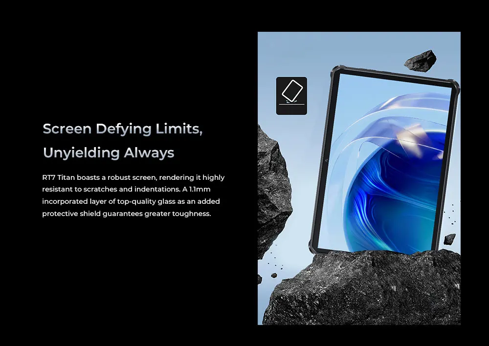 RT7 Titan boasts a robust screen, rendering it highly resistant to scratches and indentations. A 1.1mm incorporated layer of top-quality glass as an added protective shield guarantees greater toughness.Work Seamlessly in Various Scenarios