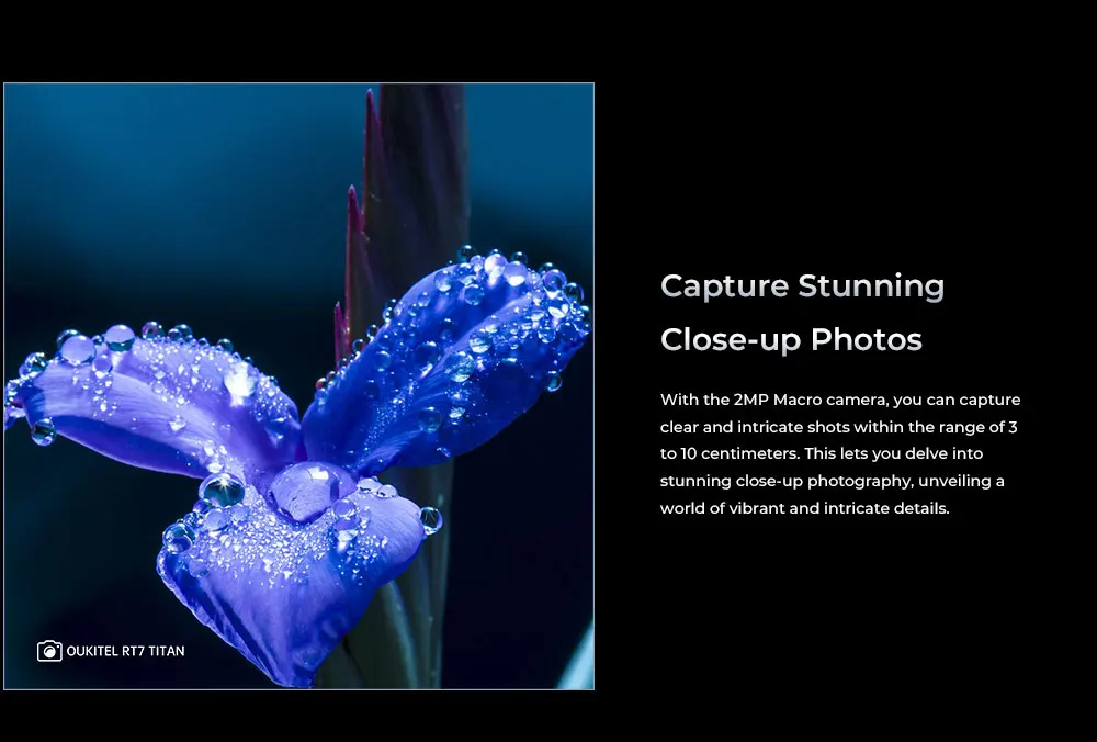With the 2MP Macro camera, you can capture clear and intricate shots within the range of 3 to 10 centimeters. This lets you delve into stunning close-up photography, unveiling a world of vibrant and intricate details.Snap your selfie with friends