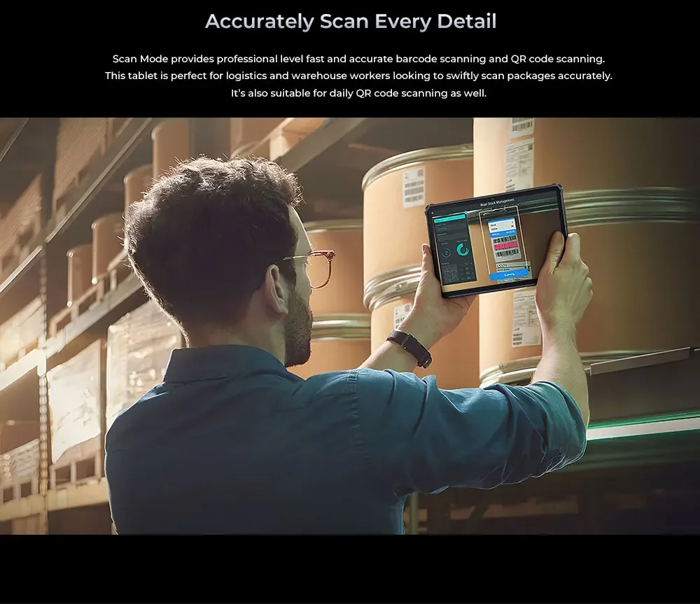 Scan Mode provides professional level fast and accurate barcode scanning and QR code scanning. This tablet is perfect for logistics and warehouse workers looking to swiftly scan packages accurately. It’s also suitable for daily QR code scanning as well.