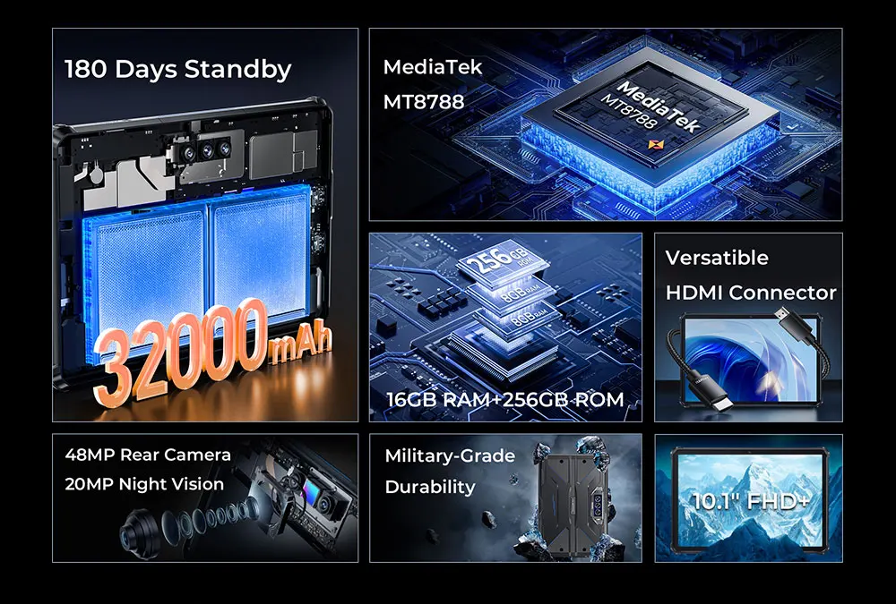 Oukitel RT7 TITAN 4G Rugged Tablet 10.1″ FHD+ 32000mAh 8GB+256GB Android 13 IP68/IP69K 48MP+20MP Night Vision Tablet Tablets PC