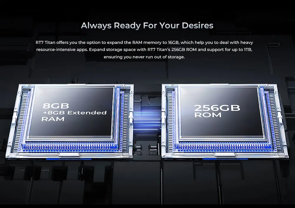 RT7 Titan offers you the option to expand the RAM memory to 16 GB, which help you to deal with heavy resource-intensive apps. Expand storage space with RT7 Titan’s 256GB ROM and support for up to 1TB, ensuring you never run out of storage.Read in Outdoor With Ease