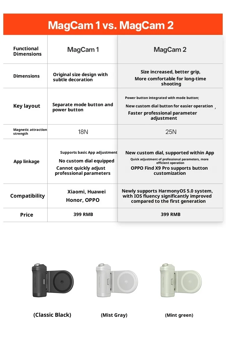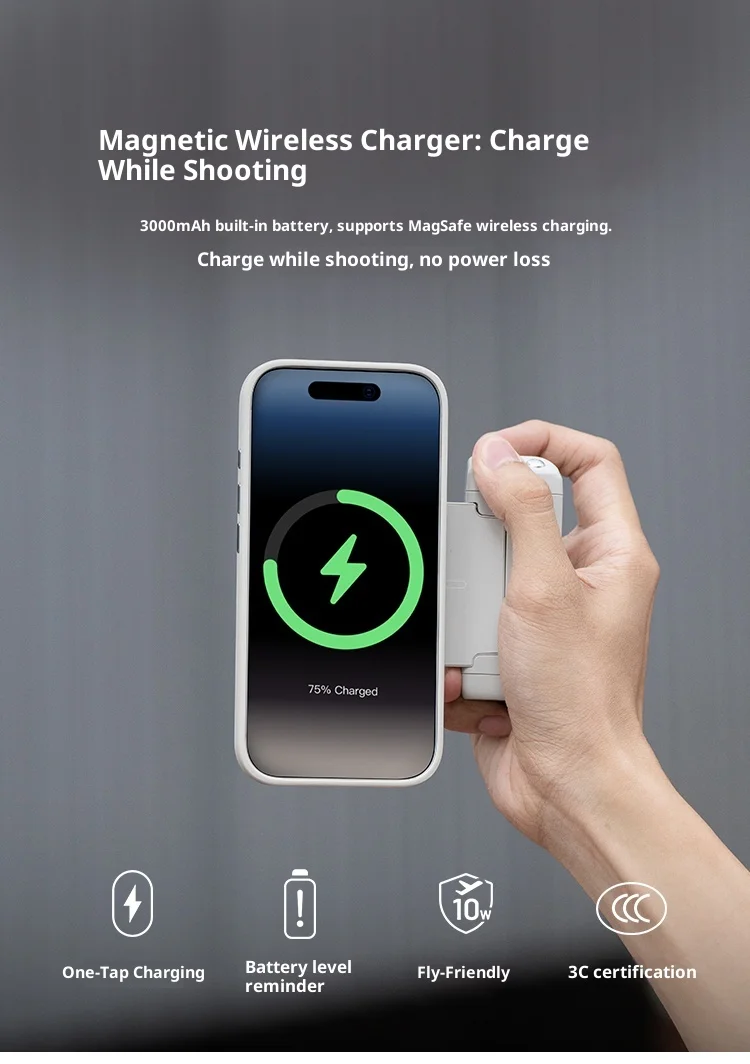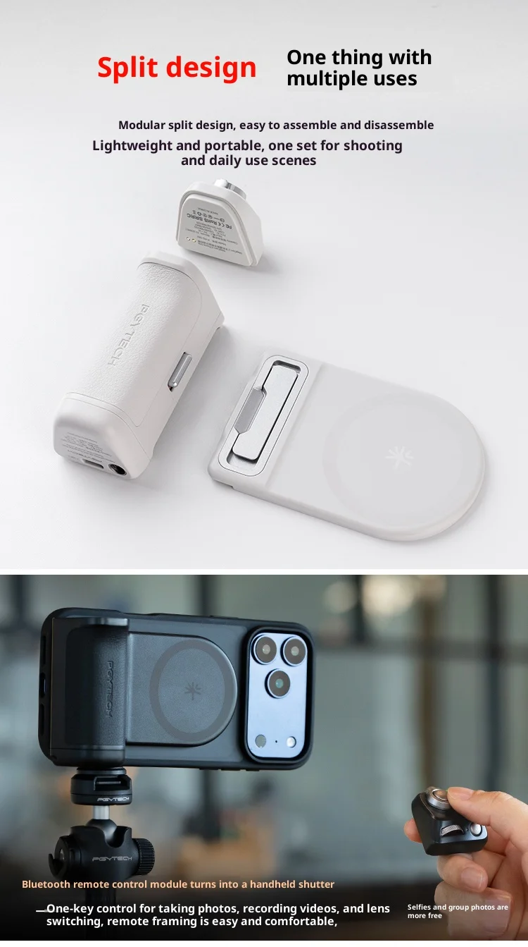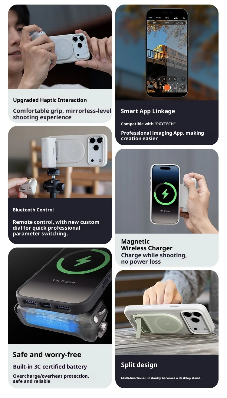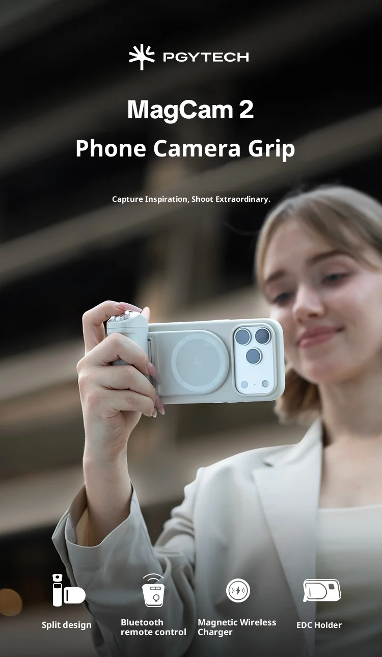 PGYTECH MagCam2 Mobile Photography Grip with Dandelion Magnetic LED Fill Light Bluetooth Remote Wireless Charging Vlog