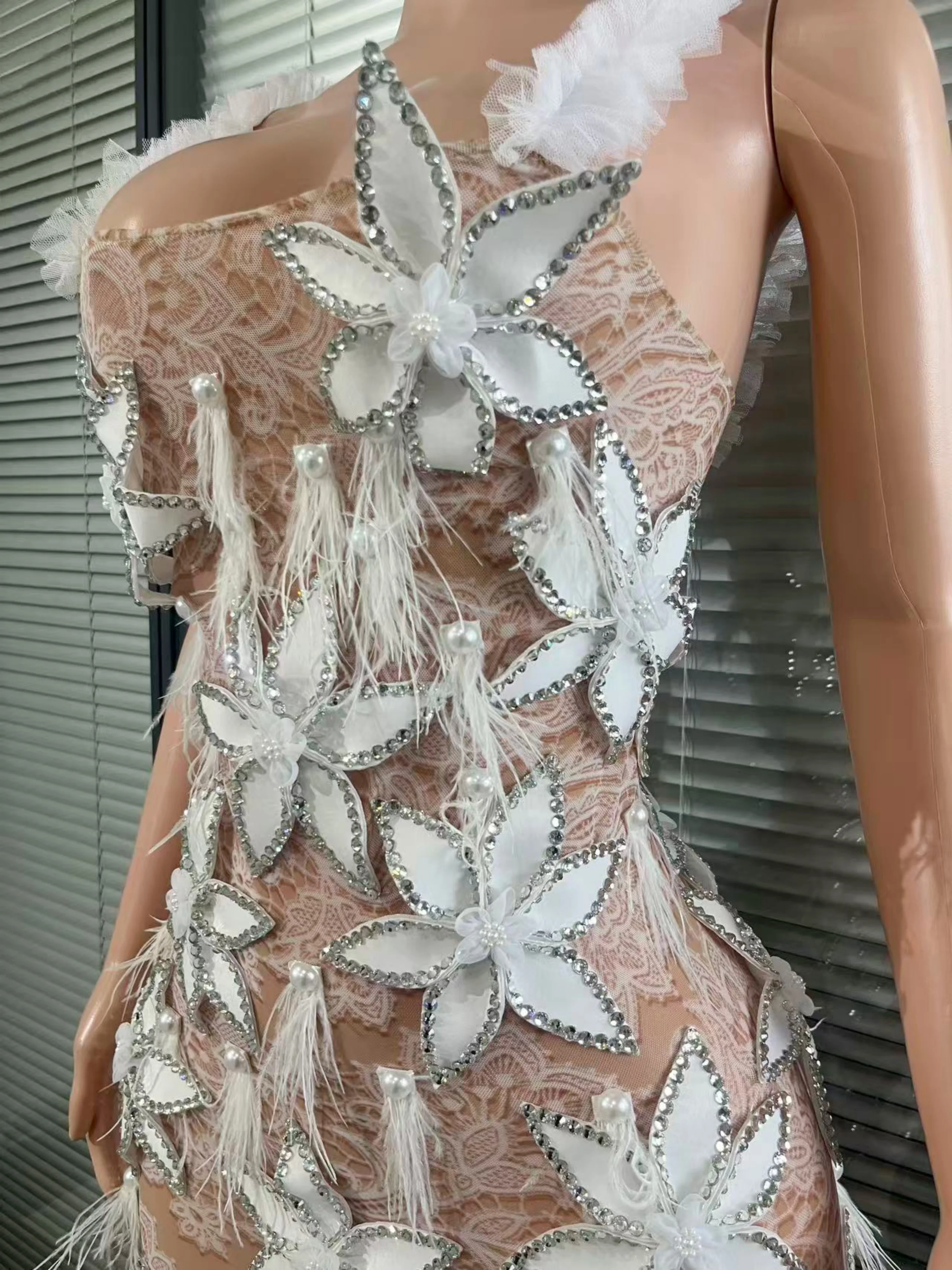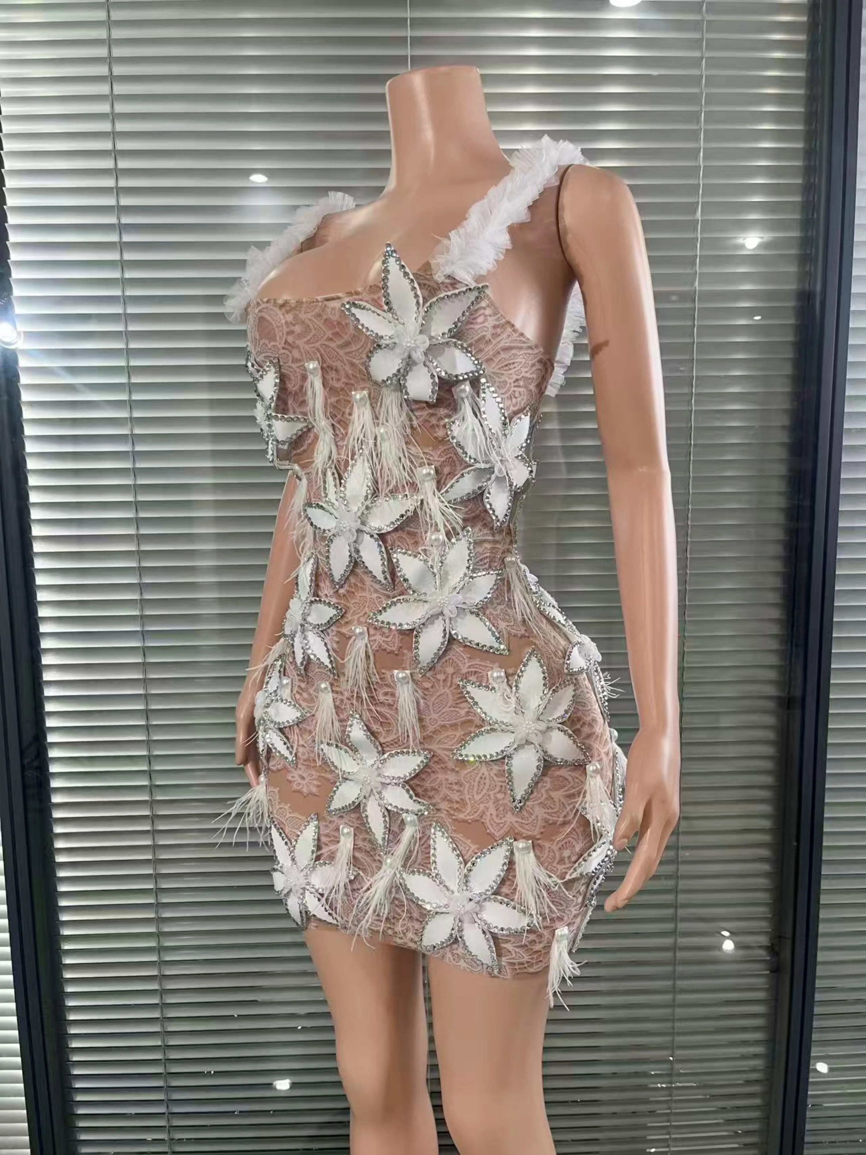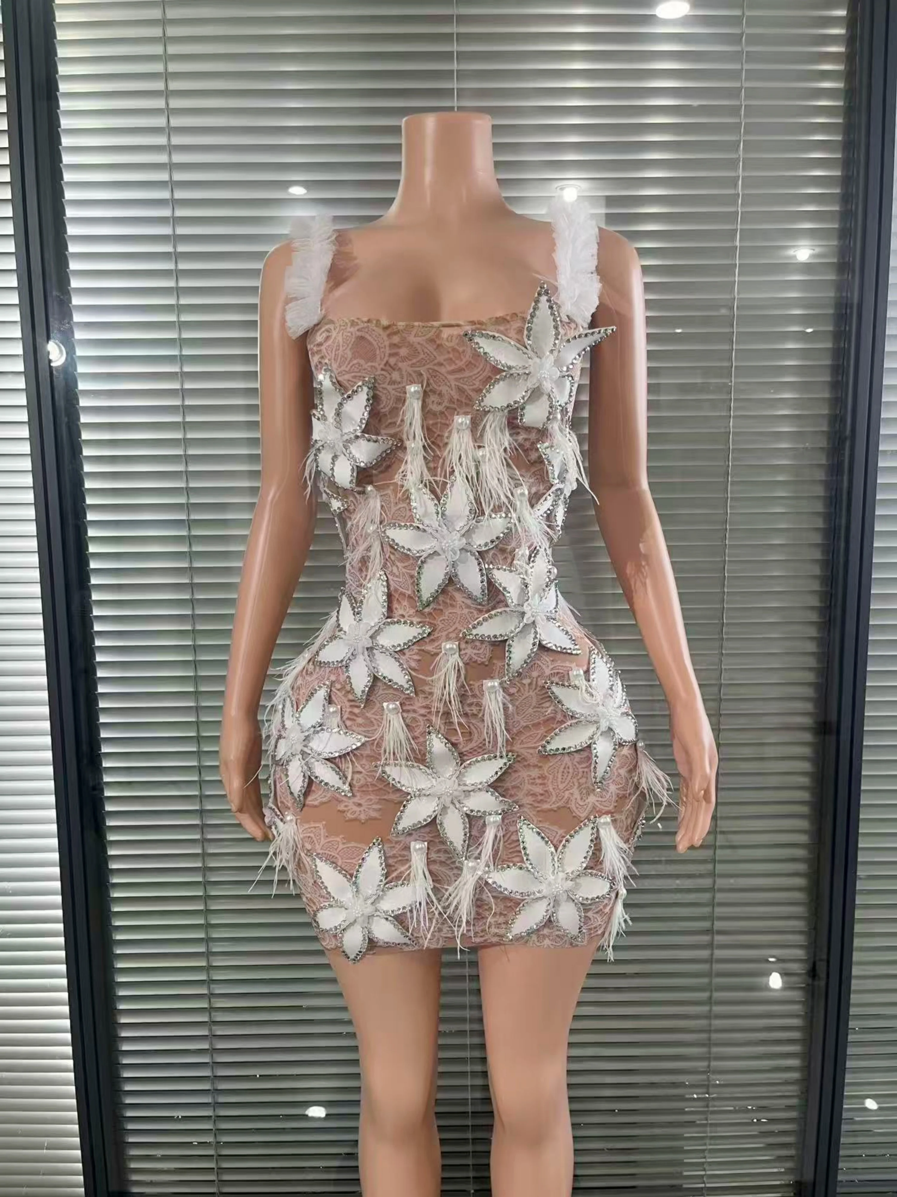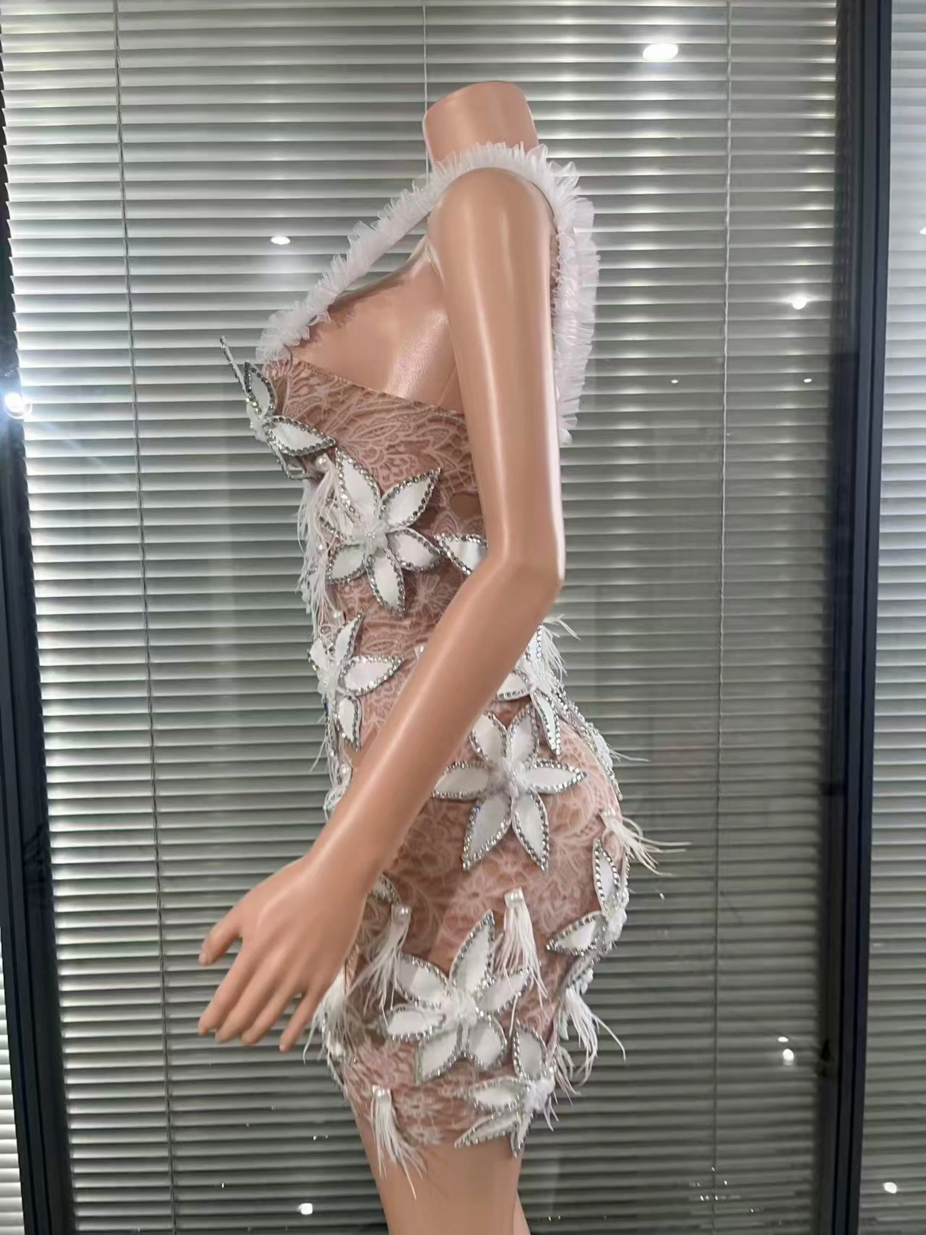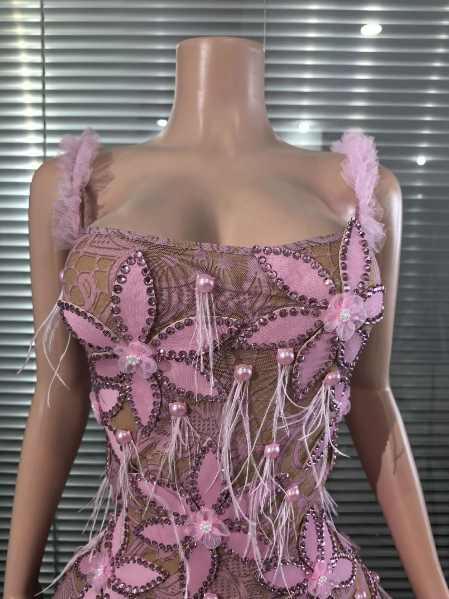 Be the first to review “Pink Flower Birthday Concert Performance Clothing Off the Shoulder Cut Out Mesh Sequin Dresses Women Party Night Club outfit” Cancel reply