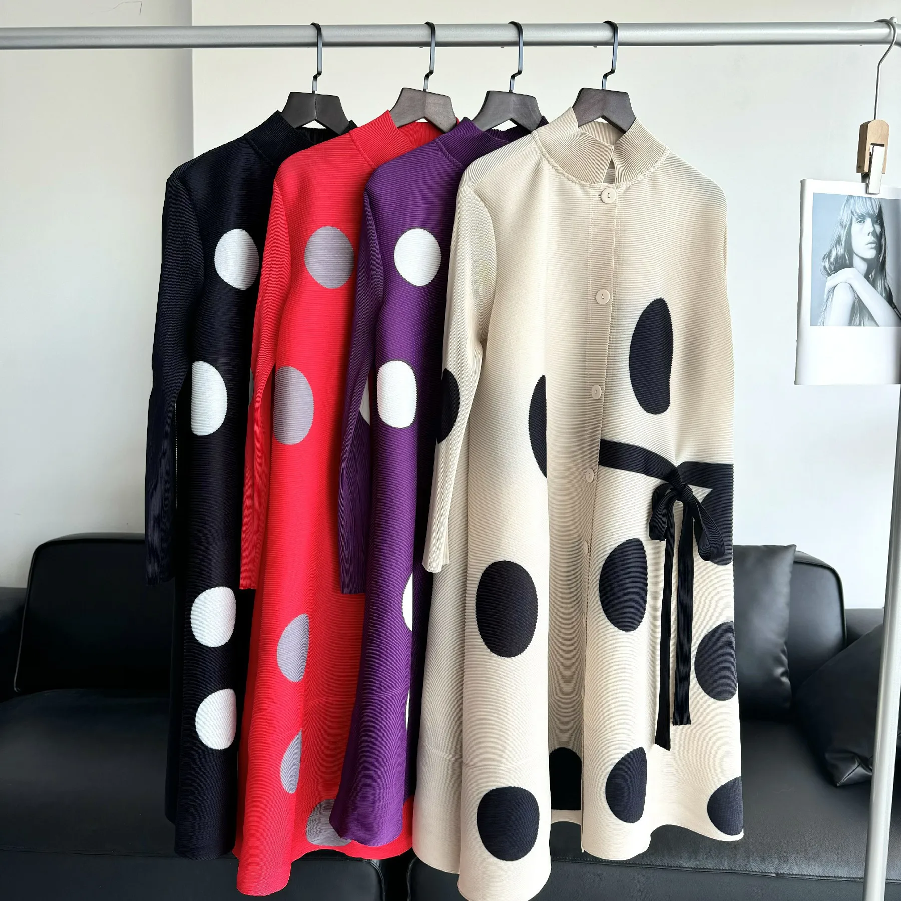 Be the first to review “Pleated Polka Dot Jacket Long Sleeve Lapel Design Women’s Dresses Loose Plus Size Tie Single Breasted Dresses 2024 Summer New” Cancel reply