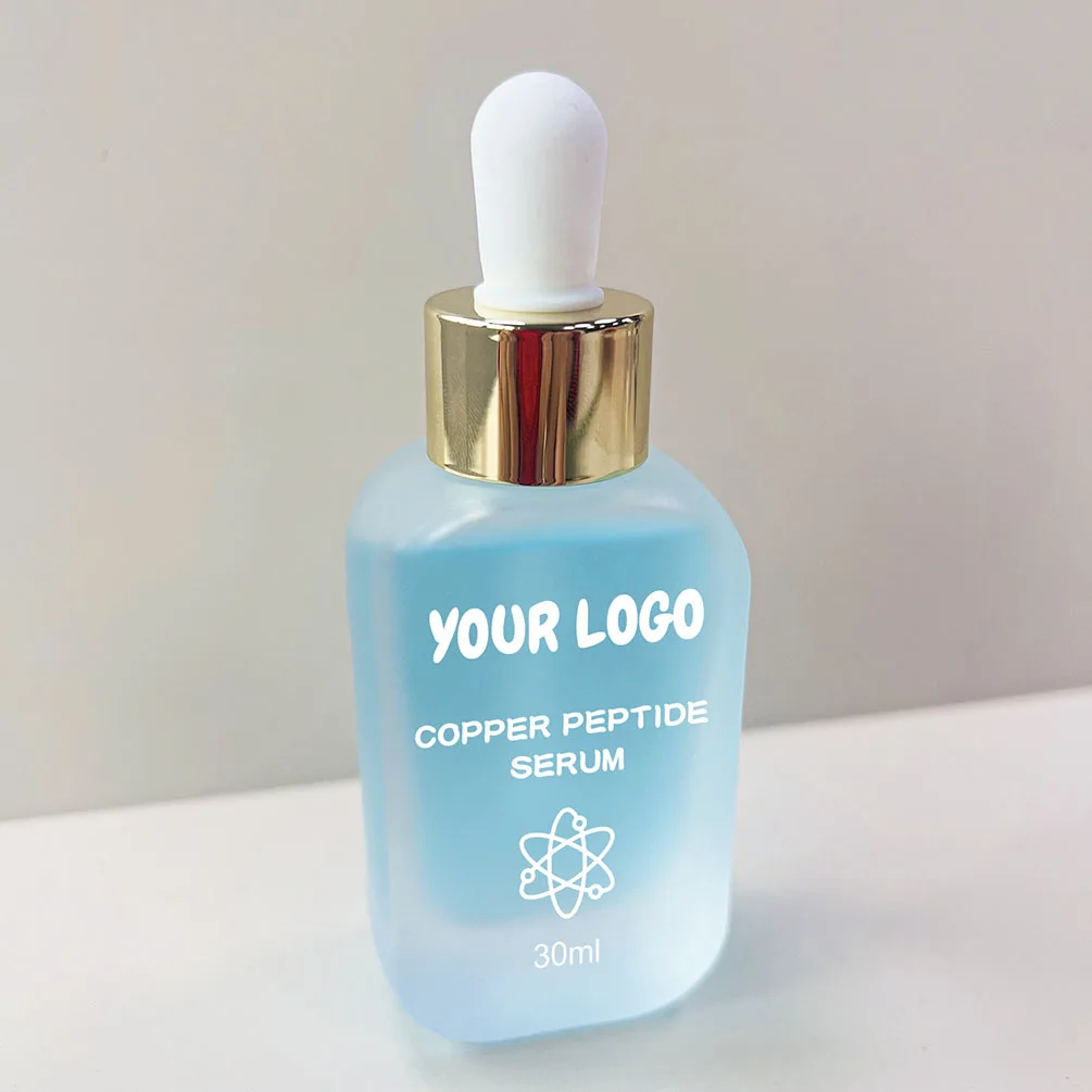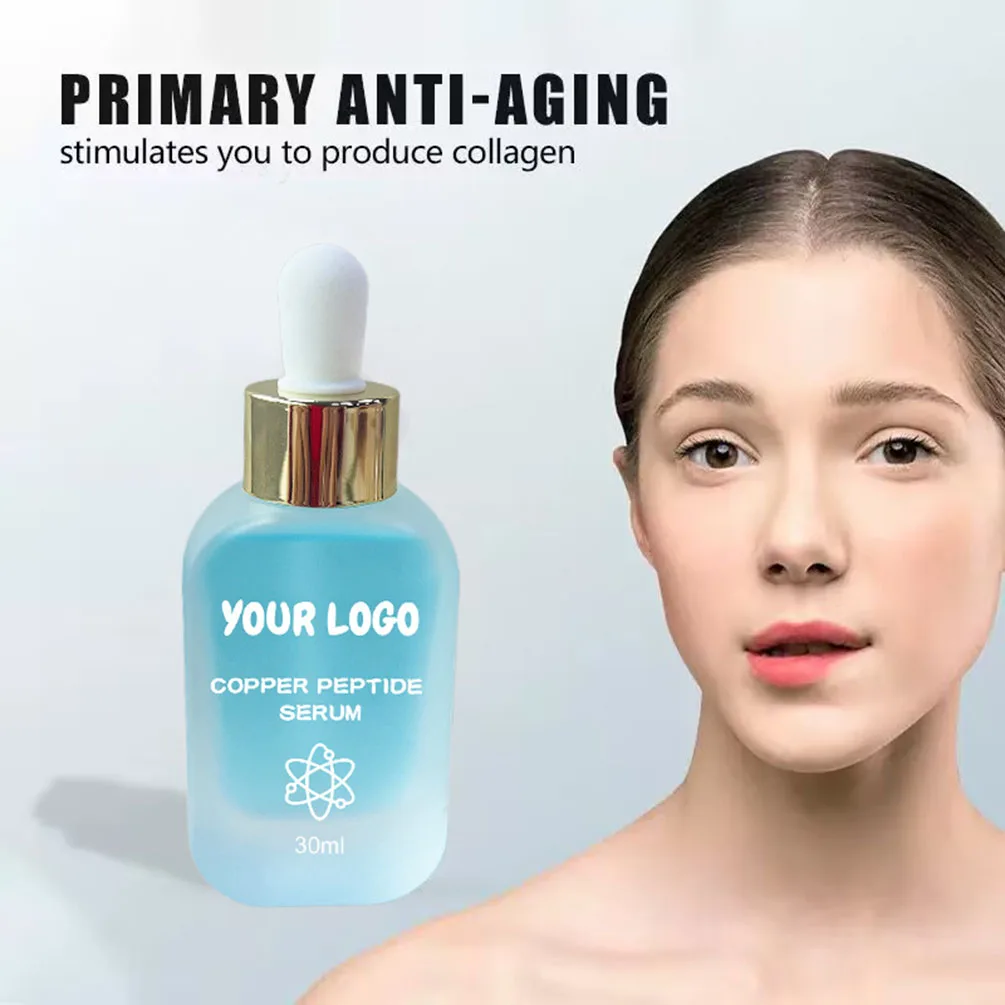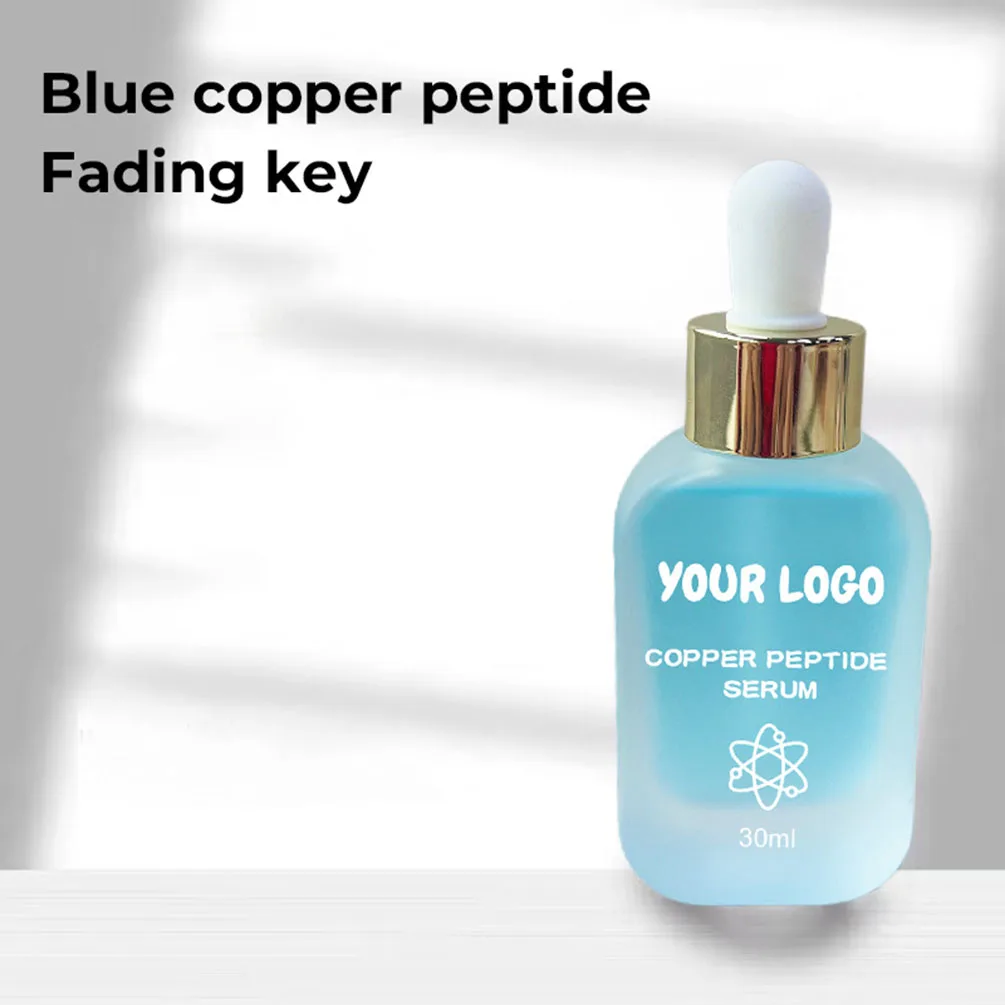 Private Label Blue Copper Peptide Liquid Custom Logo Stock Solution Moisture Repairing Firming Pores Oligopeptide Essence Makeup