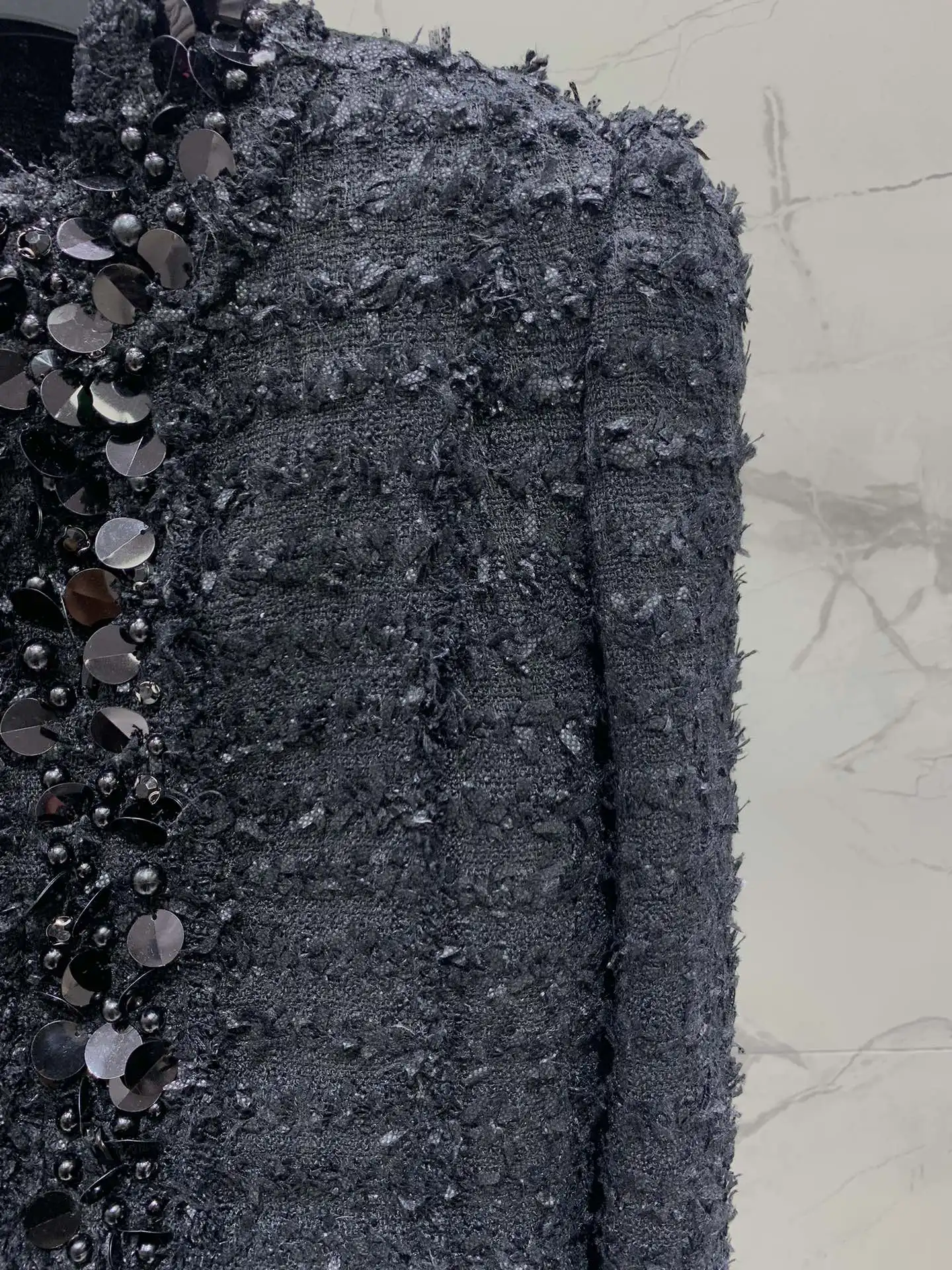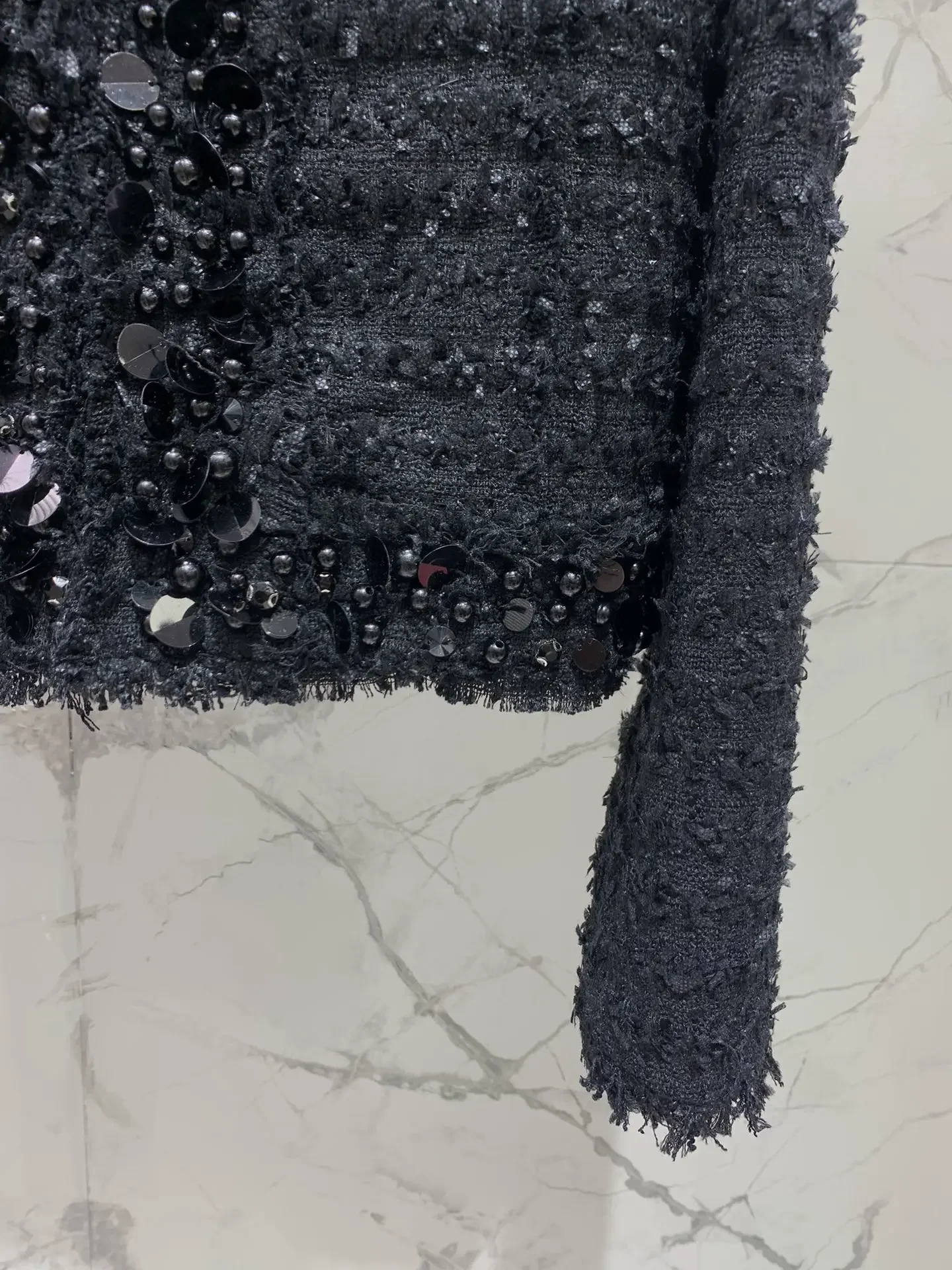 Retro round neck long sleeved nail bead slim fit women’s short jacket elegant party classic vacation autumn new women’s jacket
