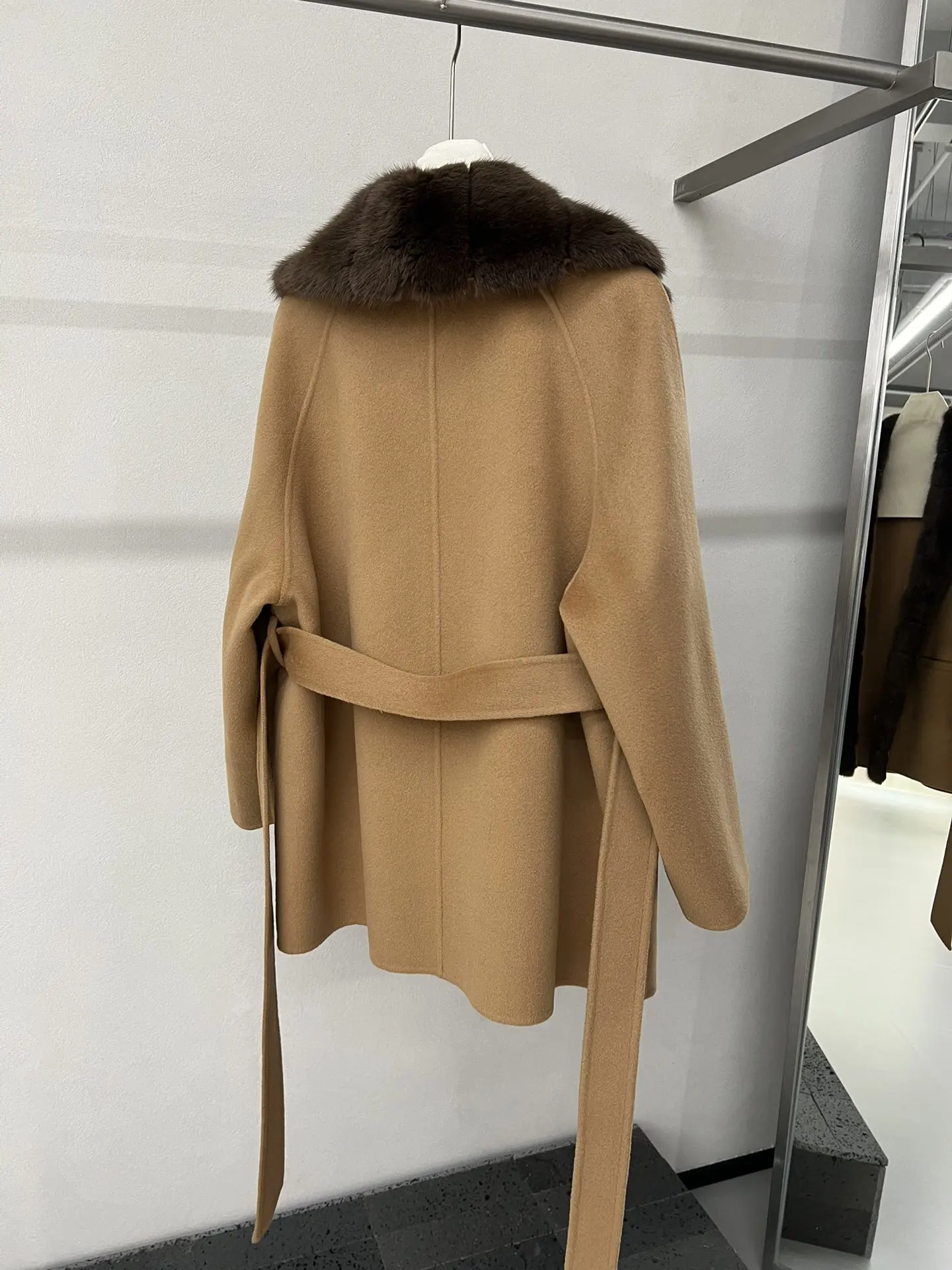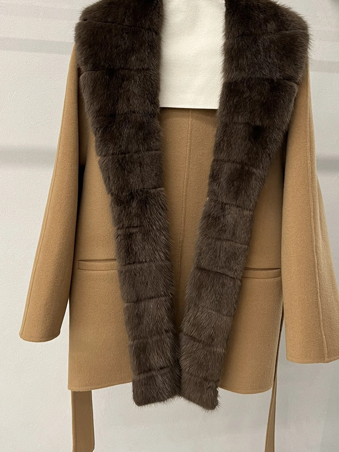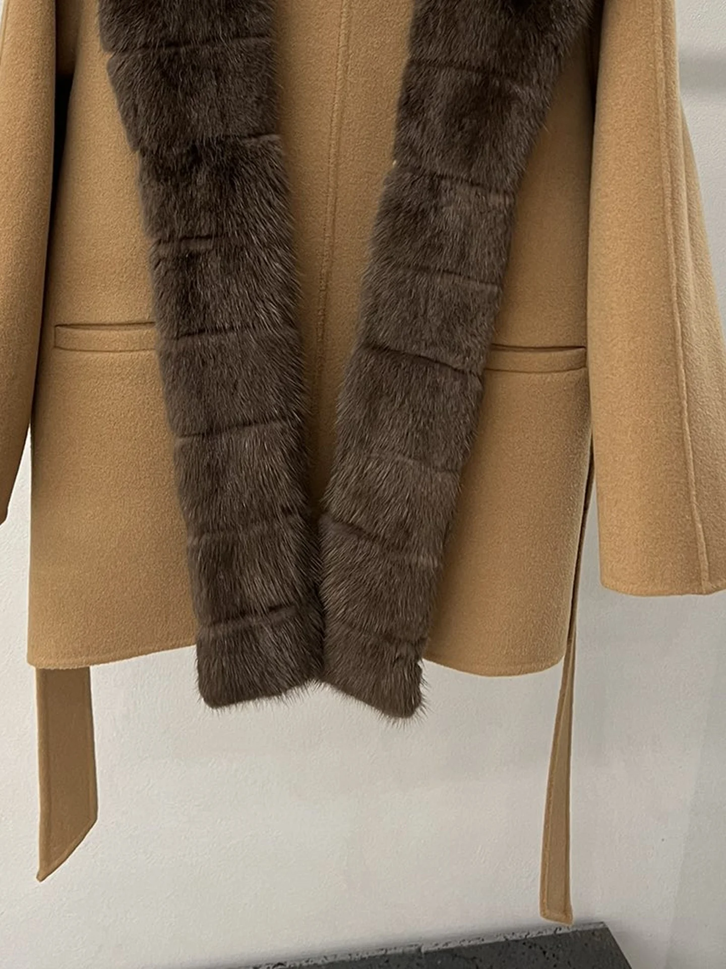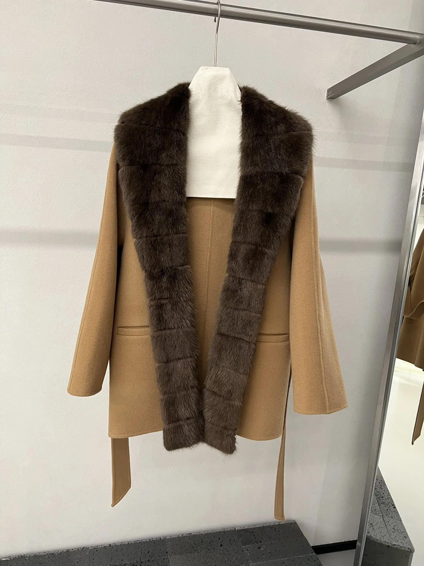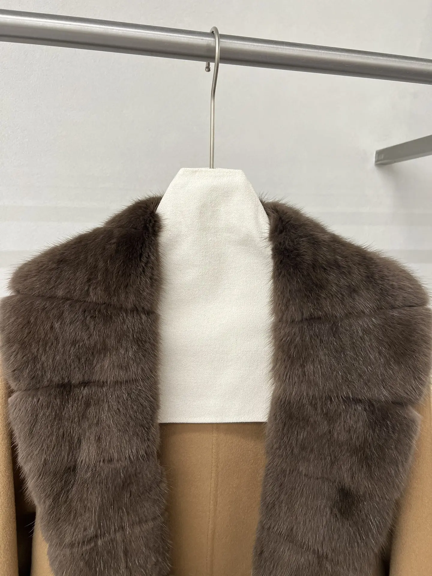Retro Style Women’S Stand-Up Collar High Quality Autumn And Winter New Mink Fur Collar Cashmere Coat