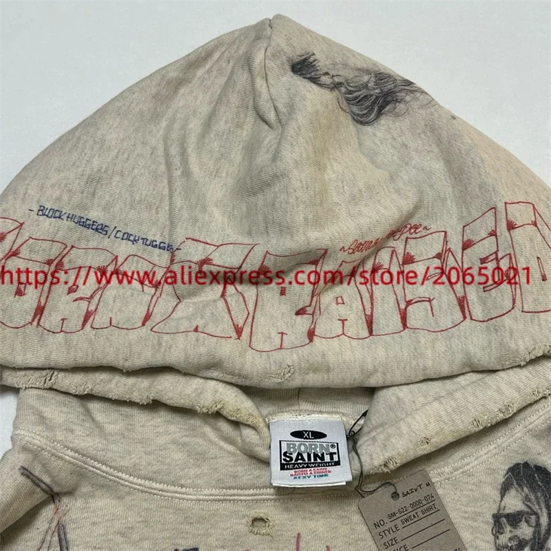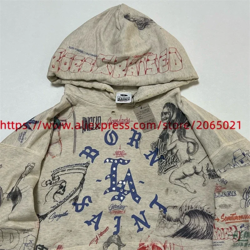 SAINT Rhinestone BORN RAISED Hoodie Men Women 1:1 High Quality Vintage Full Print Graffiti Print Pullovers – AliExpress