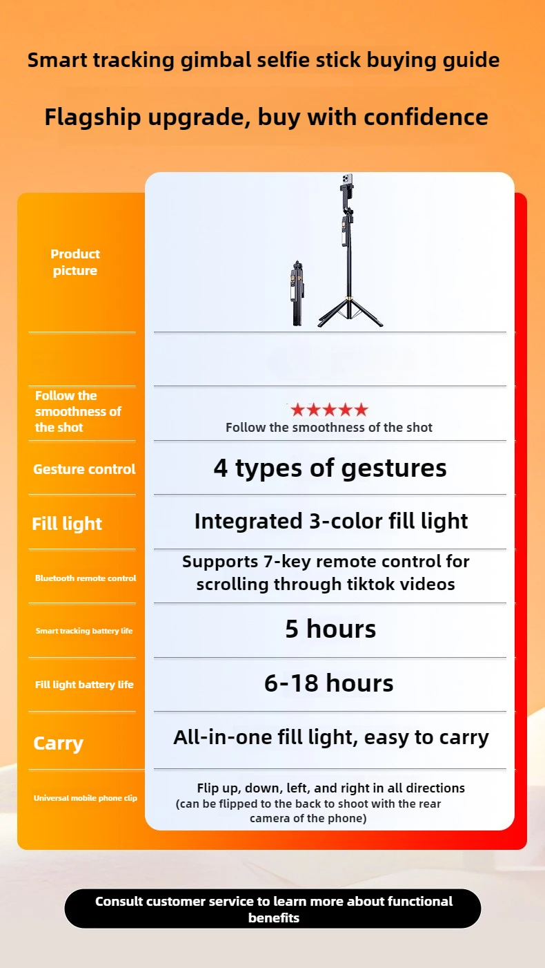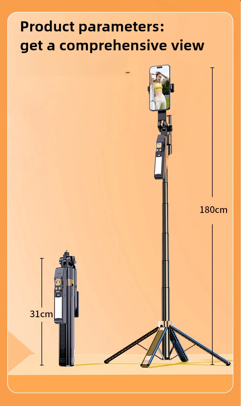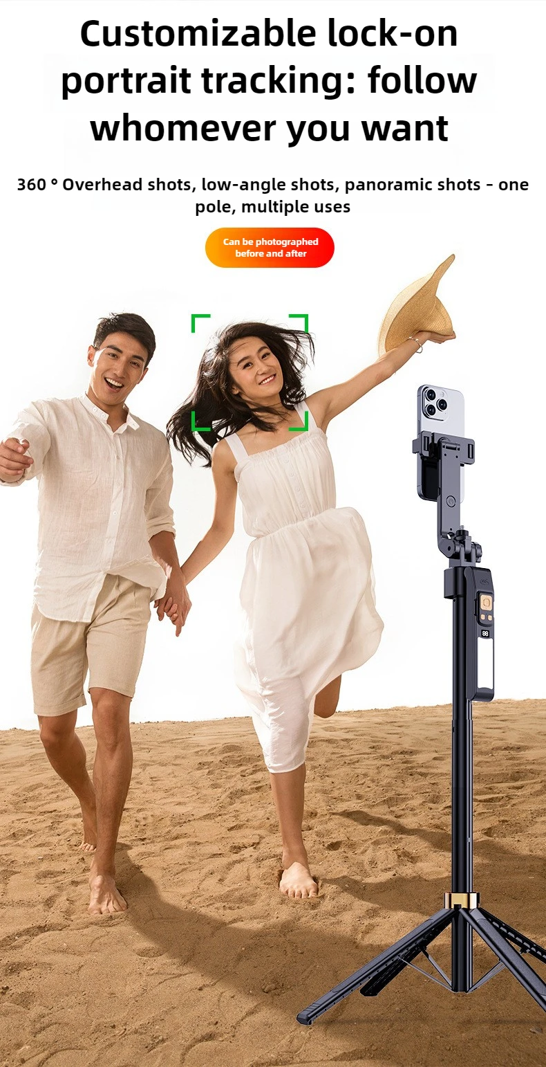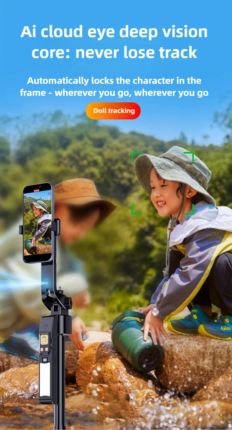 Selfie Stick 180CM Auto AI Face Tracking Quad Stand 360 Rotation Gimbal Tripod Stabilizer with LED Fill Light For Phone Camera