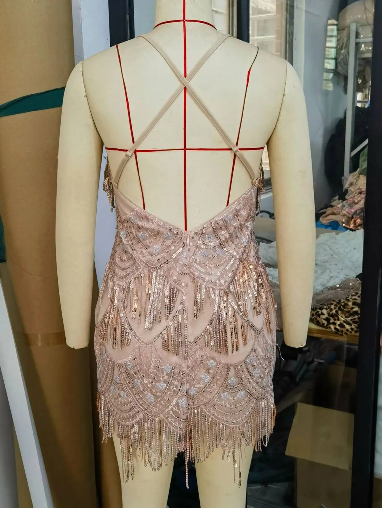 Sexy black backless tassel sequin summer dress women elegant party short dresses 2025 woman club birthday evening dress vestidos