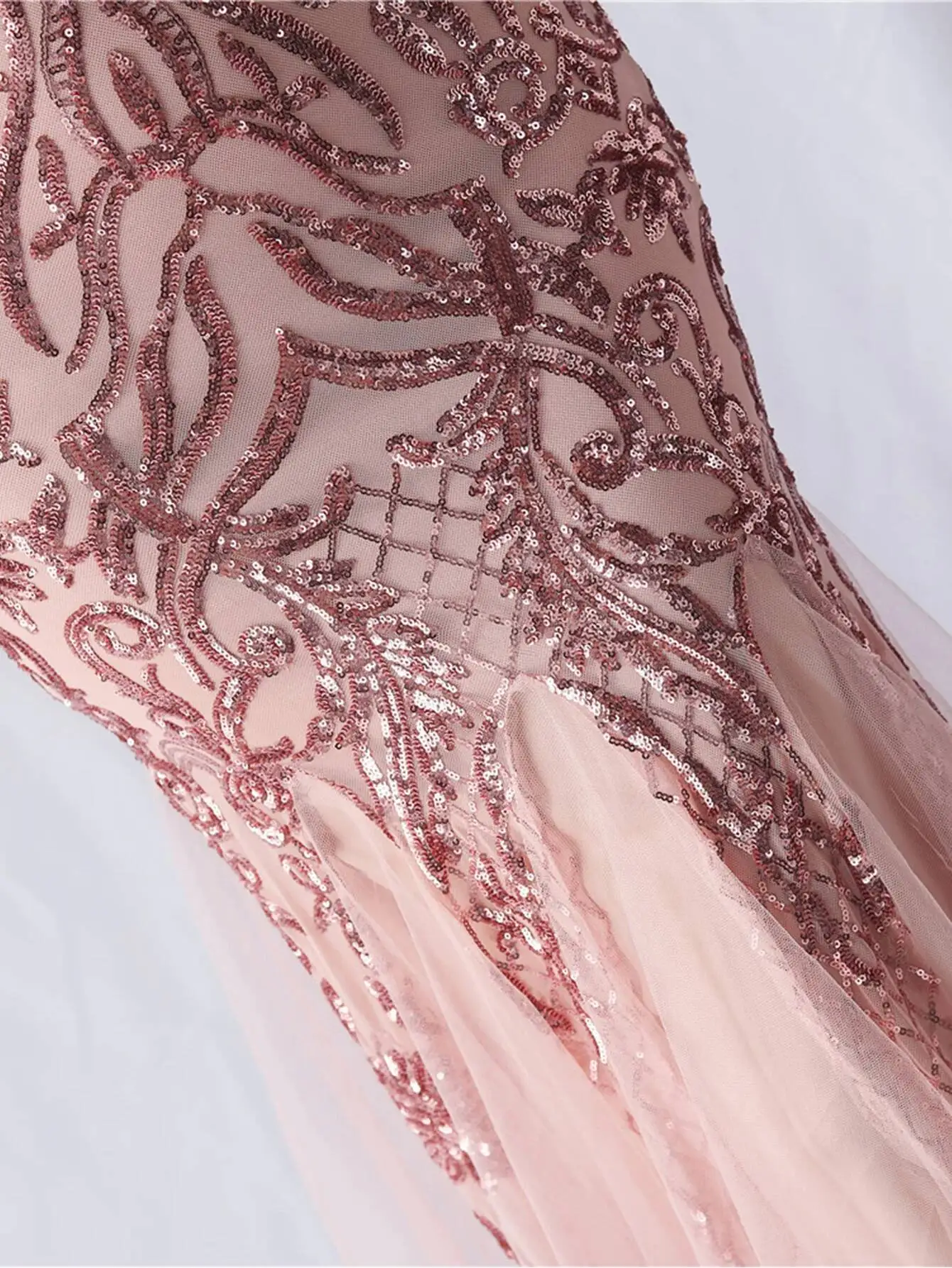 Sexy elegant long wedding evening dresses for women 2025 mesh birthday party dresses woman pink maxi sequin summer dress vestido