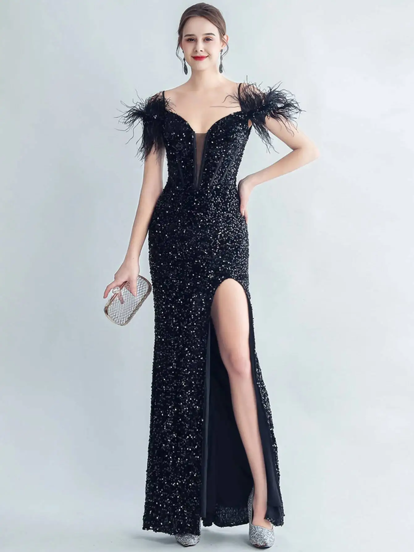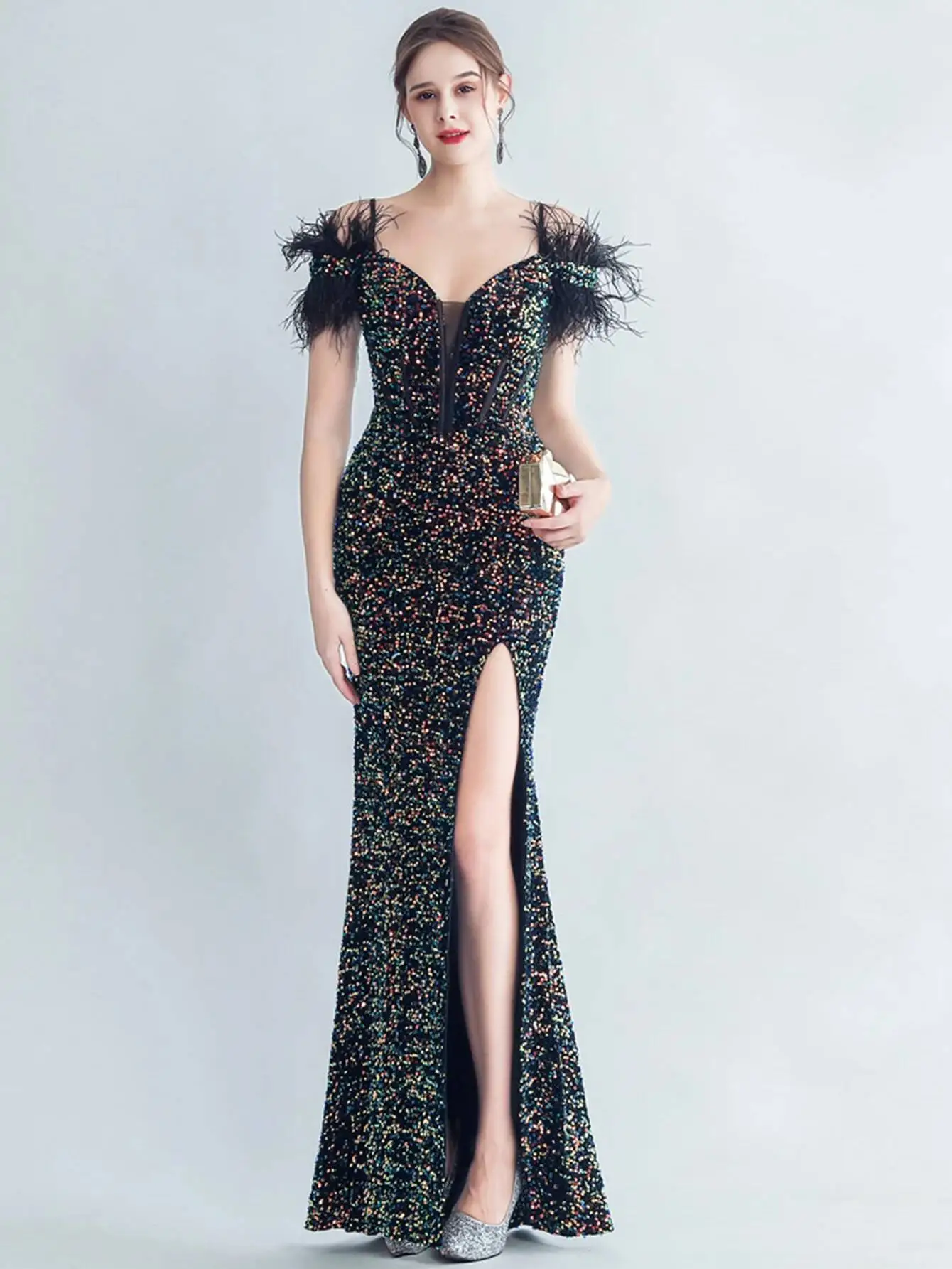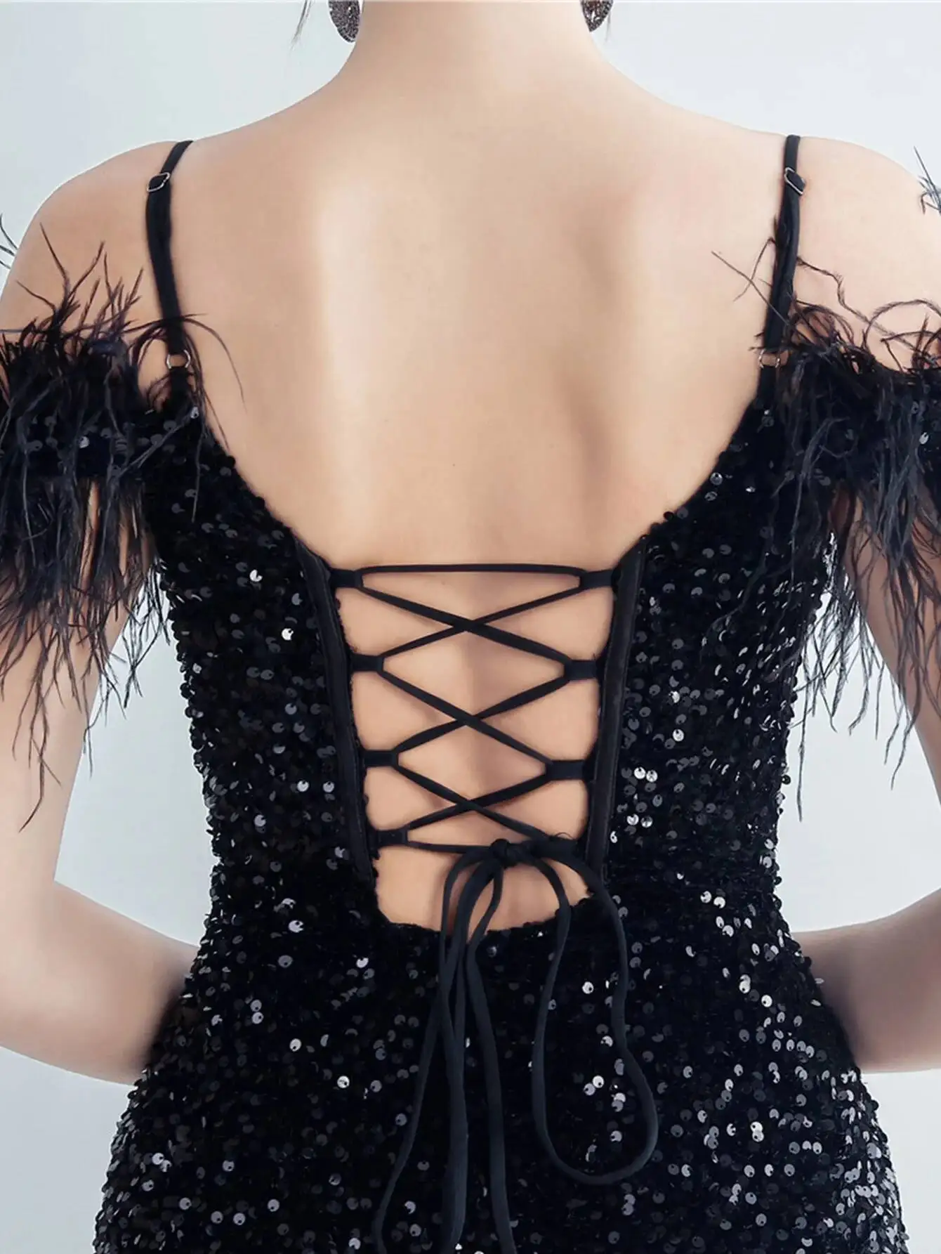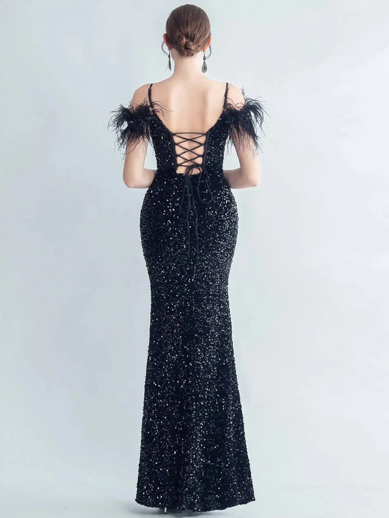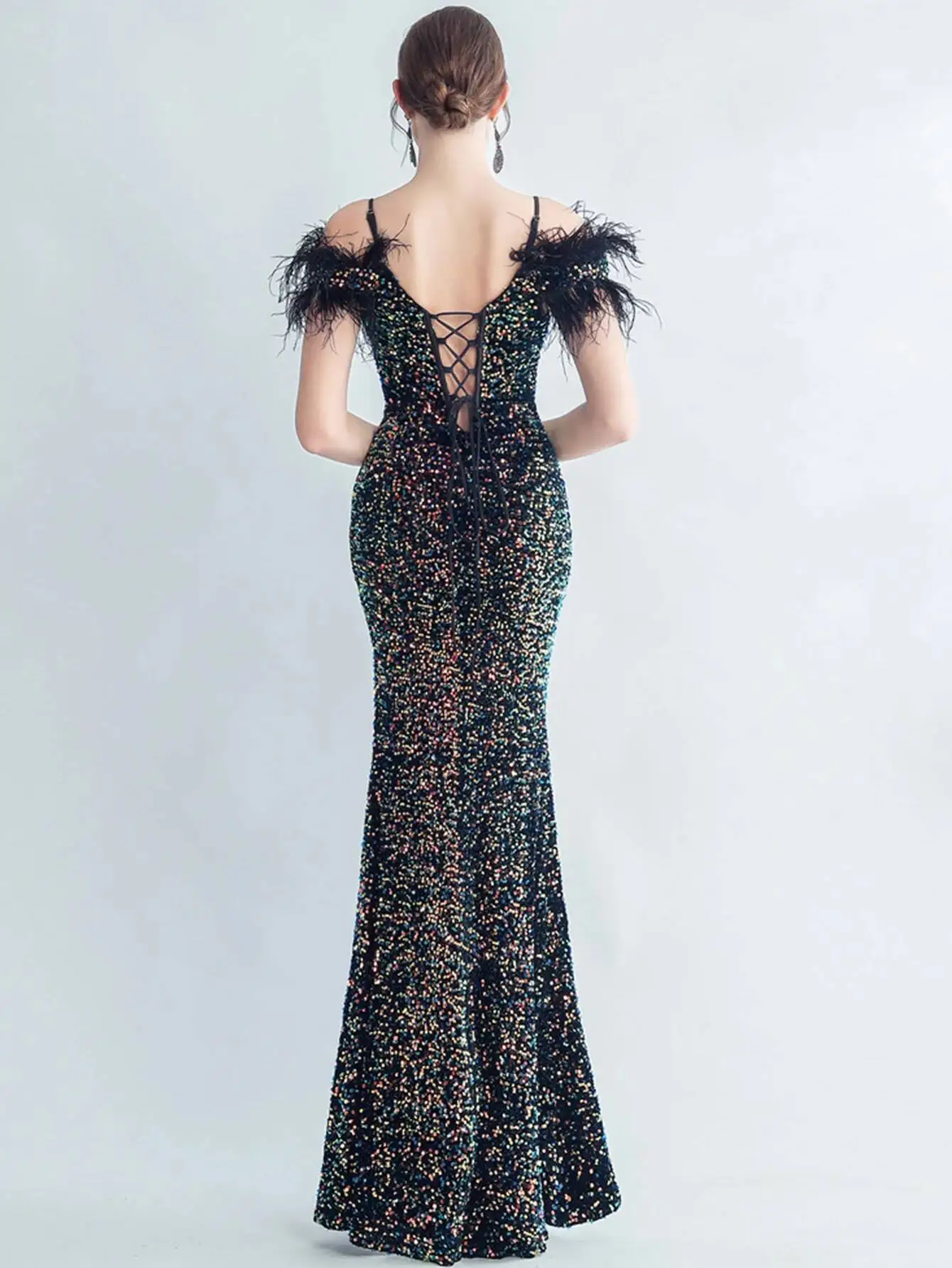 Sexy luxury wedding party long dresses for women elegant prom evening dresses backless black maxi sequin summer dress vestidos