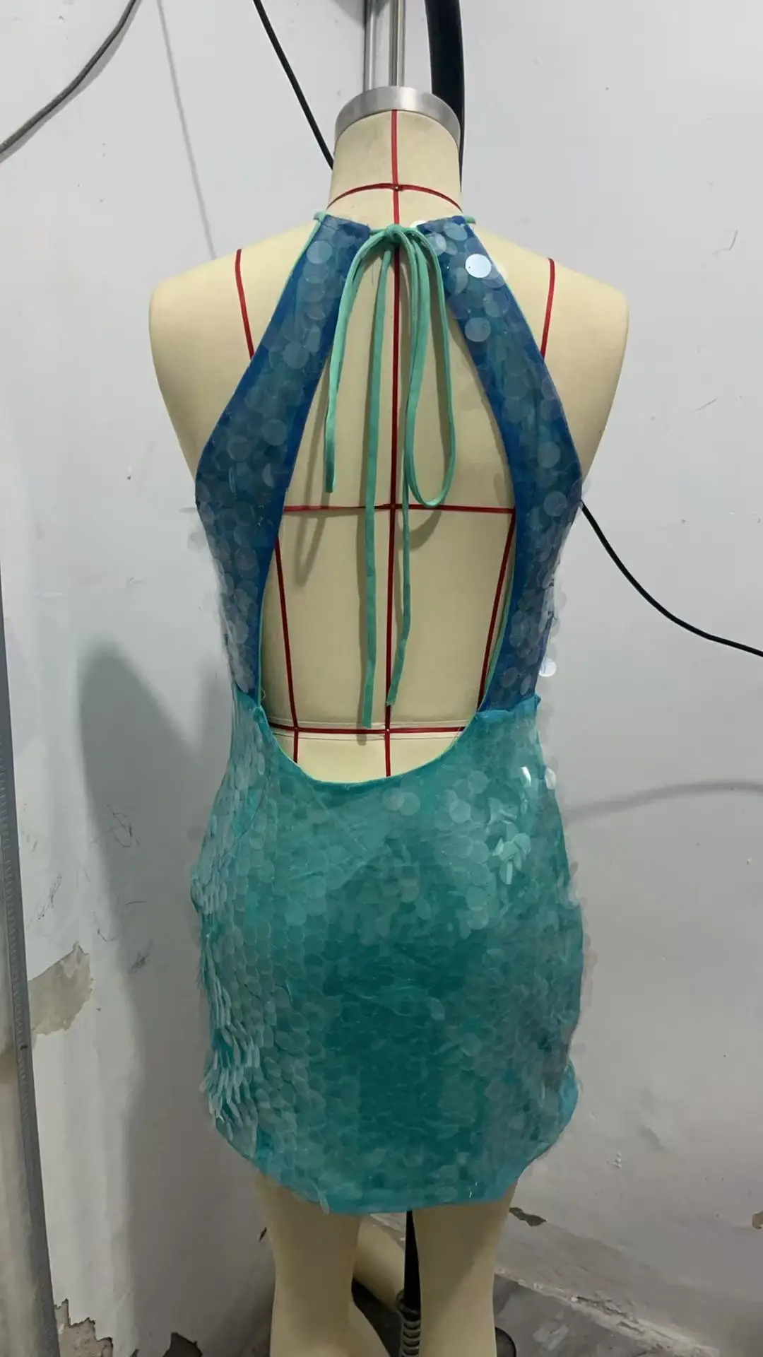 Be the first to review “Sexy Sequin Shiny Mini Dress Women Luxury Blue Green Patchwork Halter Short Dresses Evening Party Bright Dresses 2025 Prom New” Cancel reply