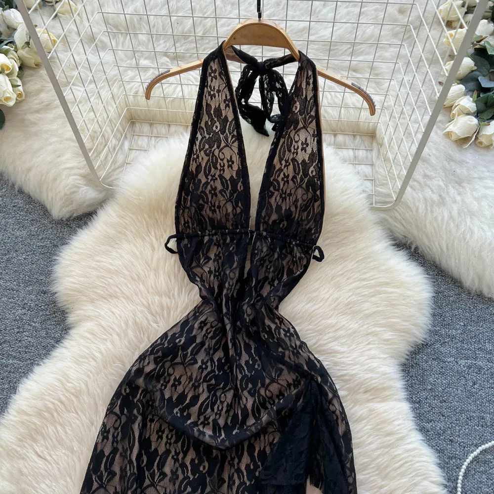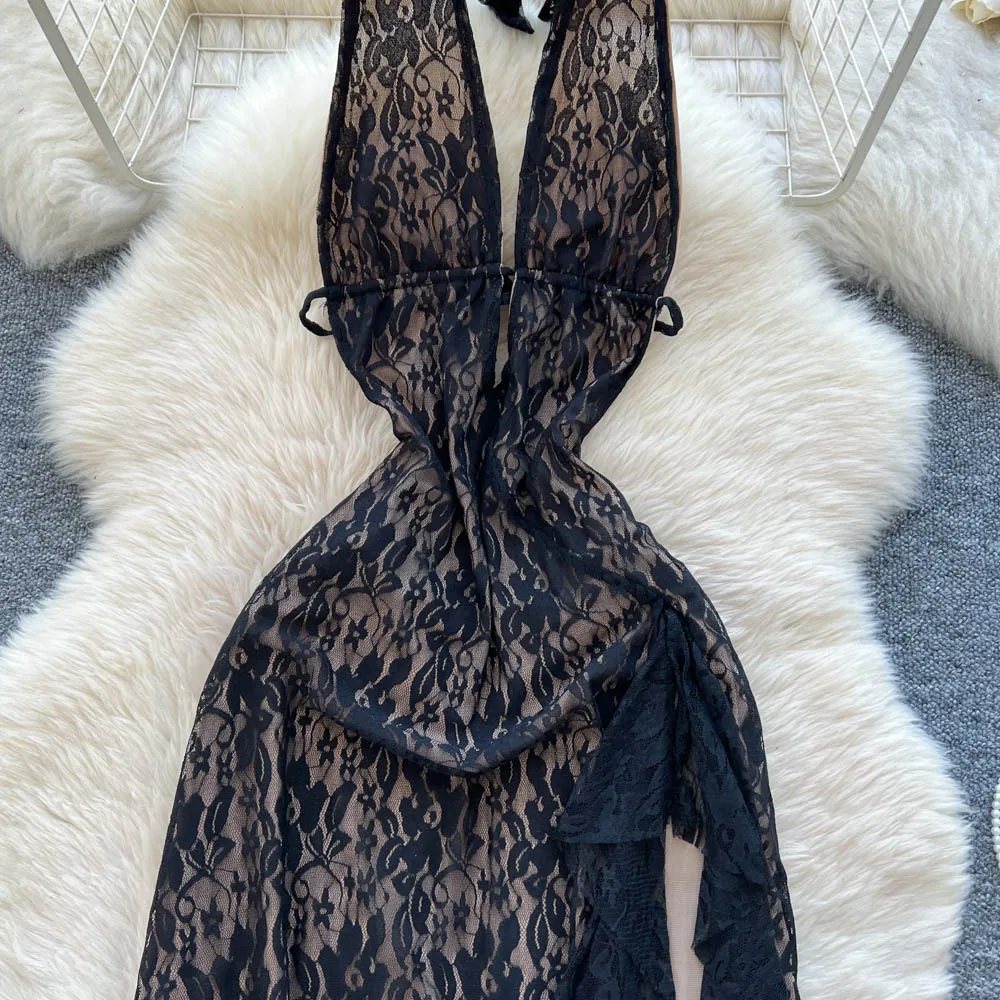 Be the first to review “SINGREINY Sexy Lace High Slit Dress Ladies Trendy Sensual Deep V Neck Ruffles Lace Up Halter Backless Luxury Party Maxi Dresses” Cancel reply