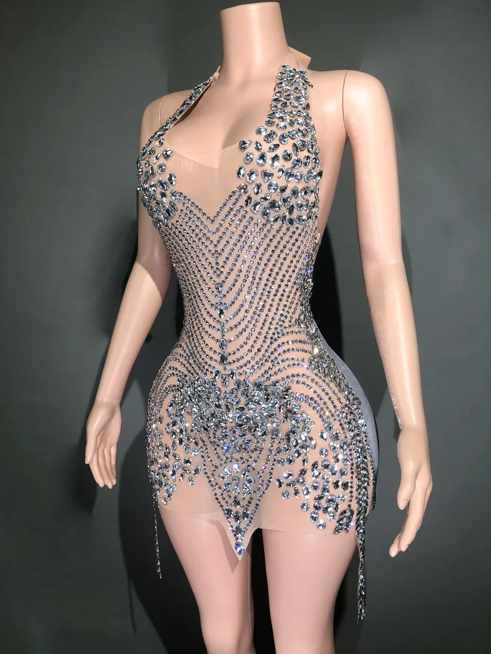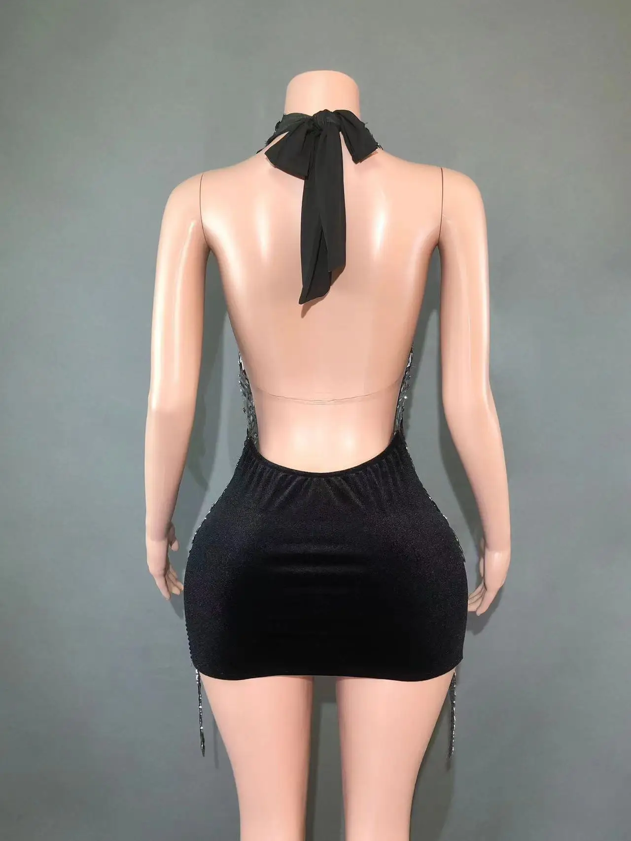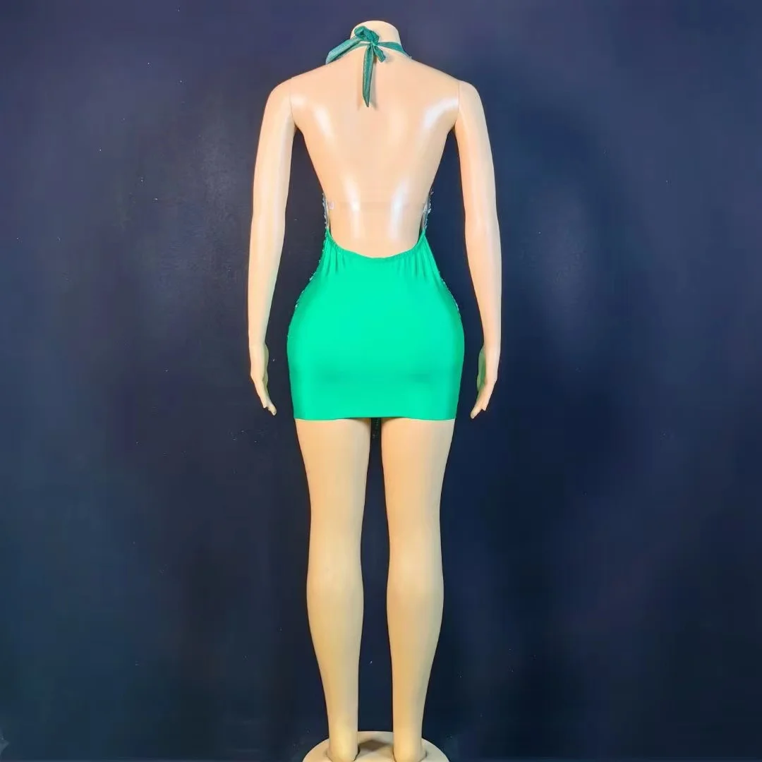 Be the first to review “Sparkly Rhinestones Evening Prom Celebrate Birthday Dress Sexy Halter Backless Mesh Velvet Short Dress Performance Stage Wear” Cancel reply