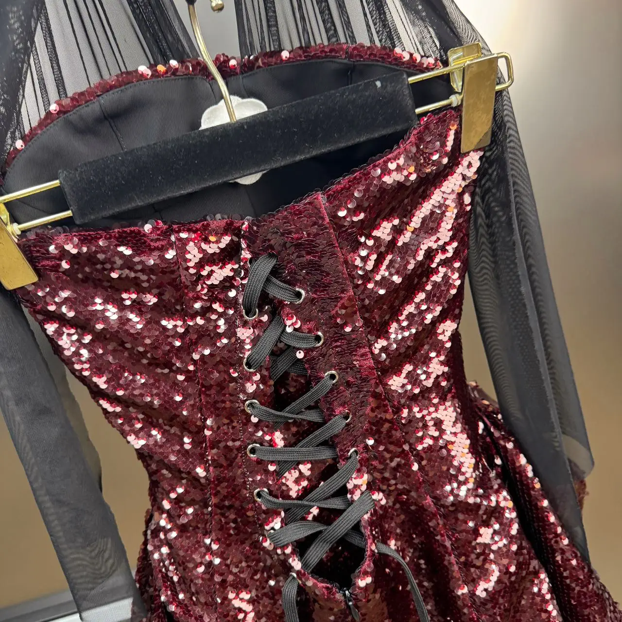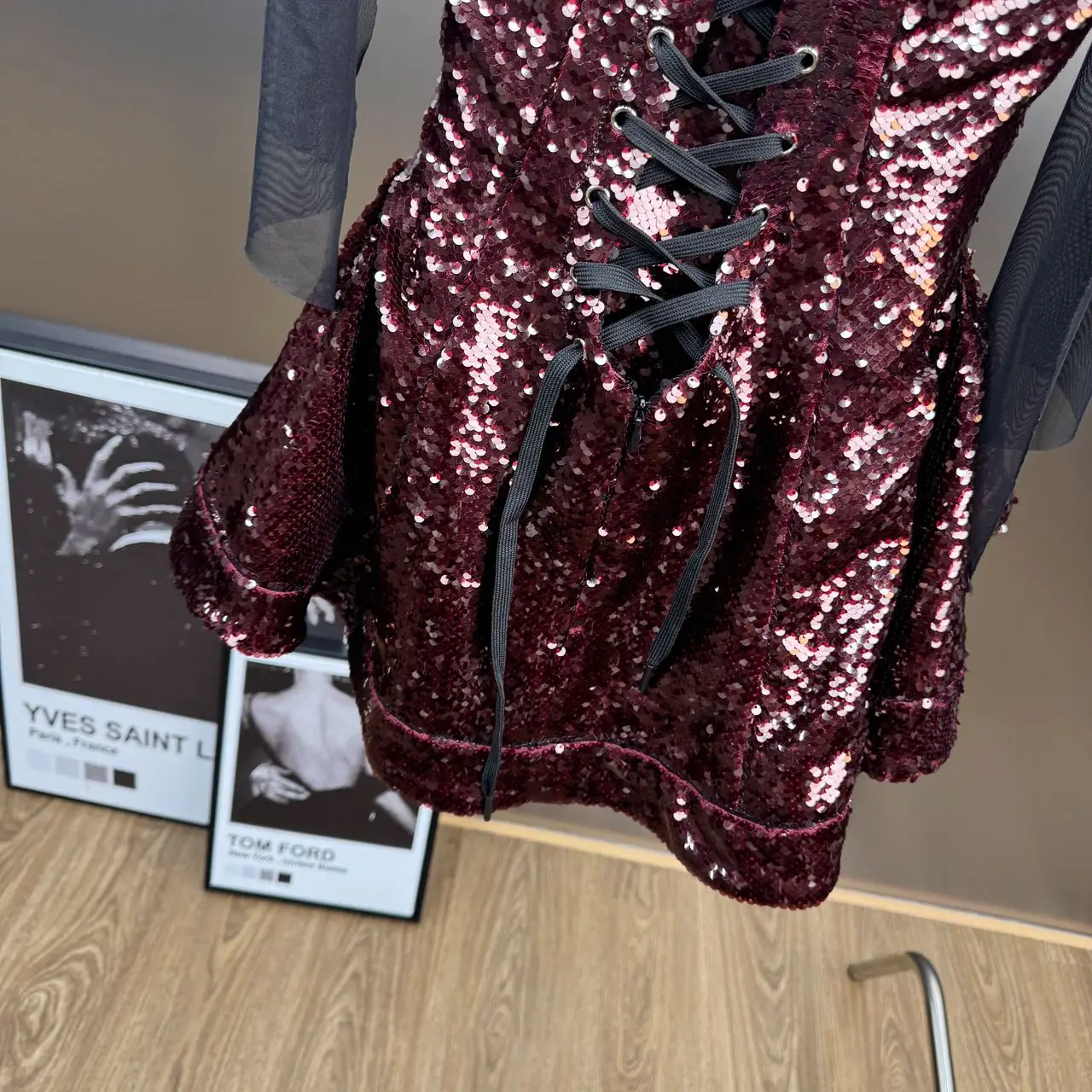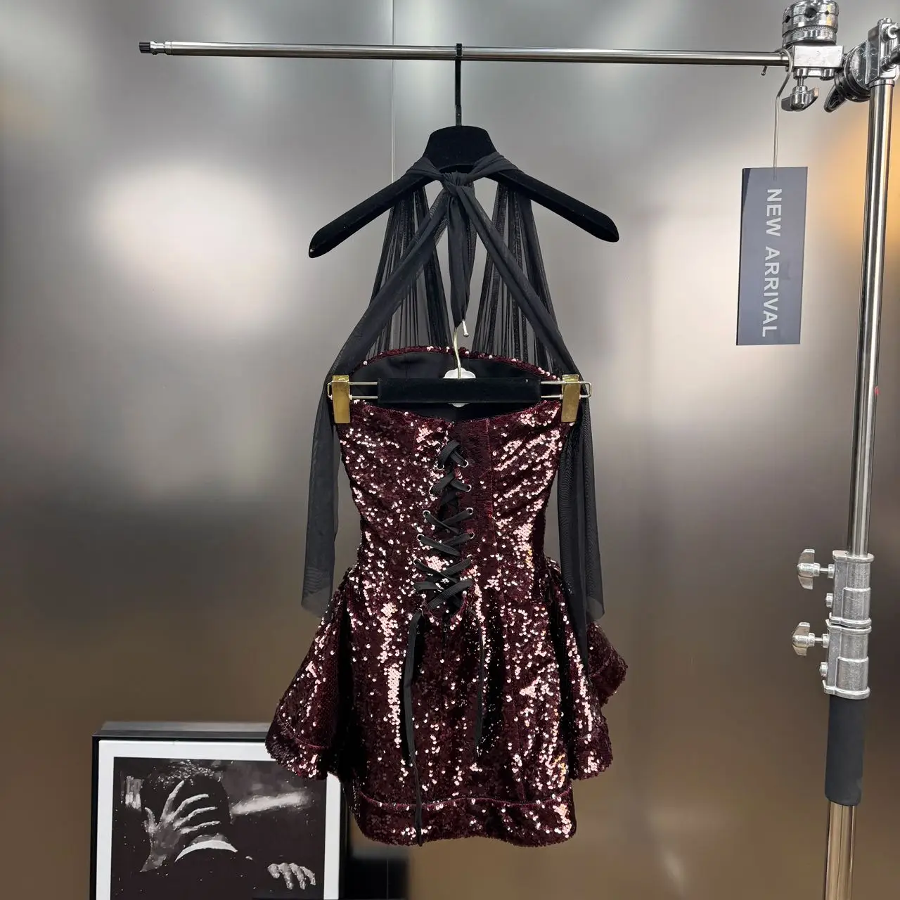 Spring and Summer 2025 New French Retro Heavy Industry Sequined Yarn Neck Slim Backless Dress Sexy Dress for Women