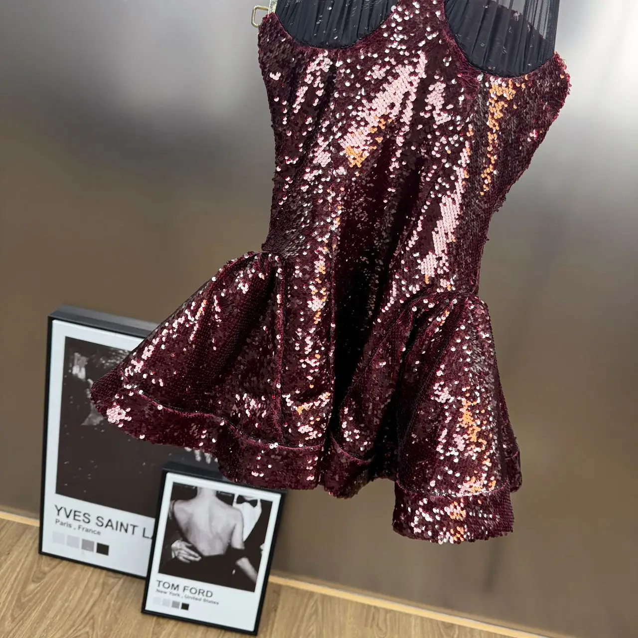 Be the first to review “Spring and Summer 2025 New French Retro Heavy Industry Sequined Yarn Neck Slim Backless Dress Sexy Dress for Women” Cancel reply