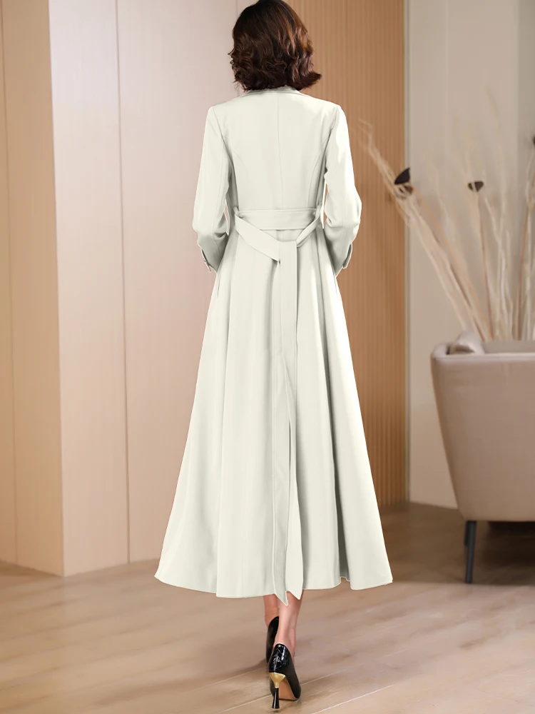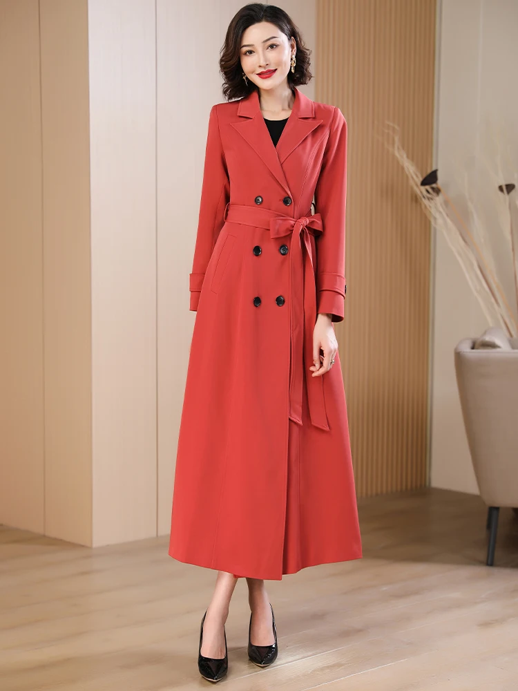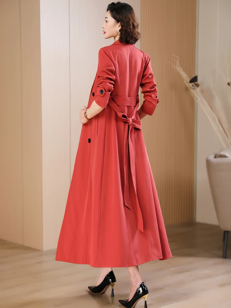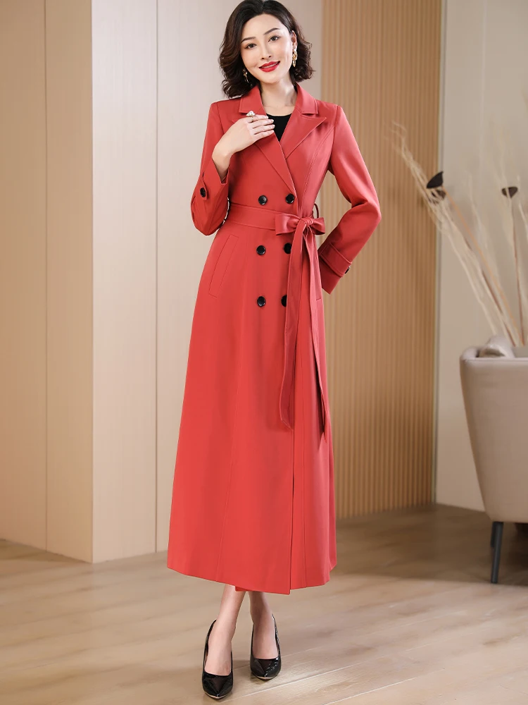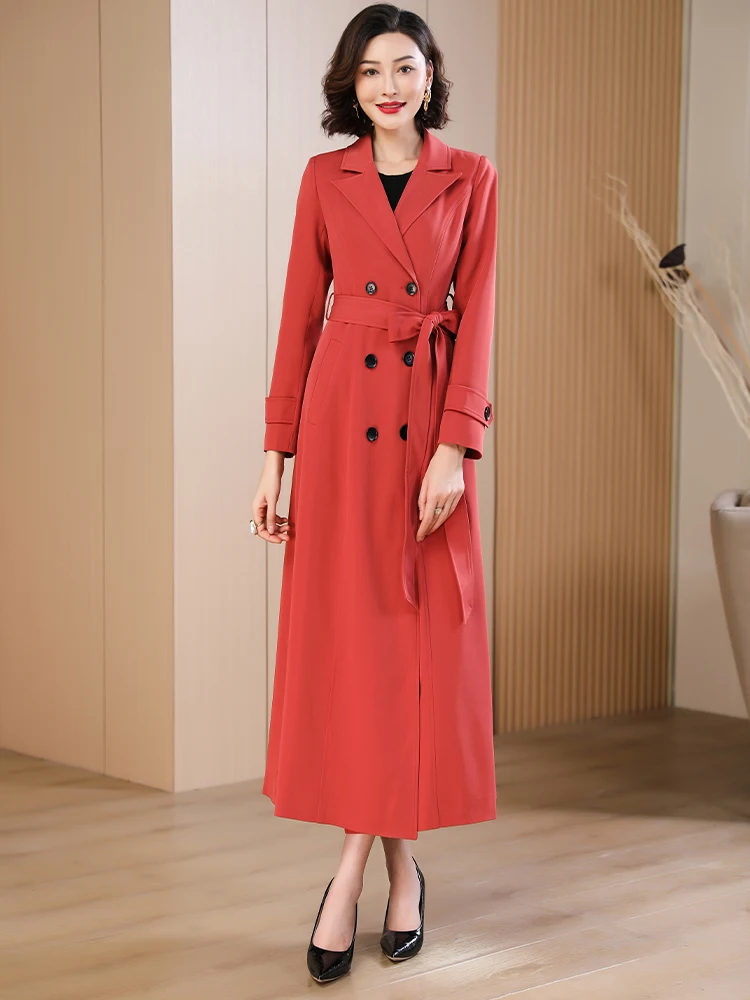 Spring Autumn New Brick Red Long Coat Women’s Suit Collar High-end Elegant Slim Fit Outerwear 2025 Fashion Trend 573