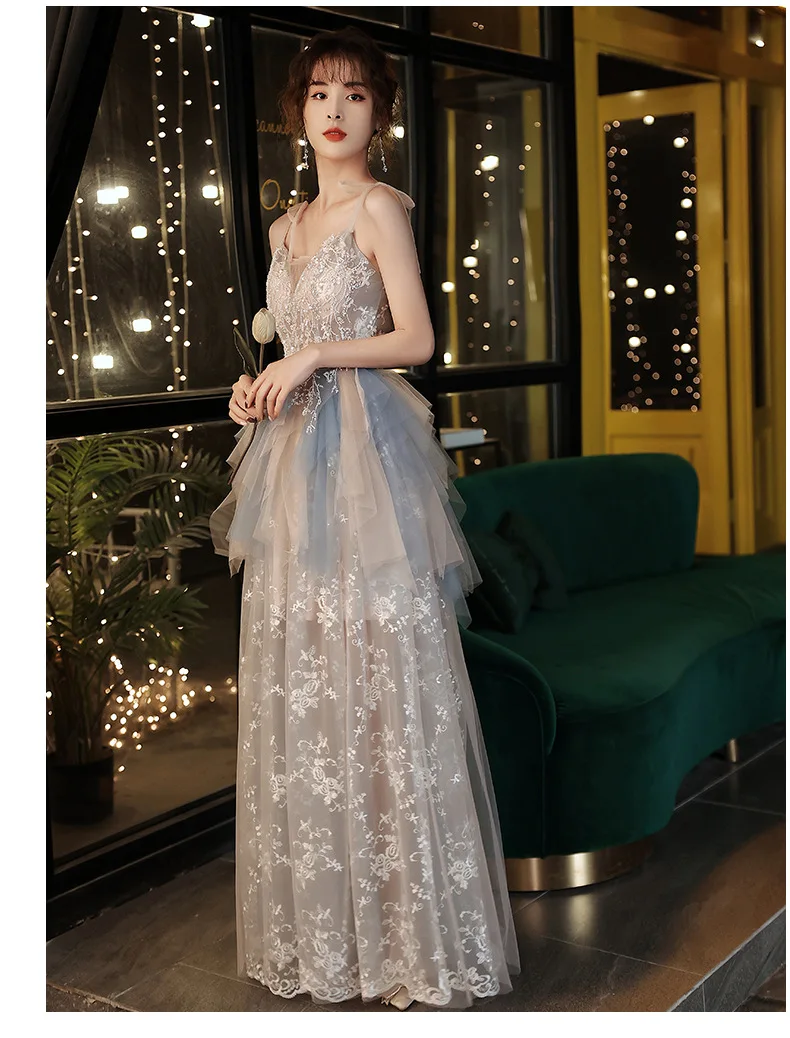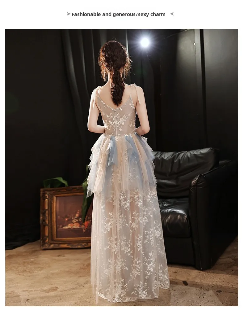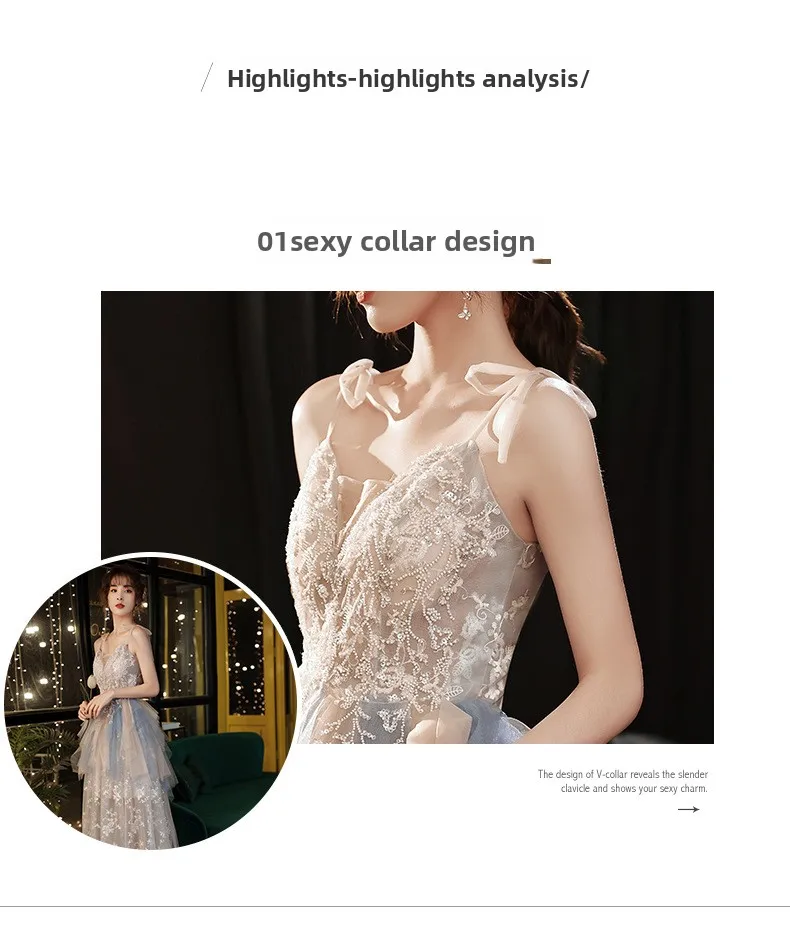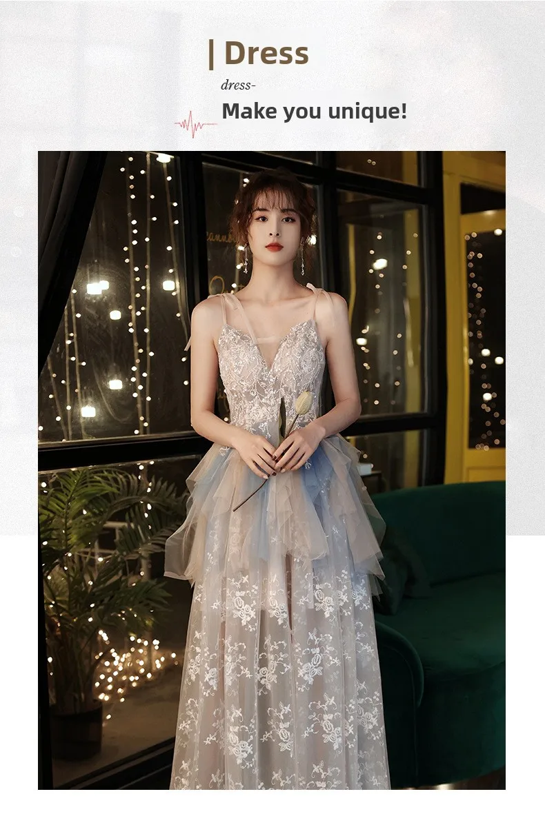Strap Bridesmaid Dresses Women 2025 New Style Temperament Banquet Sisters Group Celebrity Sen Series Host Evening Dresses Autumn