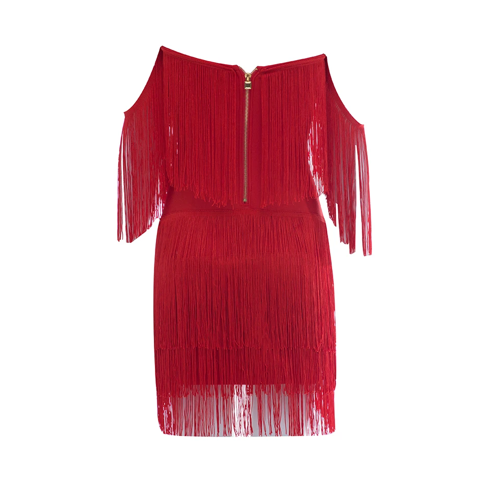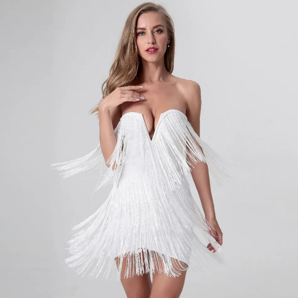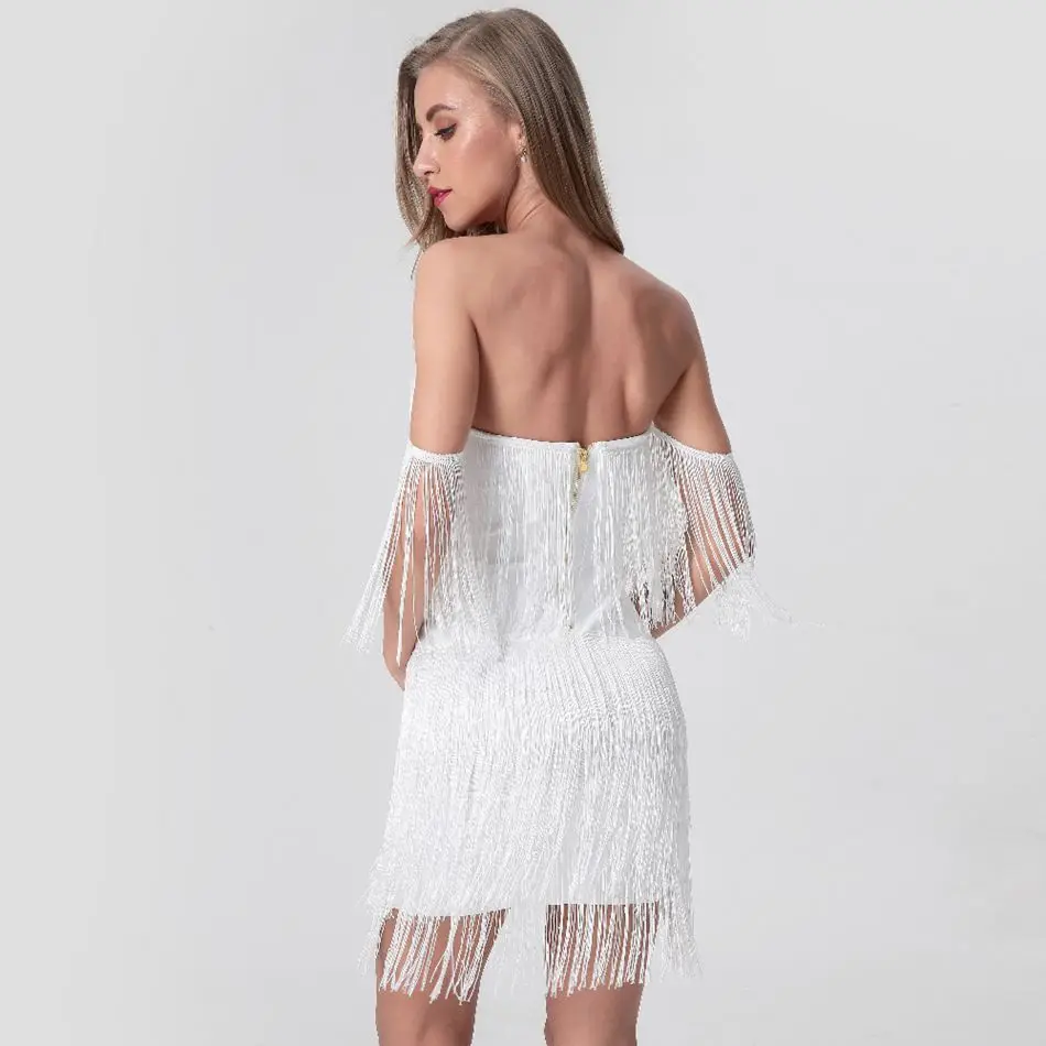 Summer Women Off Shoulder Bandage Dress Sexy Strapless Tassel Night Club Celebrity Evening Party Mini Bodycon Dress Vestido