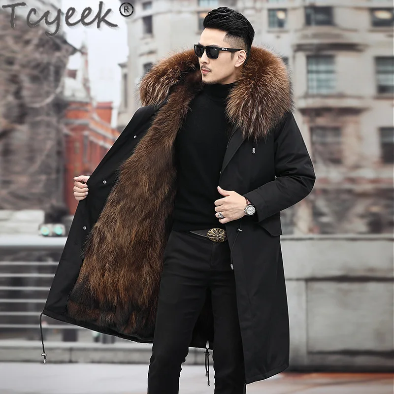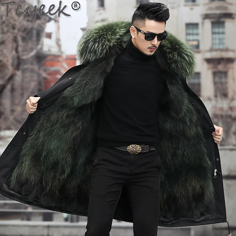 Tcyeek Fox Fur Lined Long Parka Real Fur Coat Winter Jackets for Men Clothing Coldproof Men’s Coats Liner Detachable Streetwear