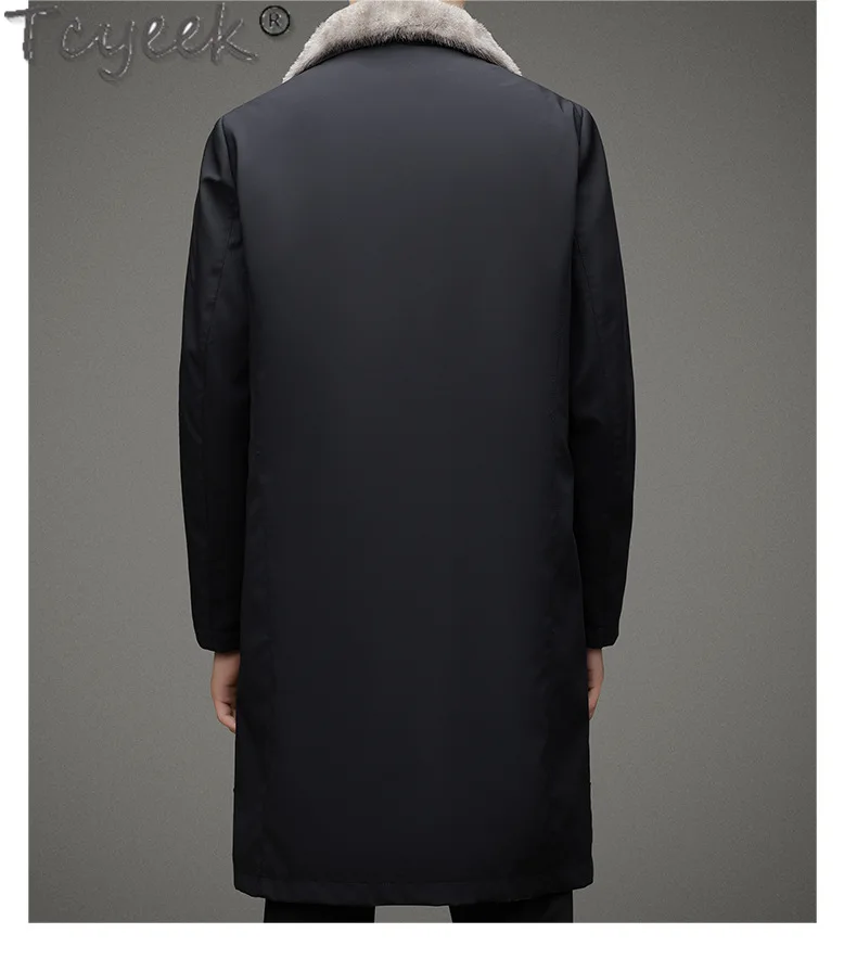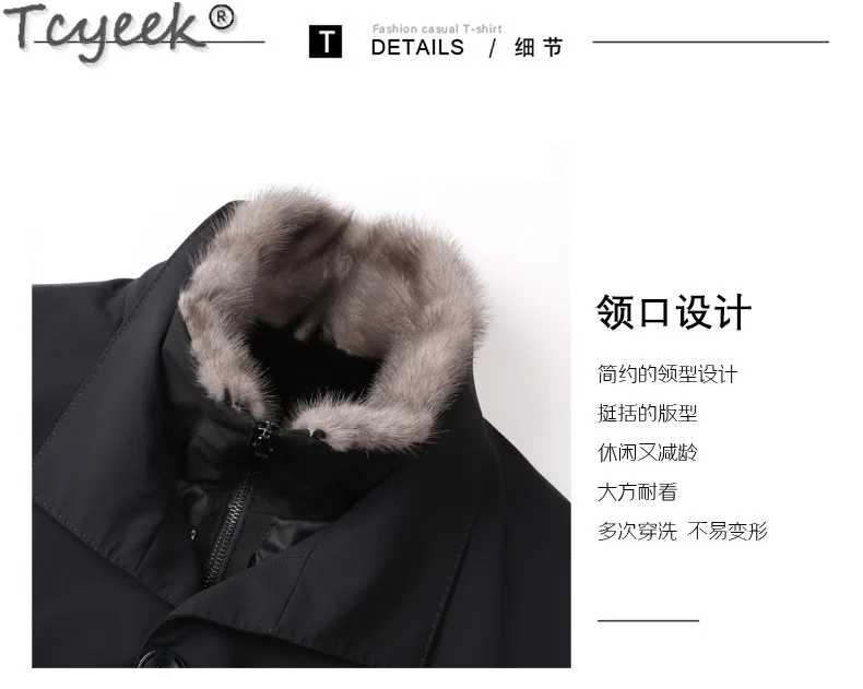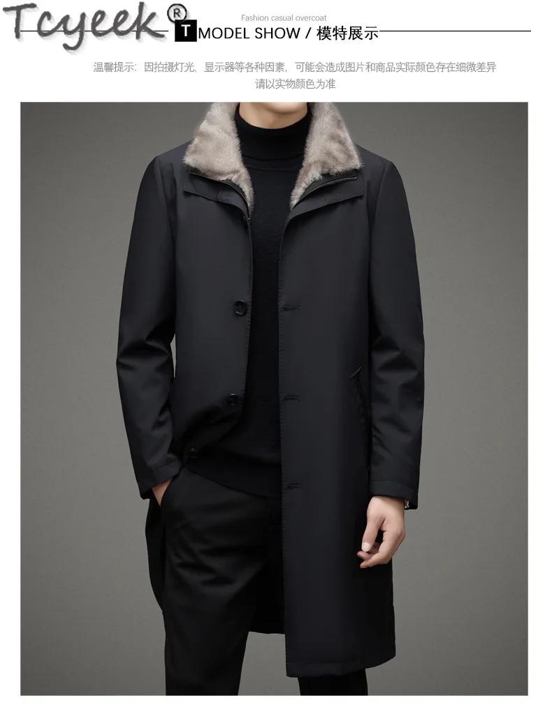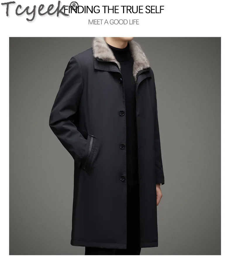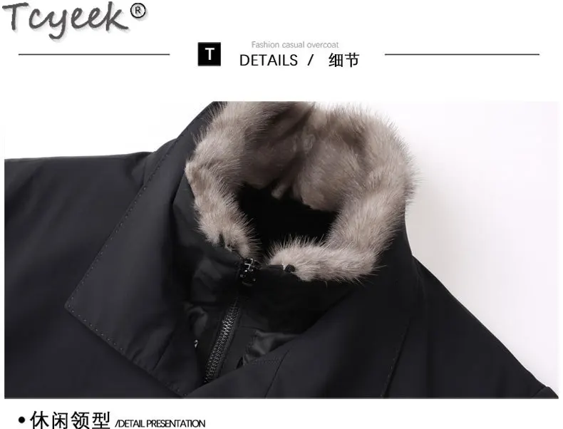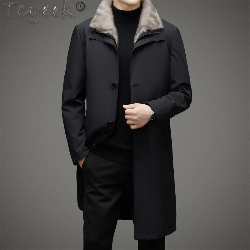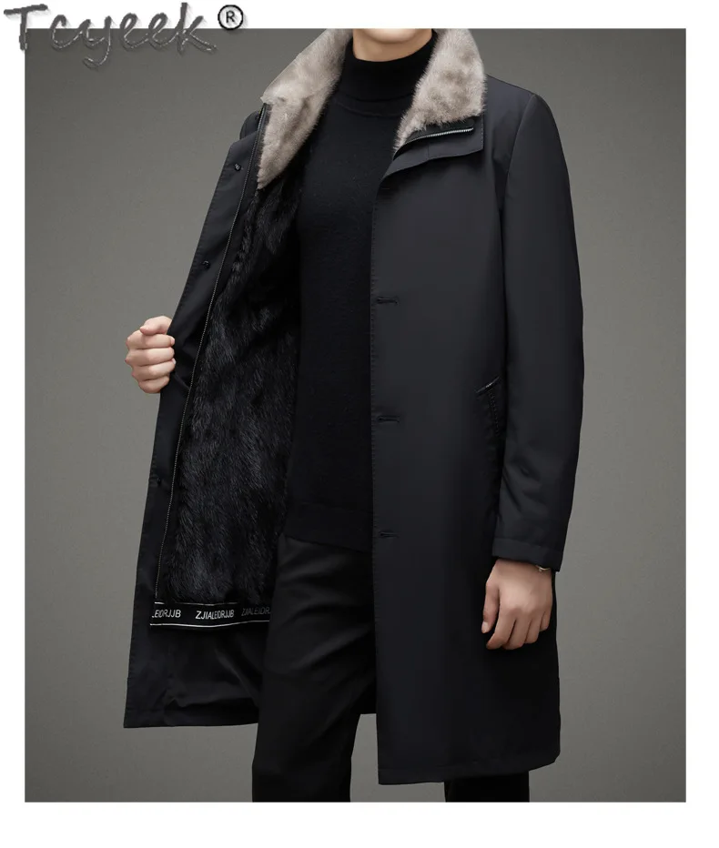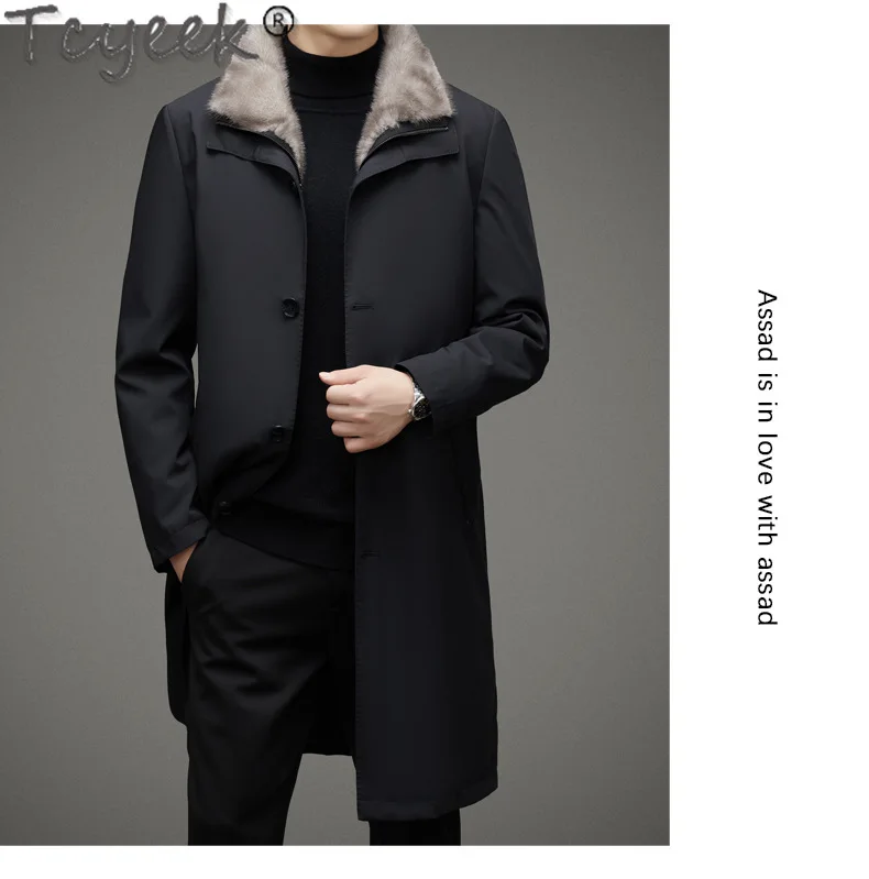 Tcyeek Natural Mink Fur Coat Winter Jacket Mid-length Men’s Parka Warm Real Fur Coats 2025 Trench Coat Men Clothes Slim Fit