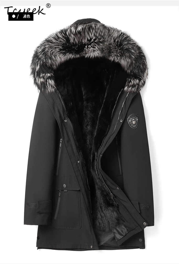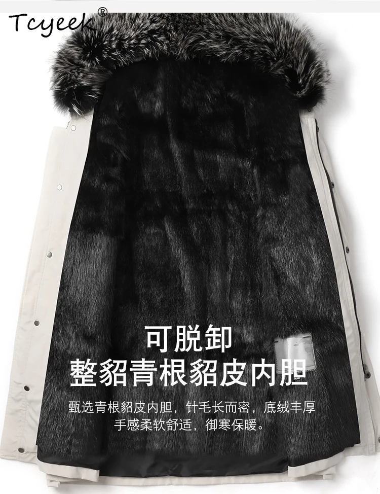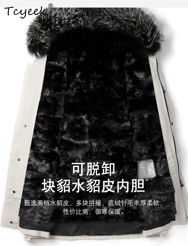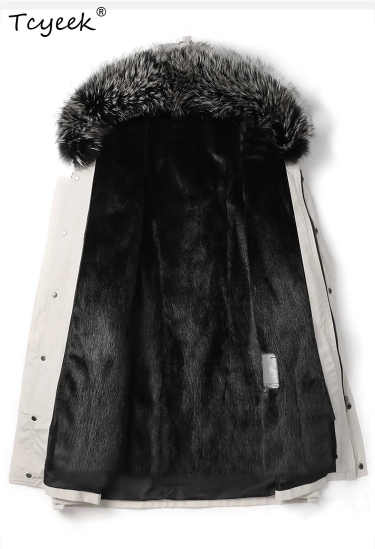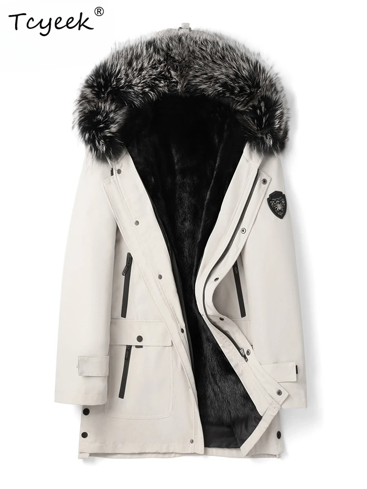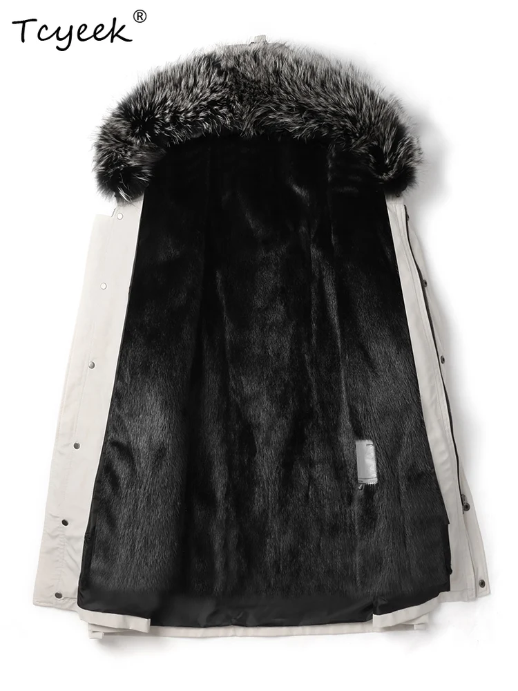 Tcyeek Natural Mink Fur Jacket Men Mid-length Real Fur Coat Winter Clothes Warm Mens Coats New in Outerwears Fox Fur Collar 2025