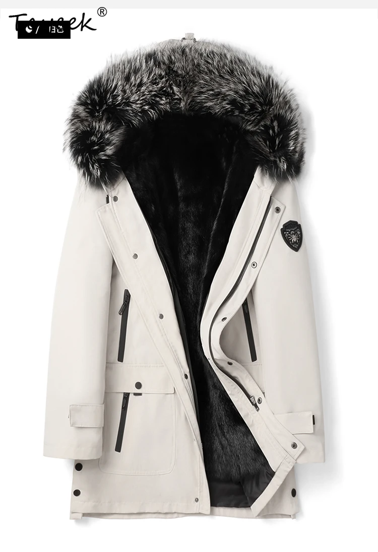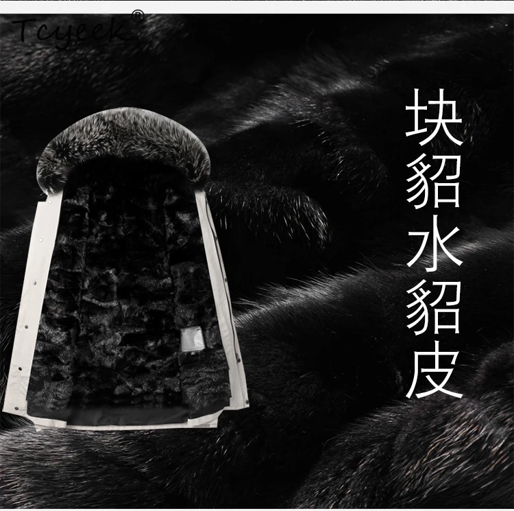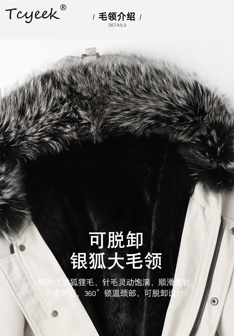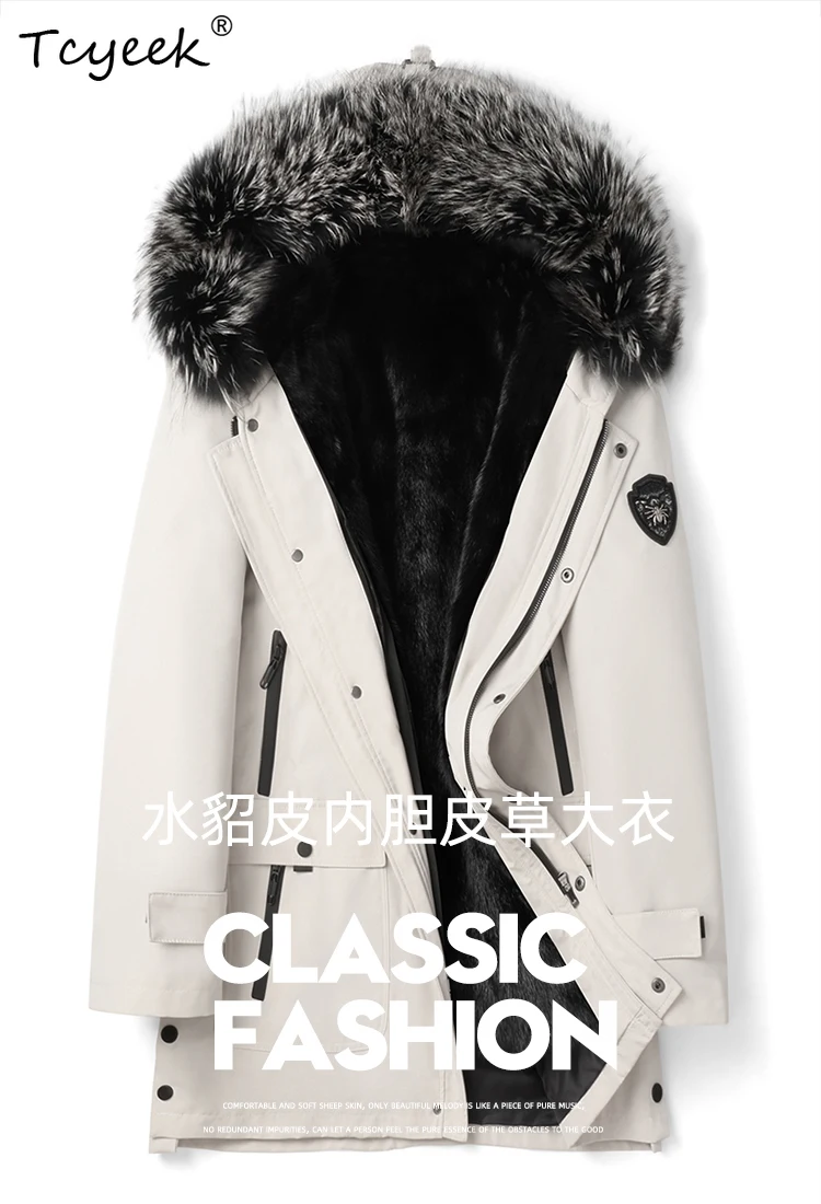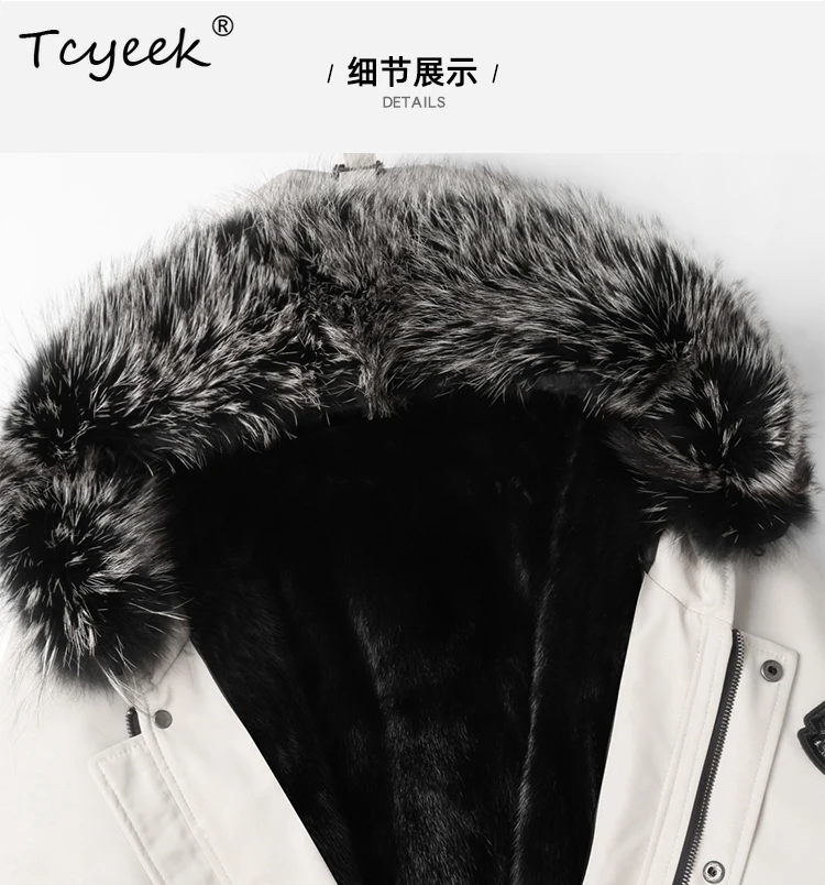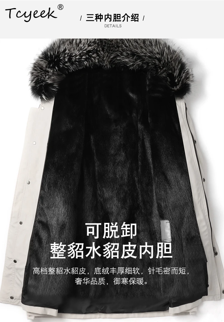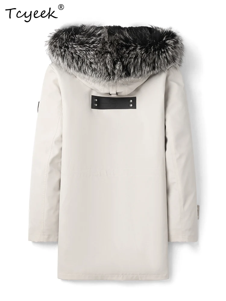 Tcyeek Natural Mink Fur Jacket Men Mid-length Real Fur Coat Winter Clothes Warm Mens Coats New in Outerwears Fox Fur Collar 2025