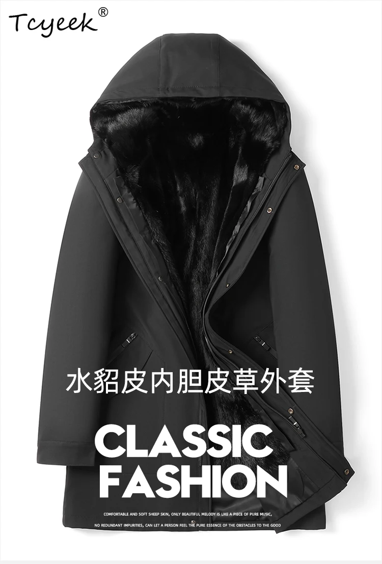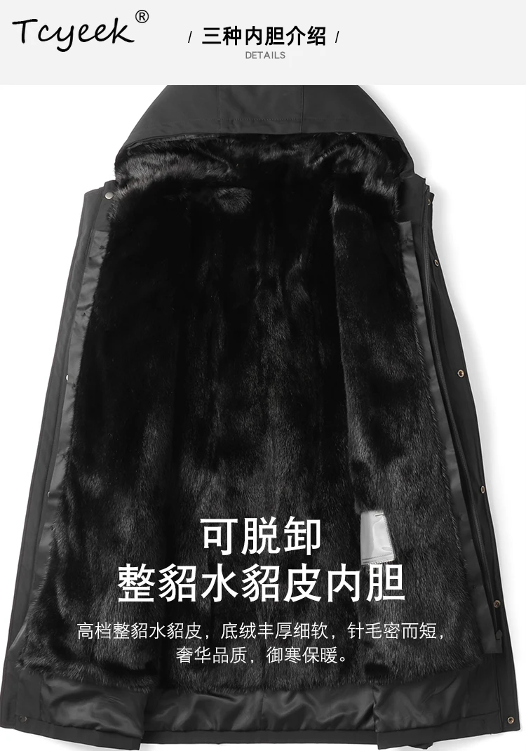 Tcyeek Real Fur Coat Men Winter Clothes Warm Natural Mink Jacket Mid-length Mens Coats New in Outerwears 2025 Detachable Liner