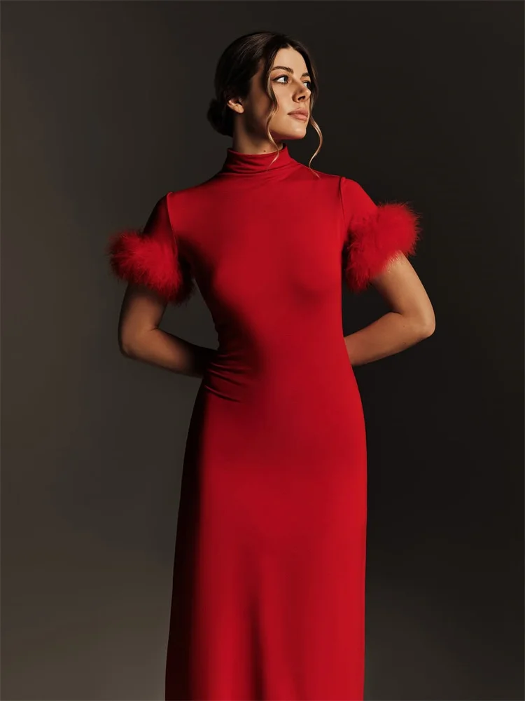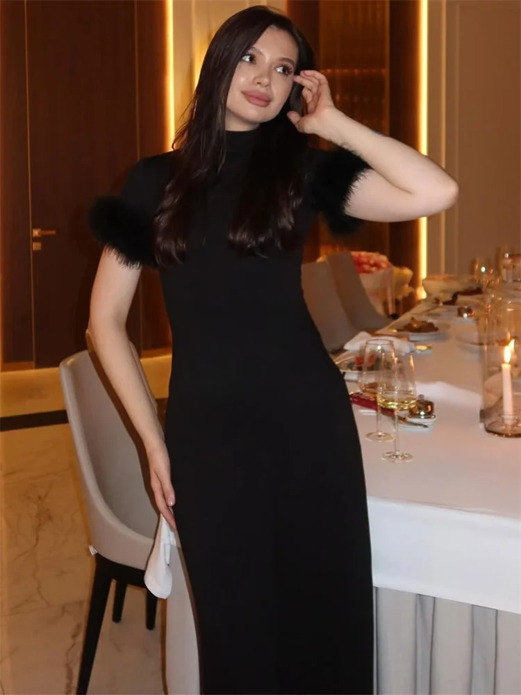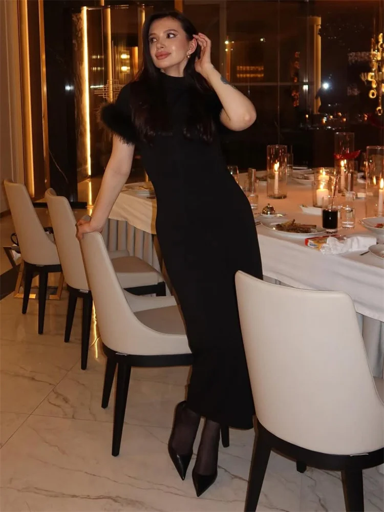Tossy Black Fashion Fluffy Long Dress Female Short Sleeve Elegant High Waist Patchwork Slim Party Dress Women Spring Maxi Dress