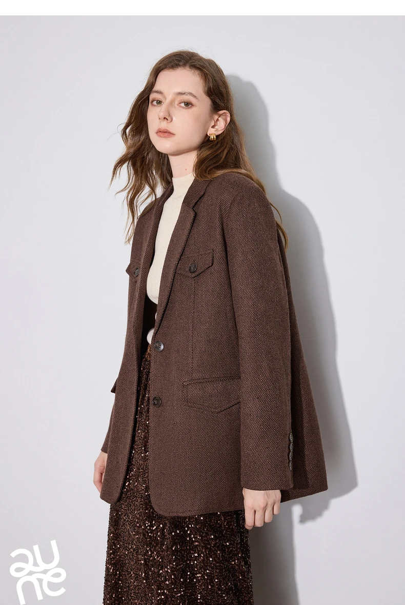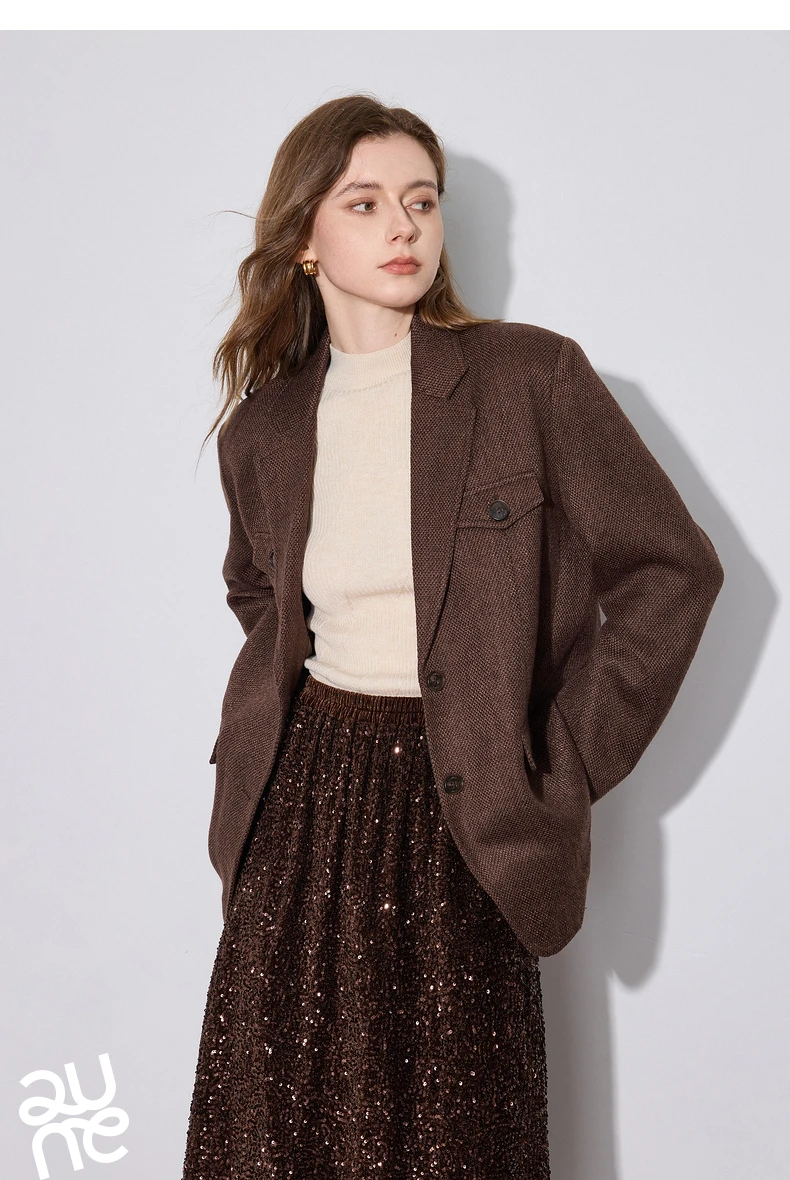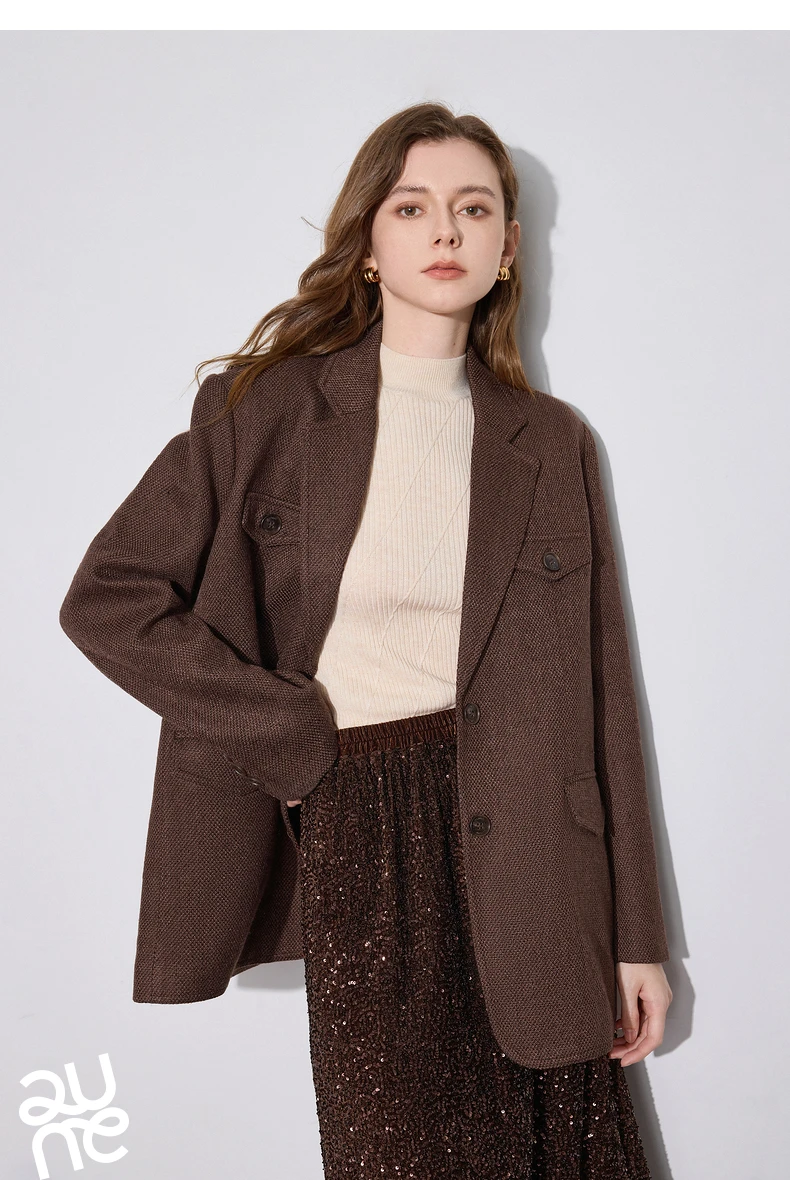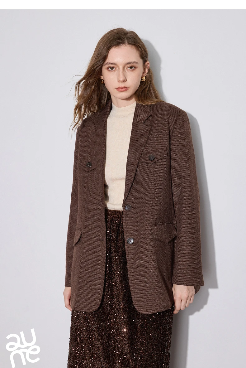 TOYOUTH Women Blazer Jacket 2024 Autumn and Winter 2024 New High-end Tailored Collar Thicking Jacket Coat