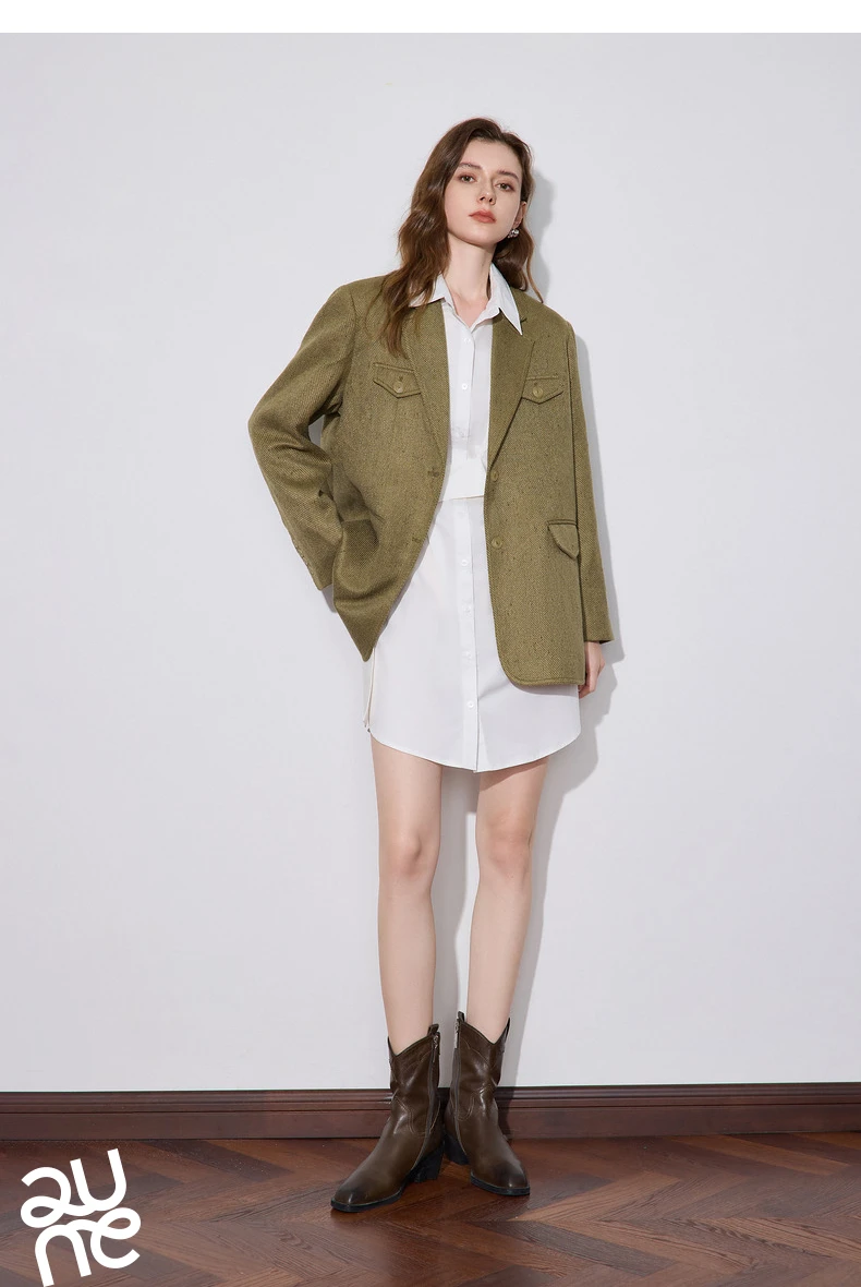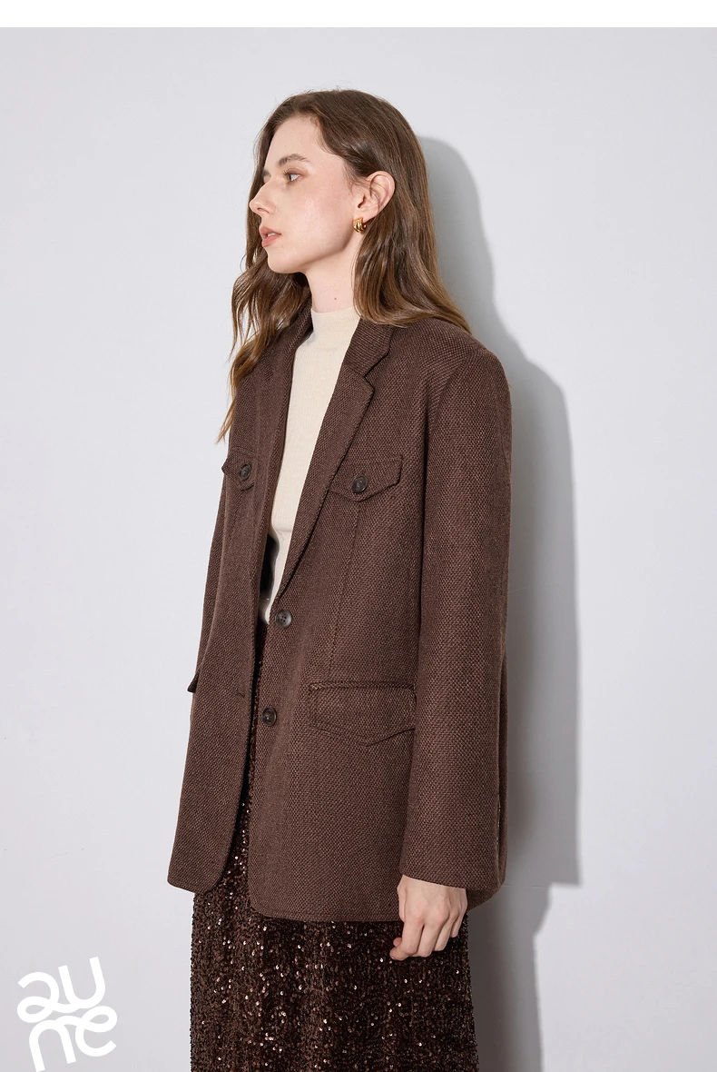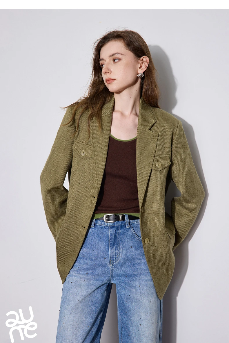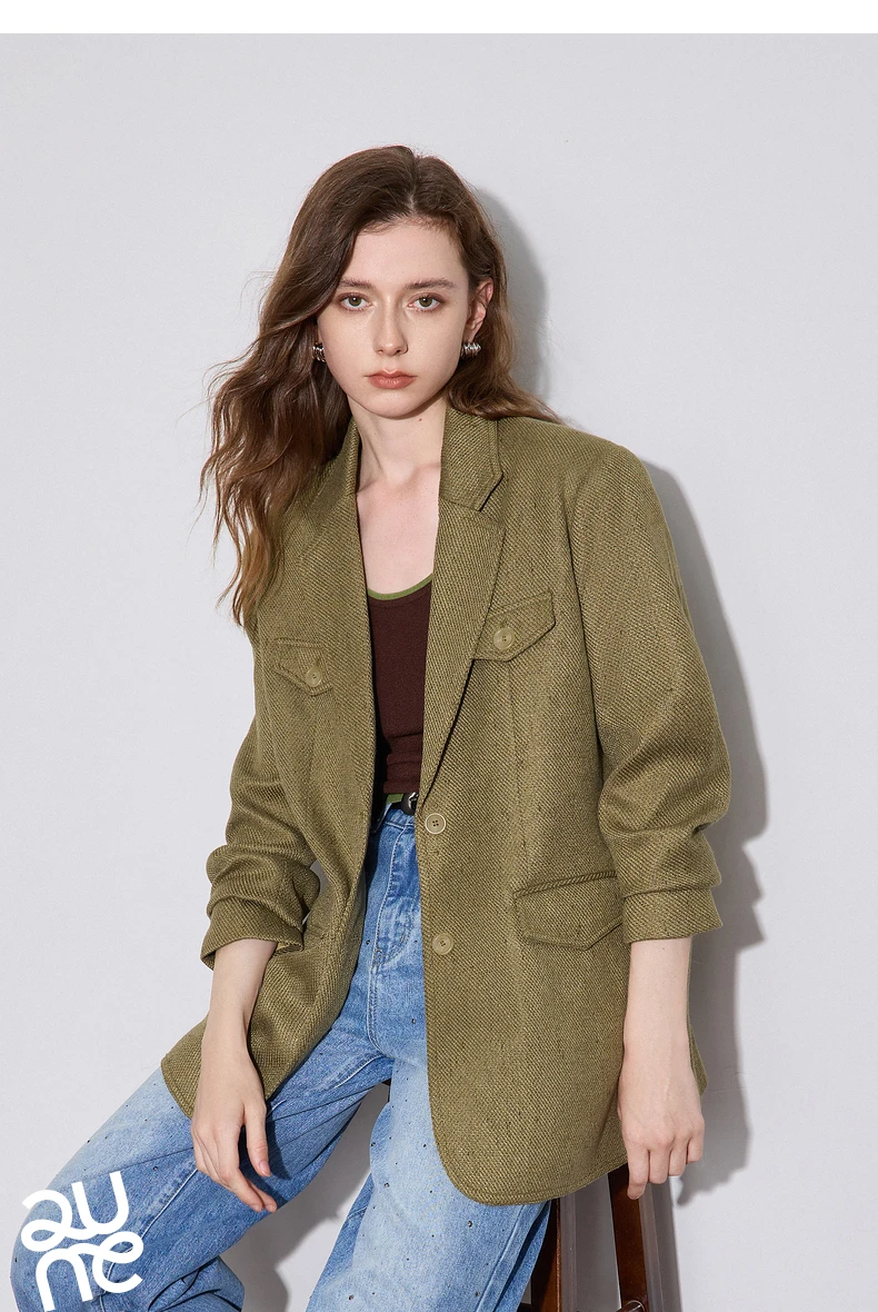 TOYOUTH Women Blazer Jacket 2024 Autumn and Winter 2024 New High-end Tailored Collar Thicking Jacket Coat