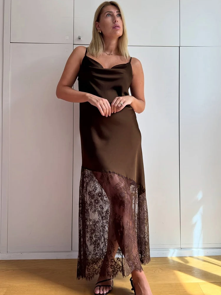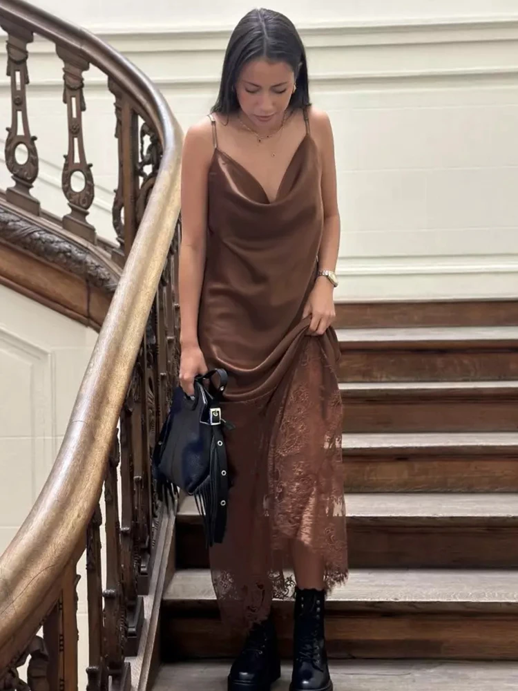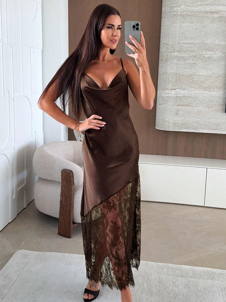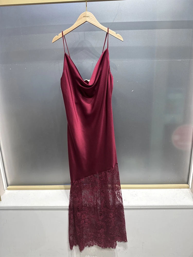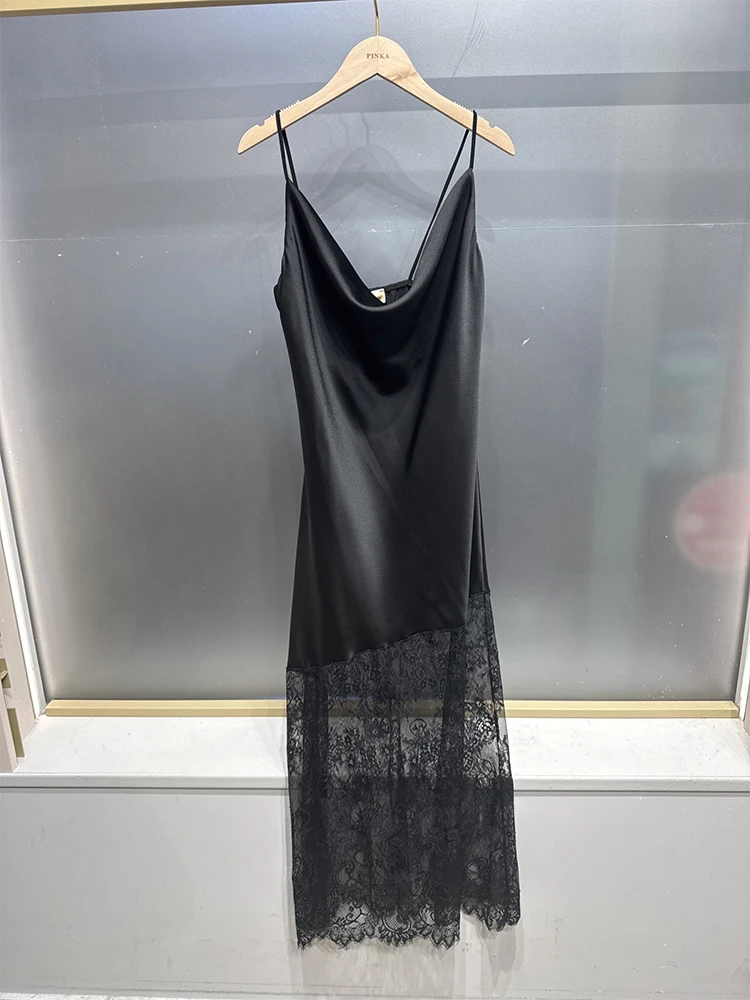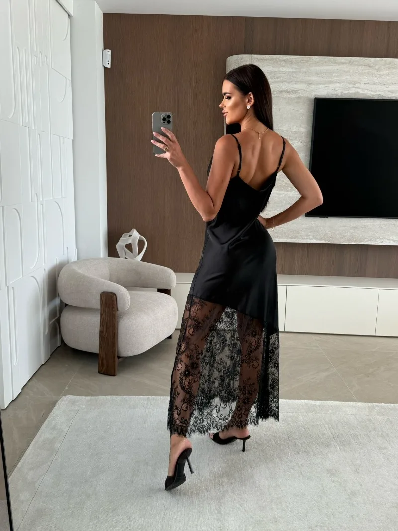 Trendix Hollow Out Lace Dress Women 2025 Winter Sexy V Neck Sleeveless Spaghetti Strap Dresses Party Club Elegant Evening Dress