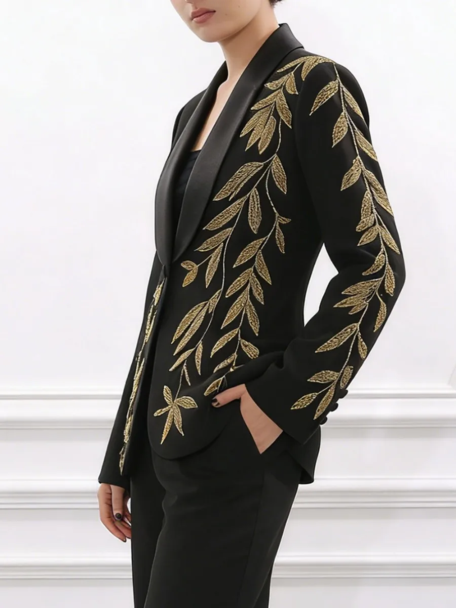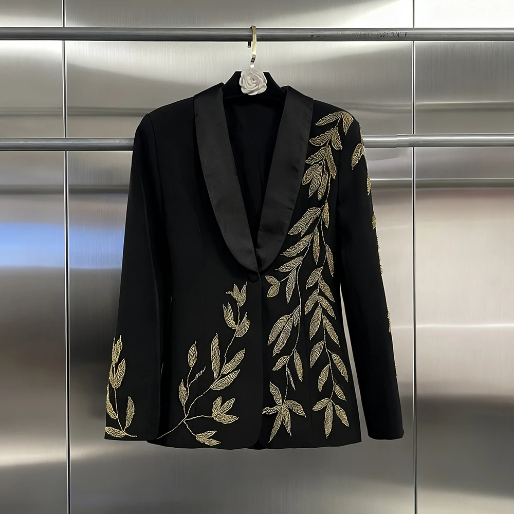 TWOTWINSTYLE Black Spliced Beading Temperament Blazer Female Lapel Long Sleeve Slimming Commute Luxury Women’s Blazers Fashion