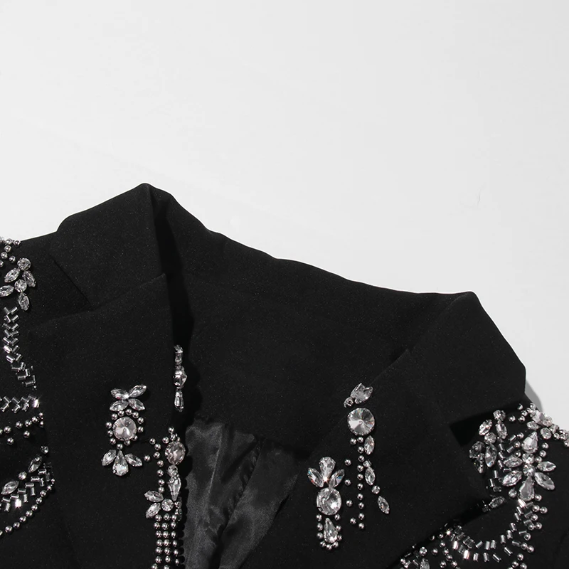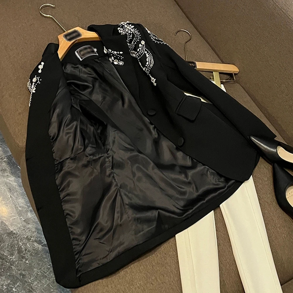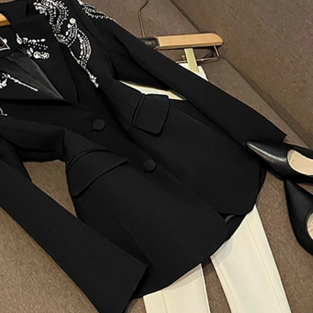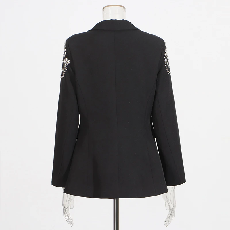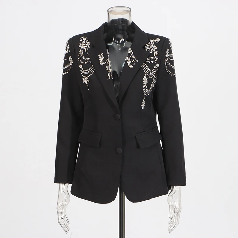 TWOTWINSTYLE Slimming Solid Spliced Diamond Jacket For Women Laple Long Sleeve Temperament Spring Jackets Female New KJA527627