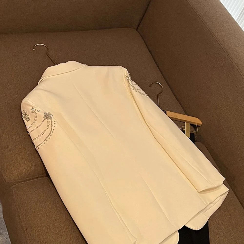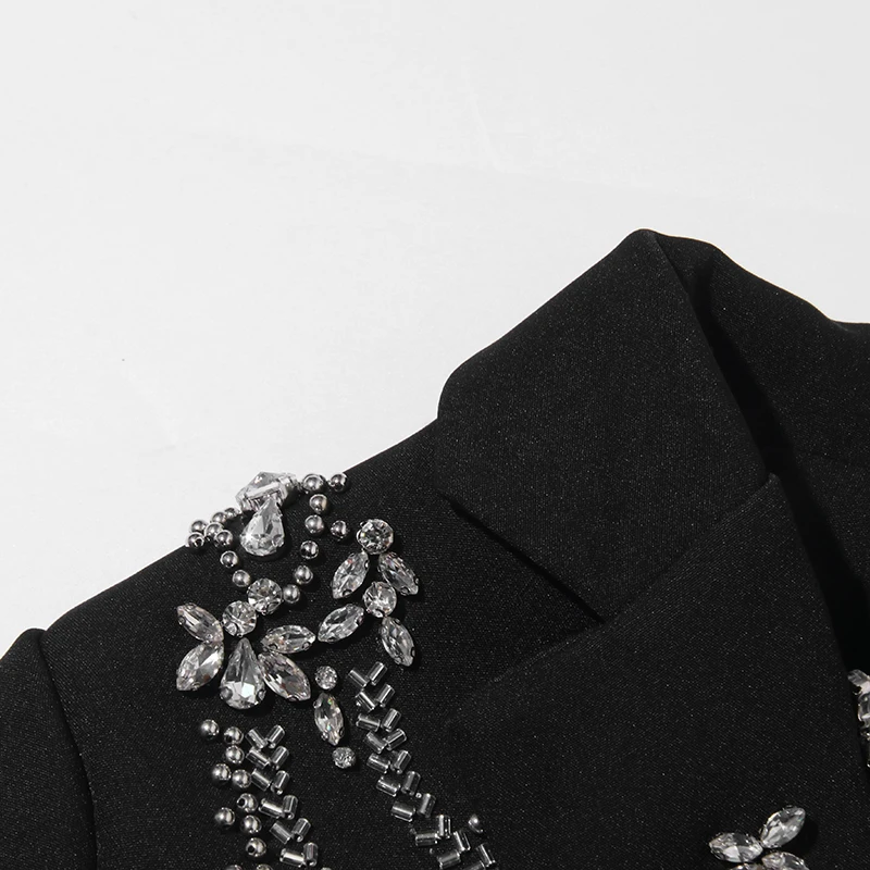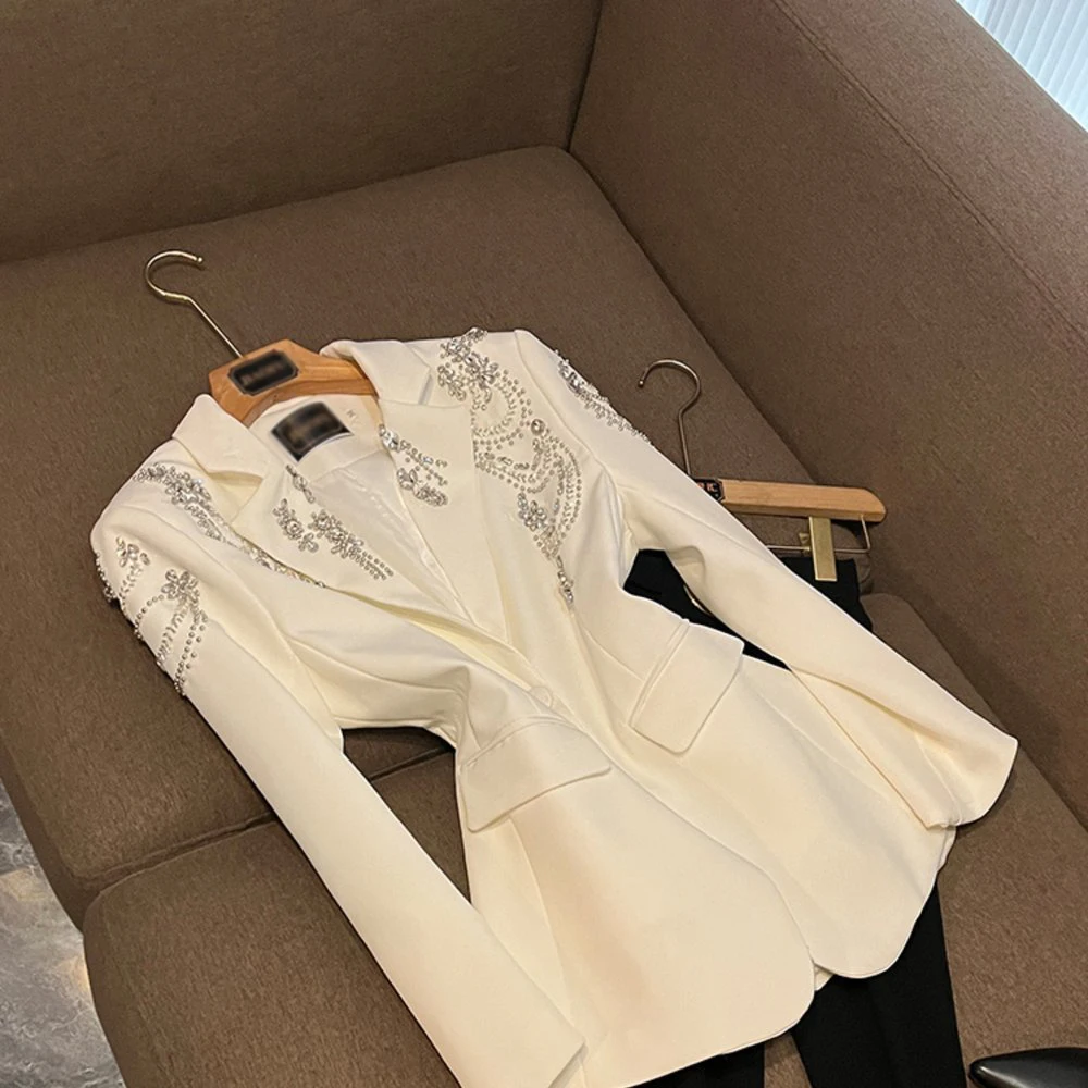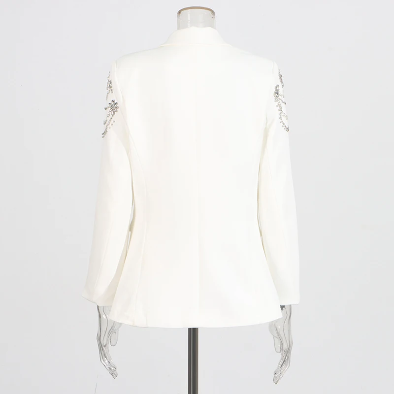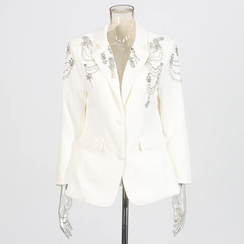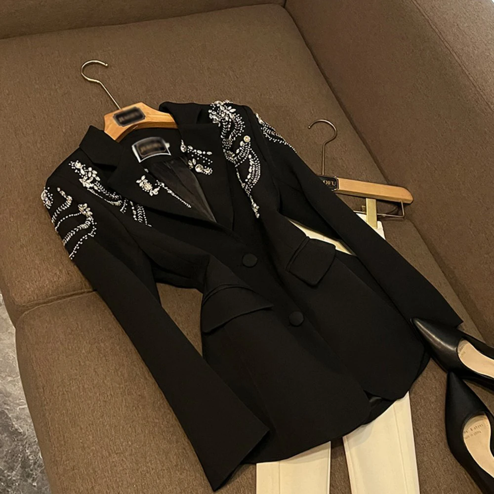 TWOTWINSTYLE Slimming Solid Spliced Diamond Jacket For Women Laple Long Sleeve Temperament Spring Jackets Female New KJA527627