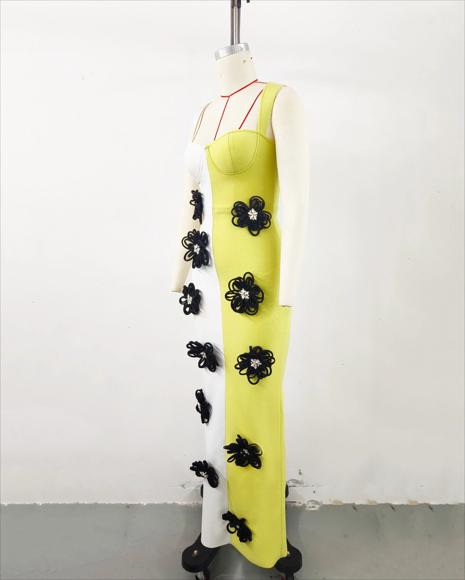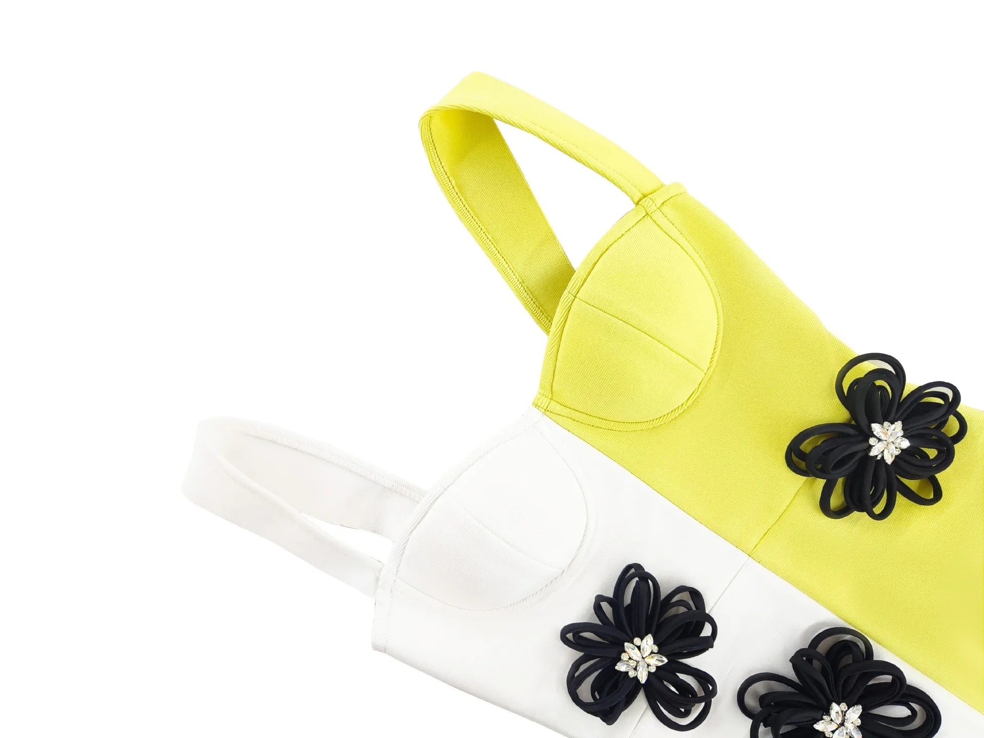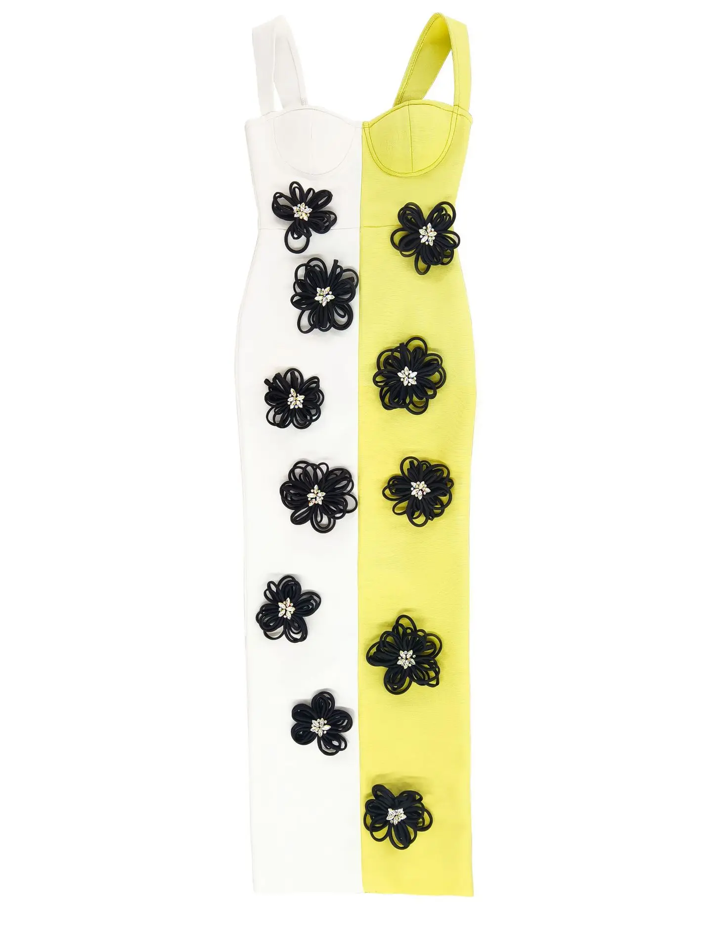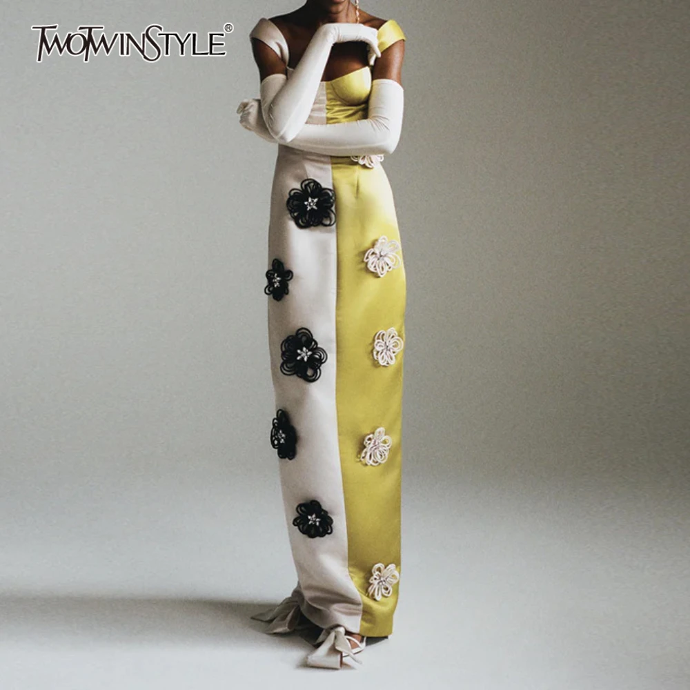 TWOTWINSTYLE Slimming Spliced Diamonds Dresses for Women Square Neck Sleeveless Patchwork 3D Flower Dress Female Temperament New
