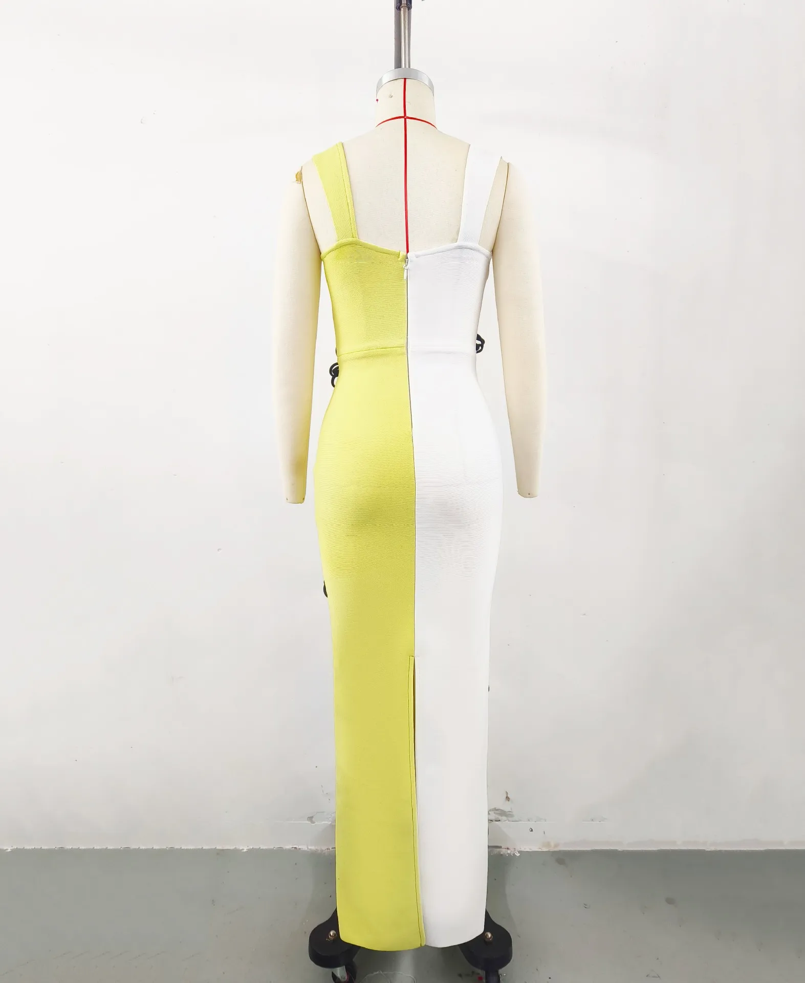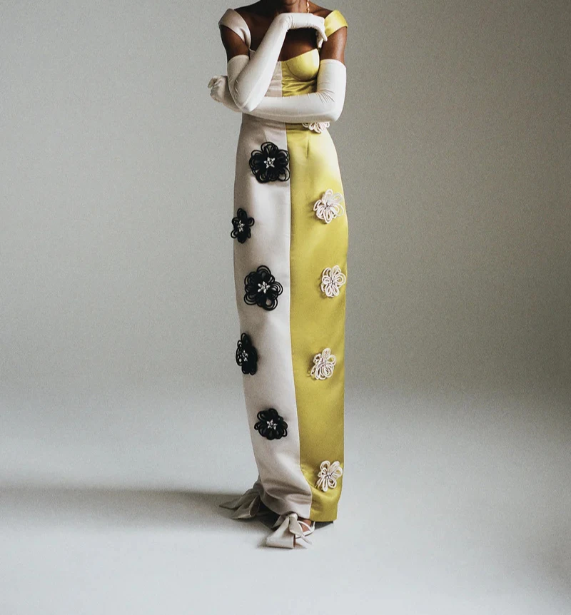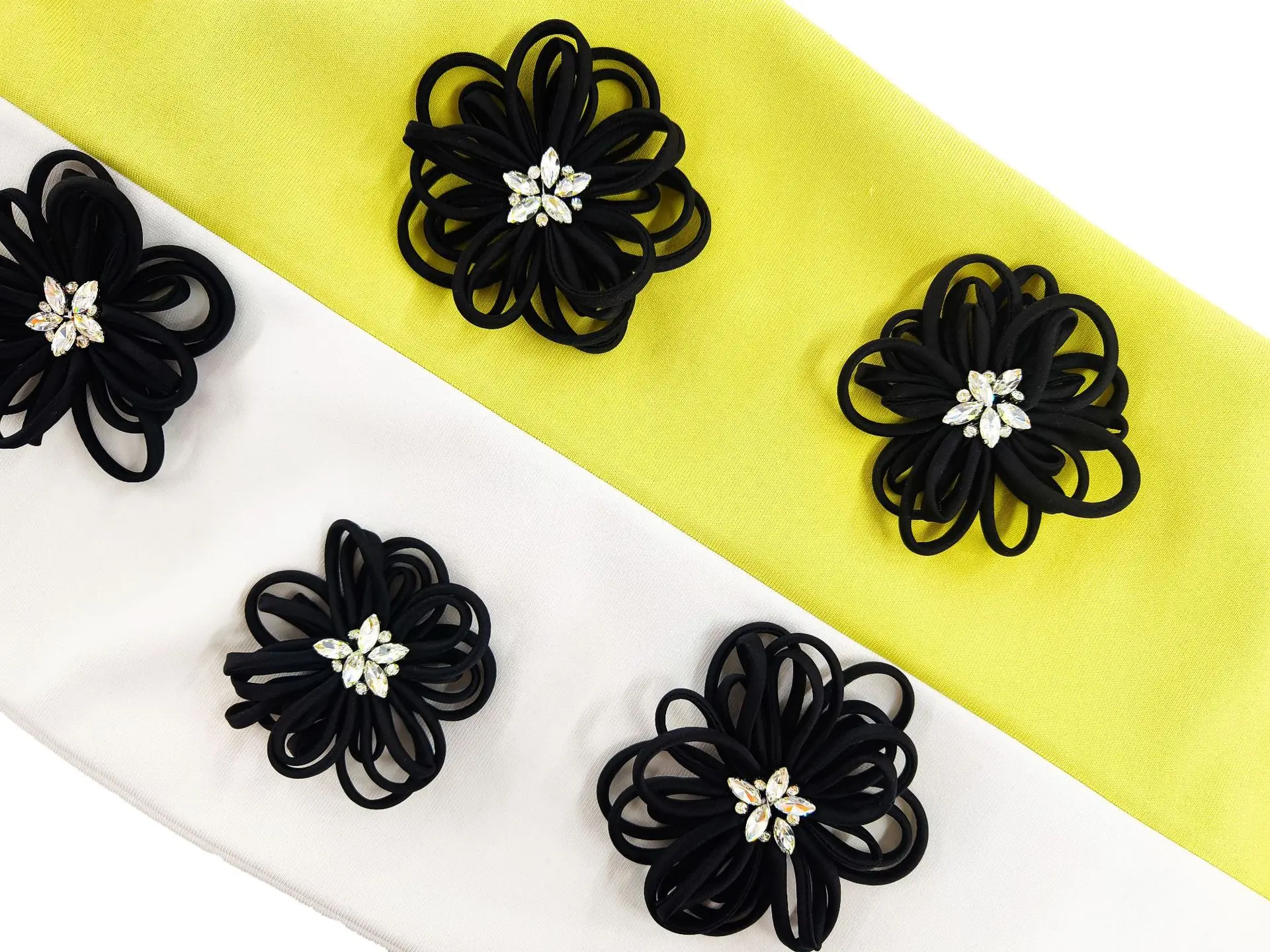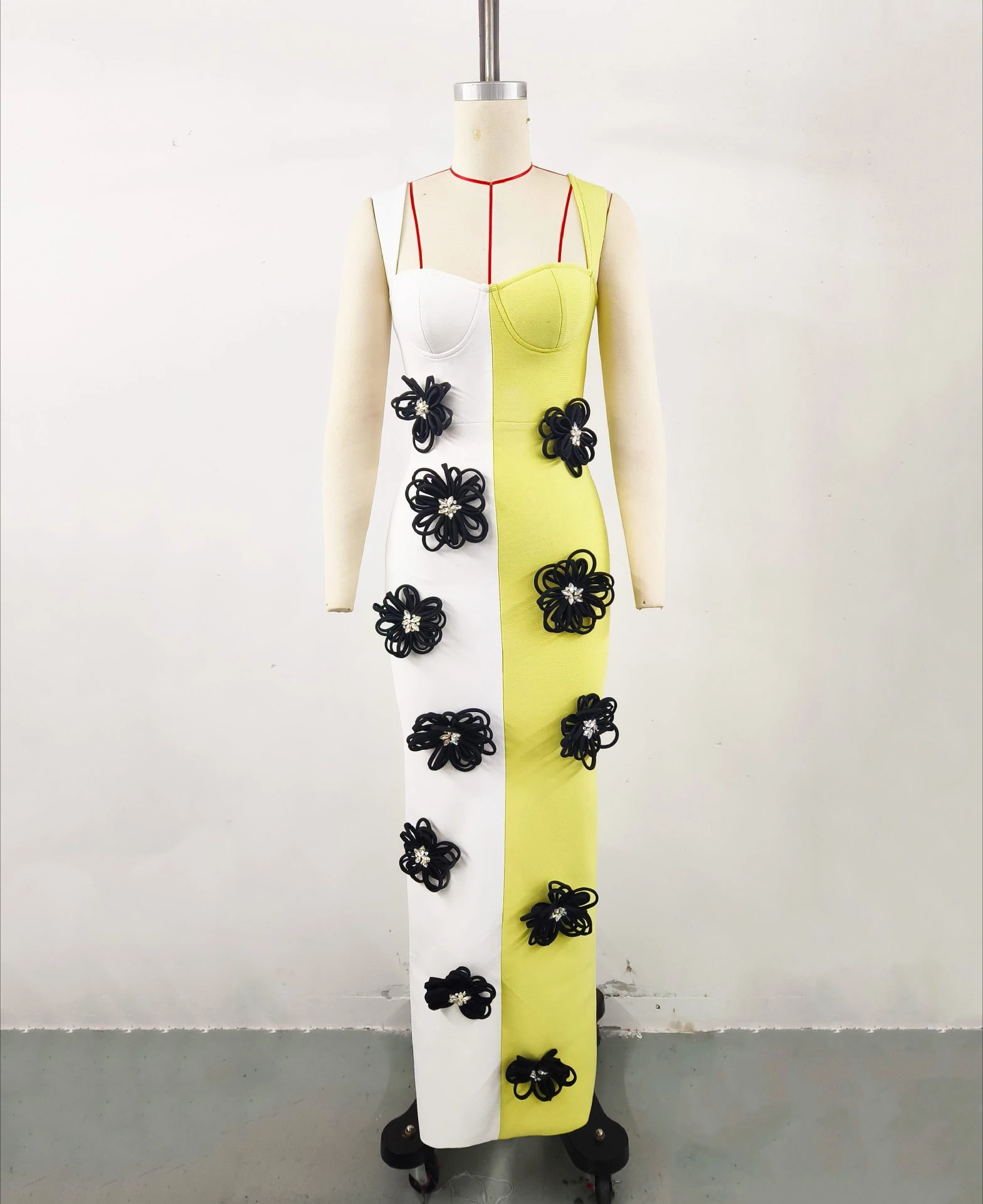 TWOTWINSTYLE Slimming Spliced Diamonds Dresses for Women Square Neck Sleeveless Patchwork 3D Flower Dress Female Temperament New