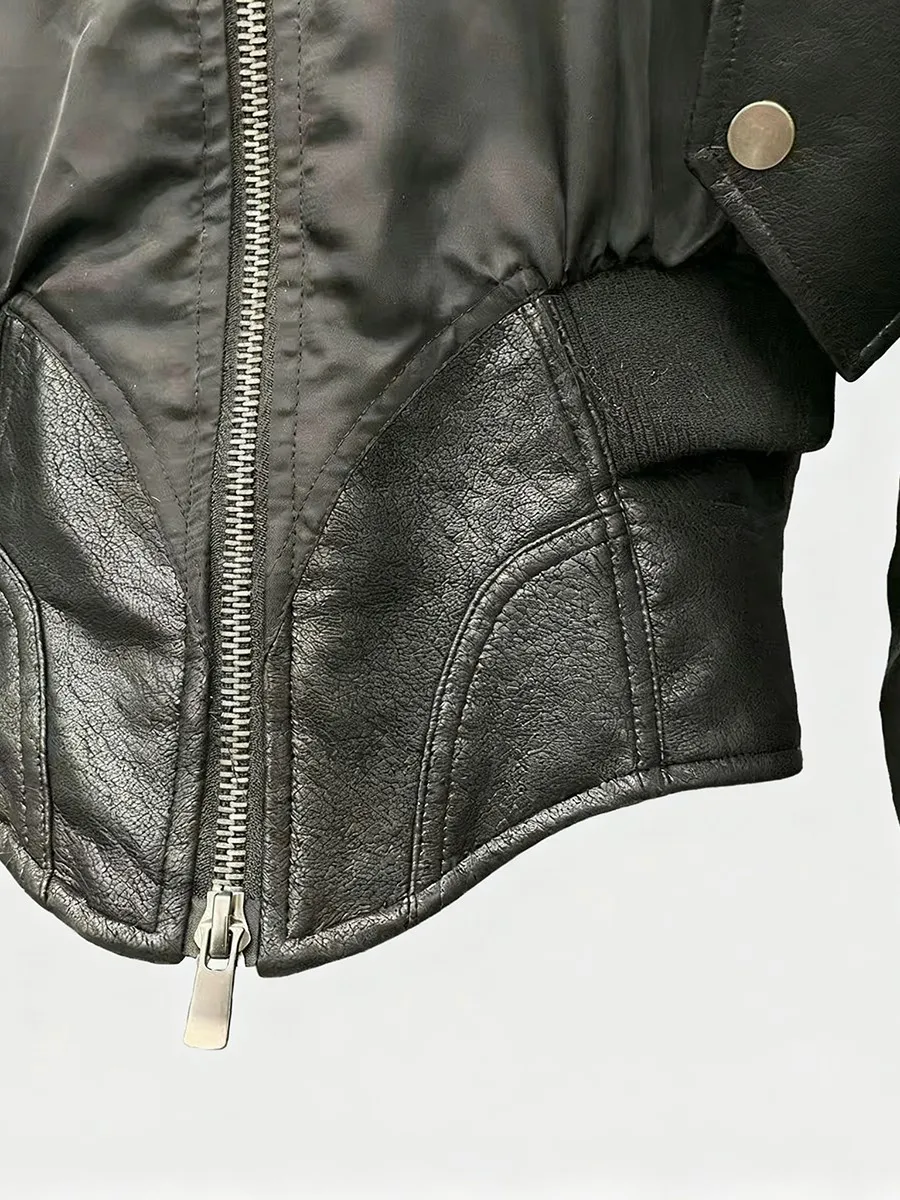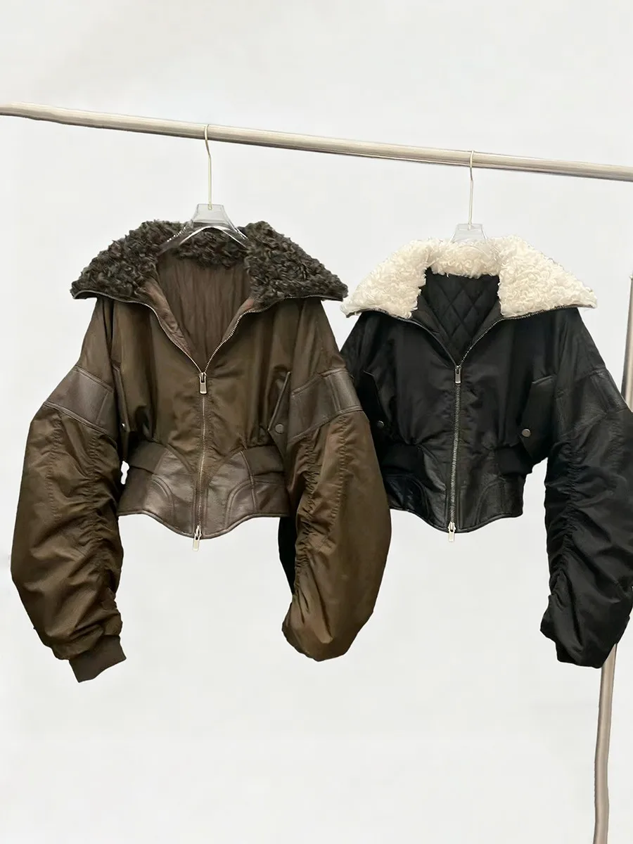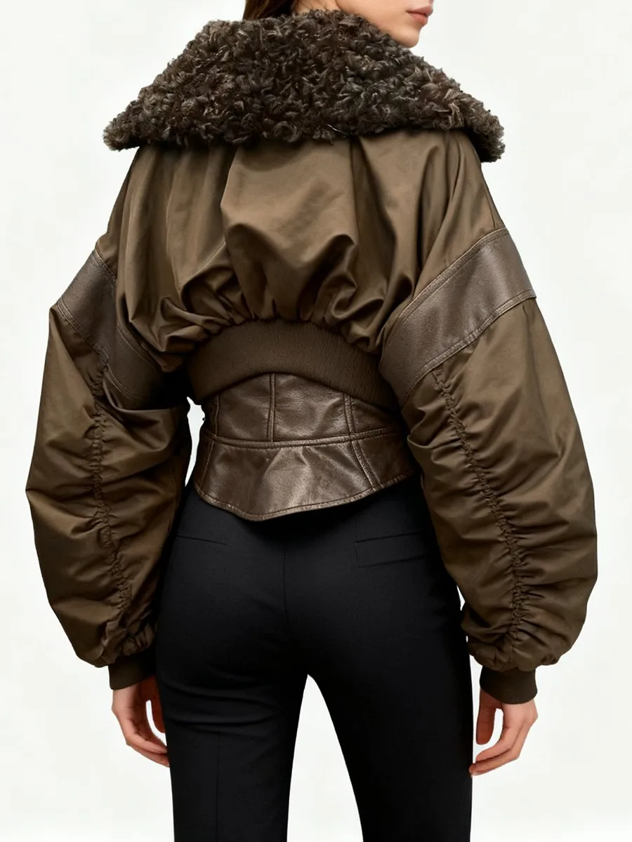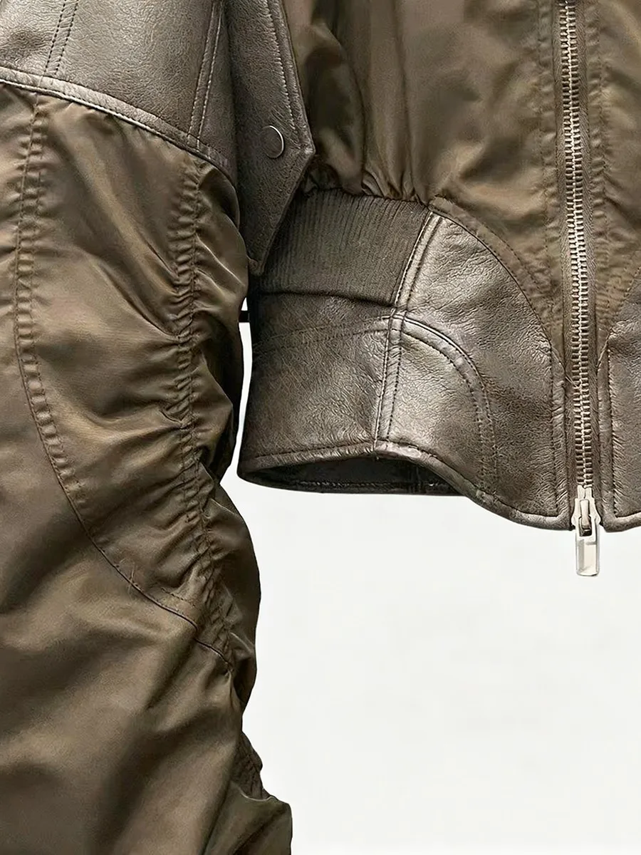 TWOTWINSTYLE Slimming Spliced Leather Fashion Jackets for Women Lapel Long Sleeves Tunic Patchwork Flocking Casual Jacket Female