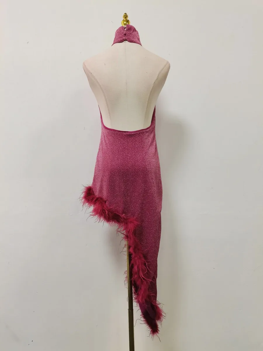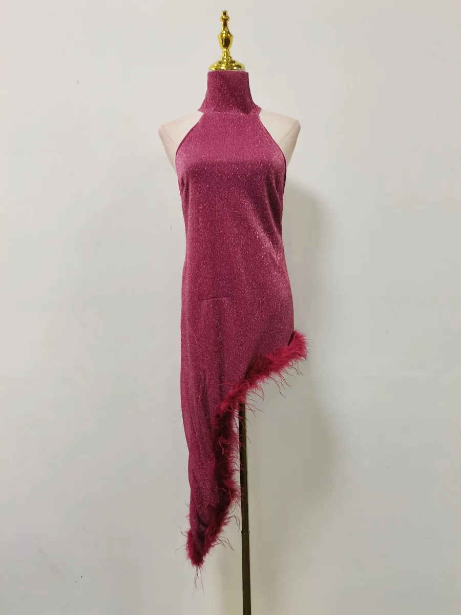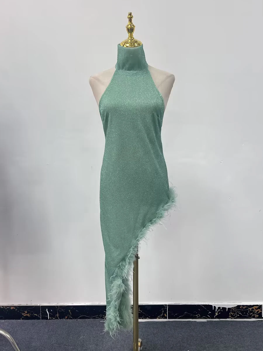 Be the first to review “TWOTWINSTYLE Solid Slim Backless Dresses For Women Round Neck Sleeveless High Waist Spliced Feather Irregular Dress Female New” Cancel reply
